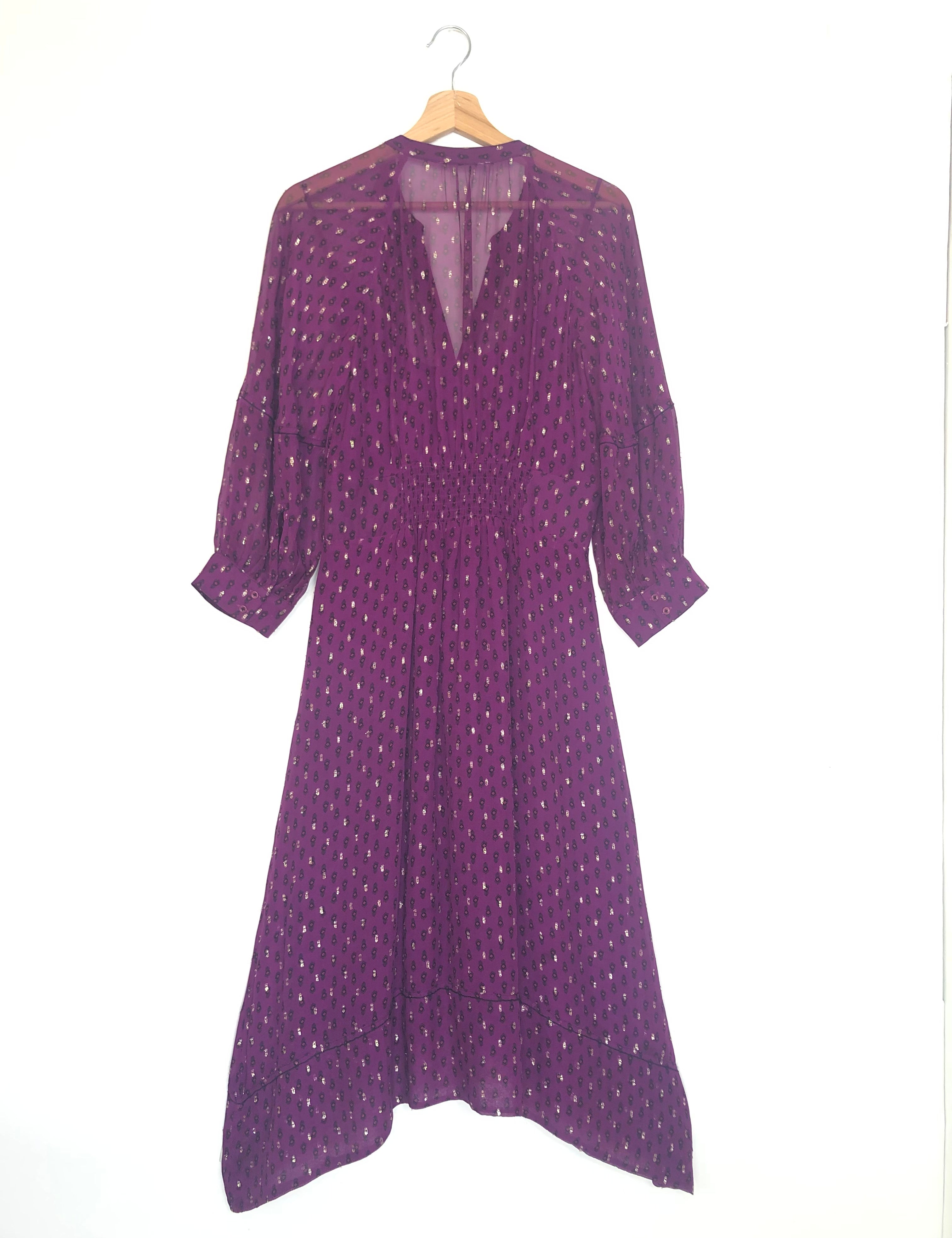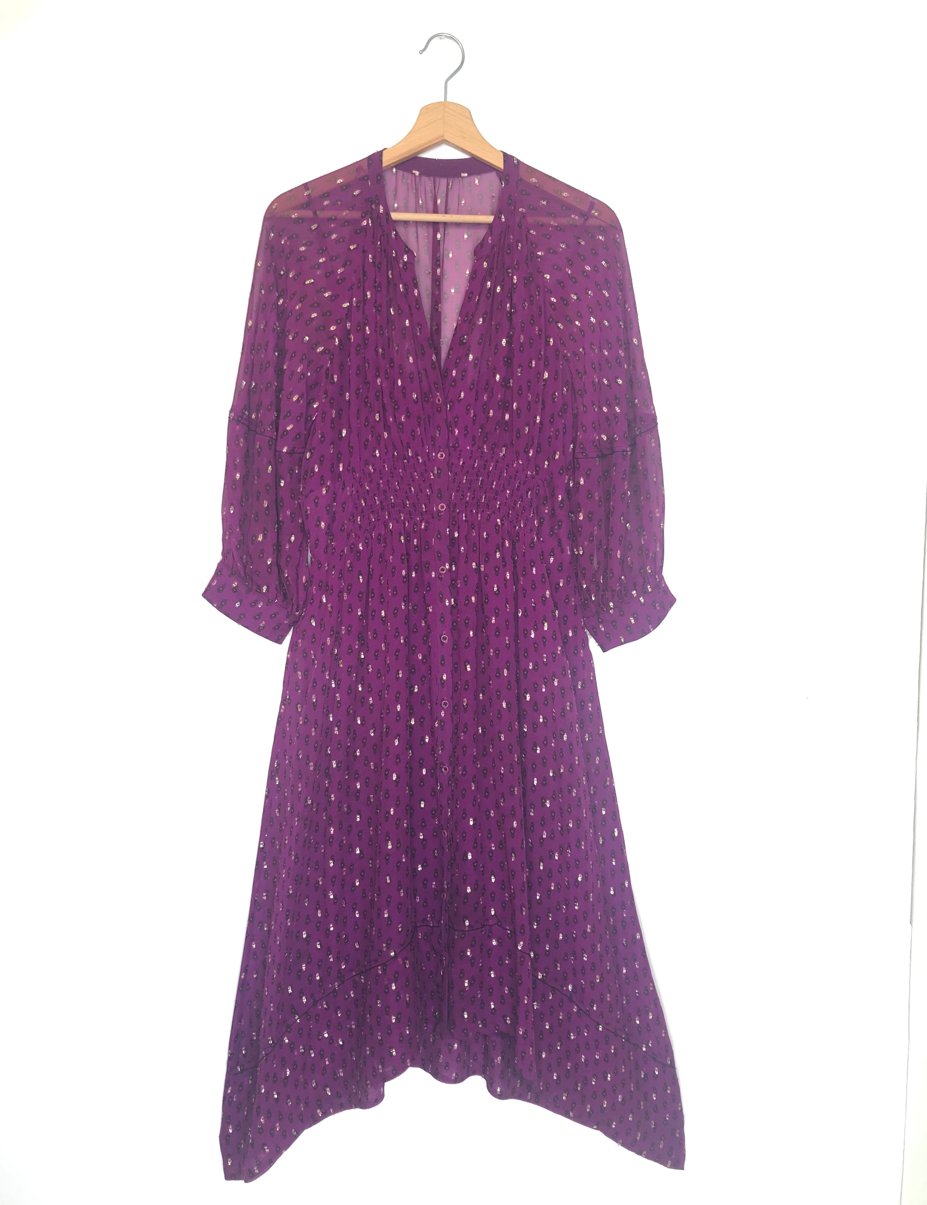 Purple CYANA Metallic Dot Smock Waist Midi Dress / BA&SH - Size 3