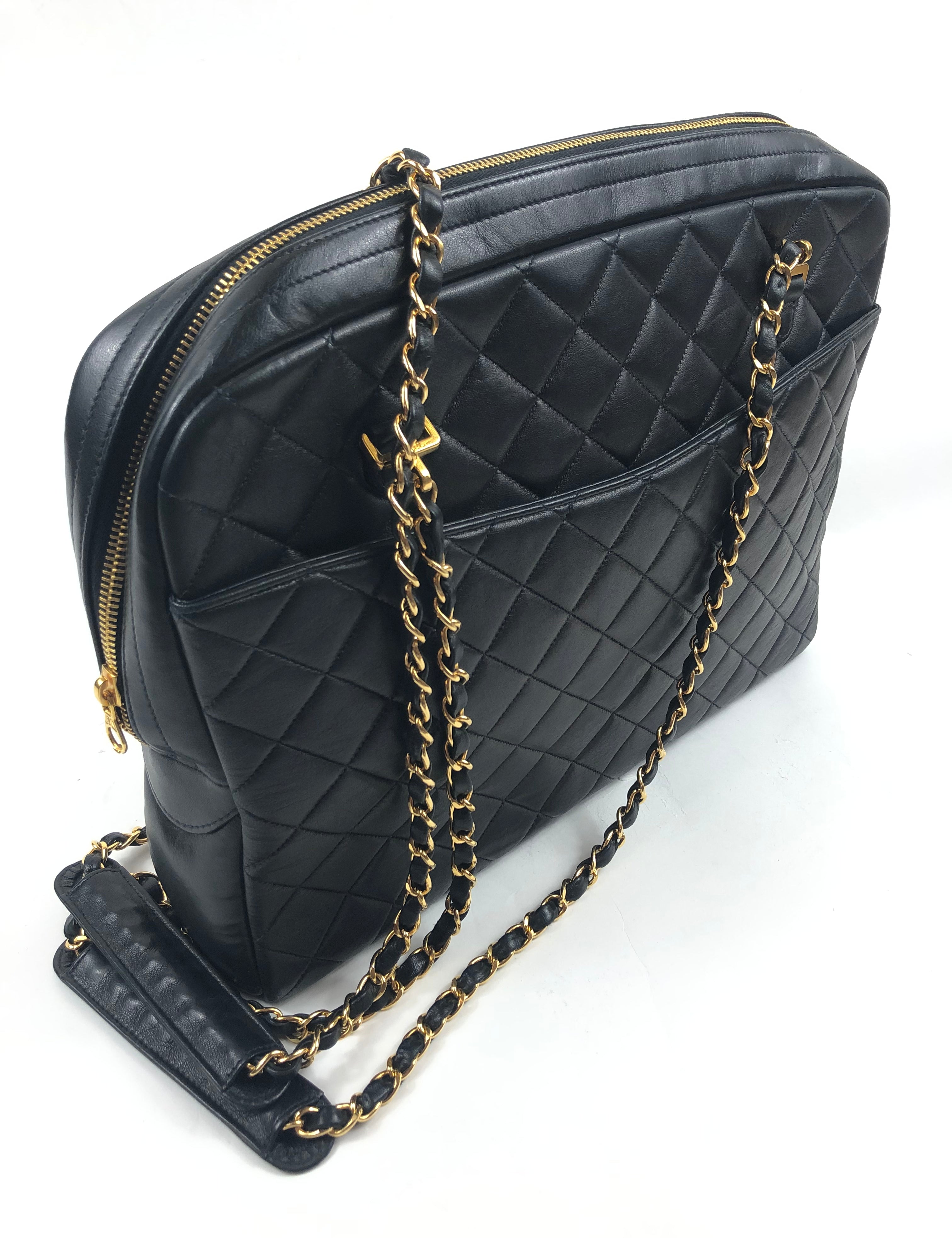Black Quilted Timeless Lambskin Leather Tote Bag / CHANEL
