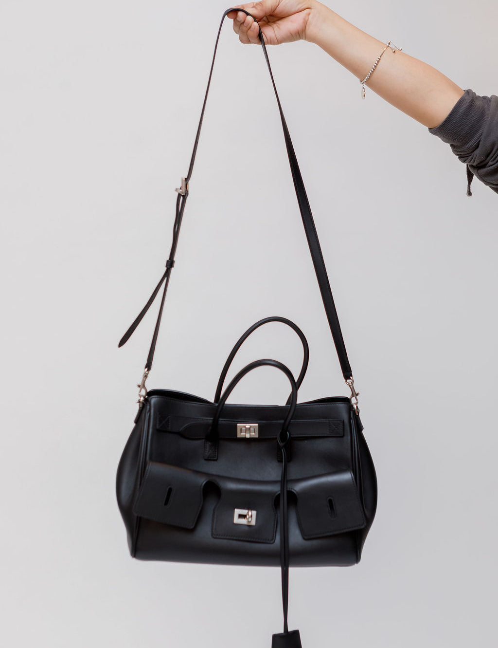Black Smooth Calfskin Small Bel Air Carryall Bag / BALENCIAGA