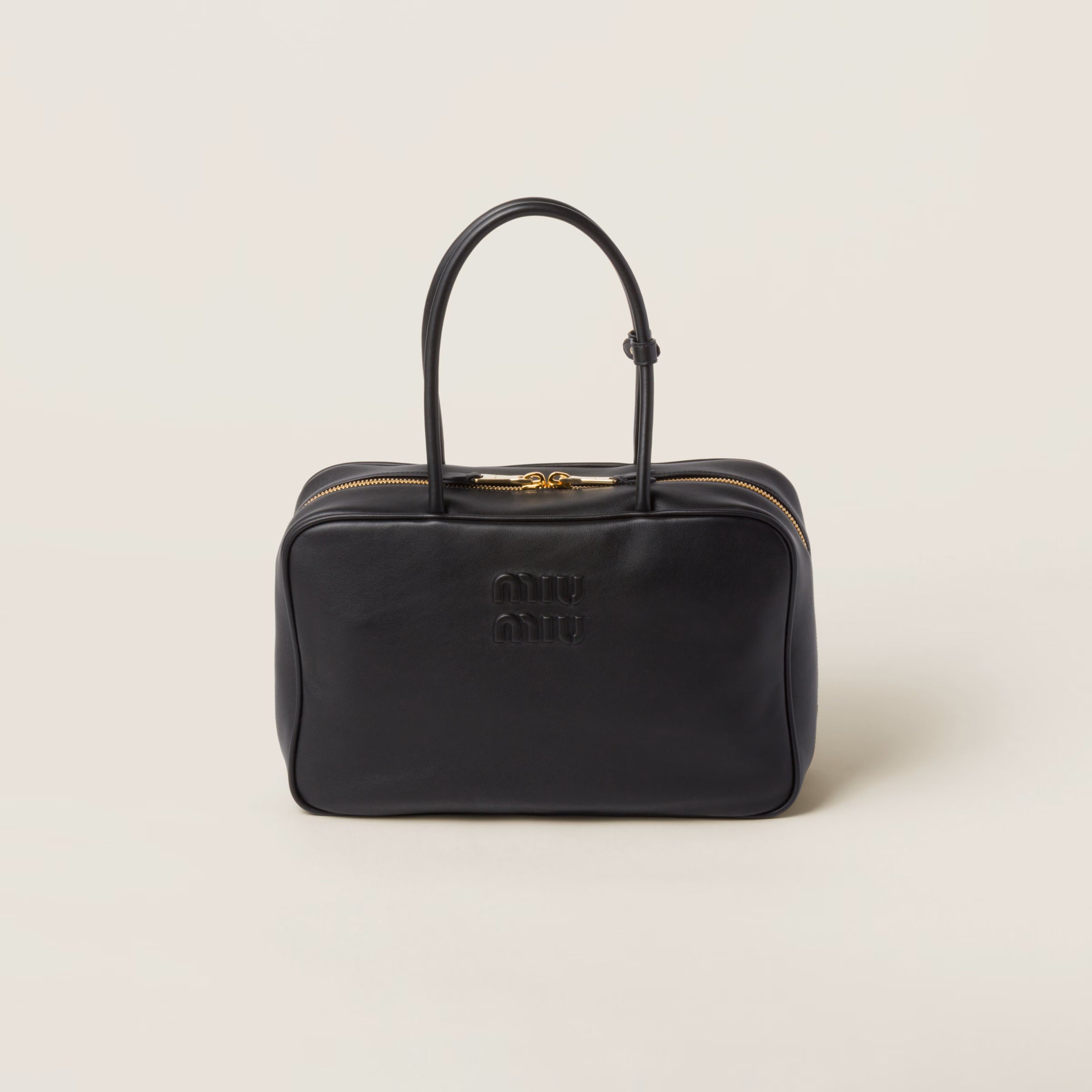Black Smooth Leather Beau Large Top Handle Bag / MIU MIU