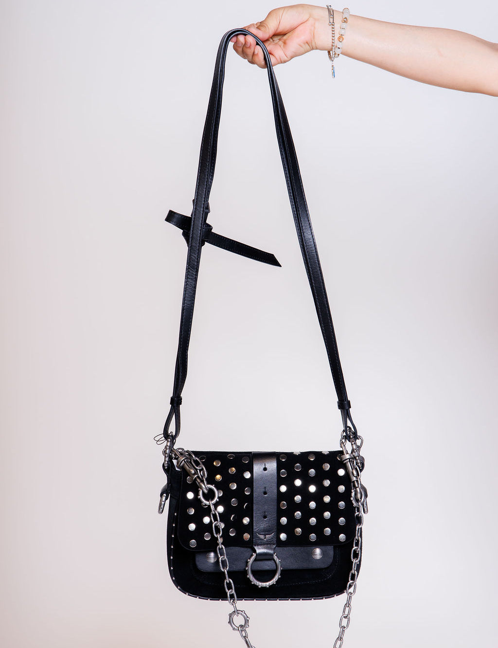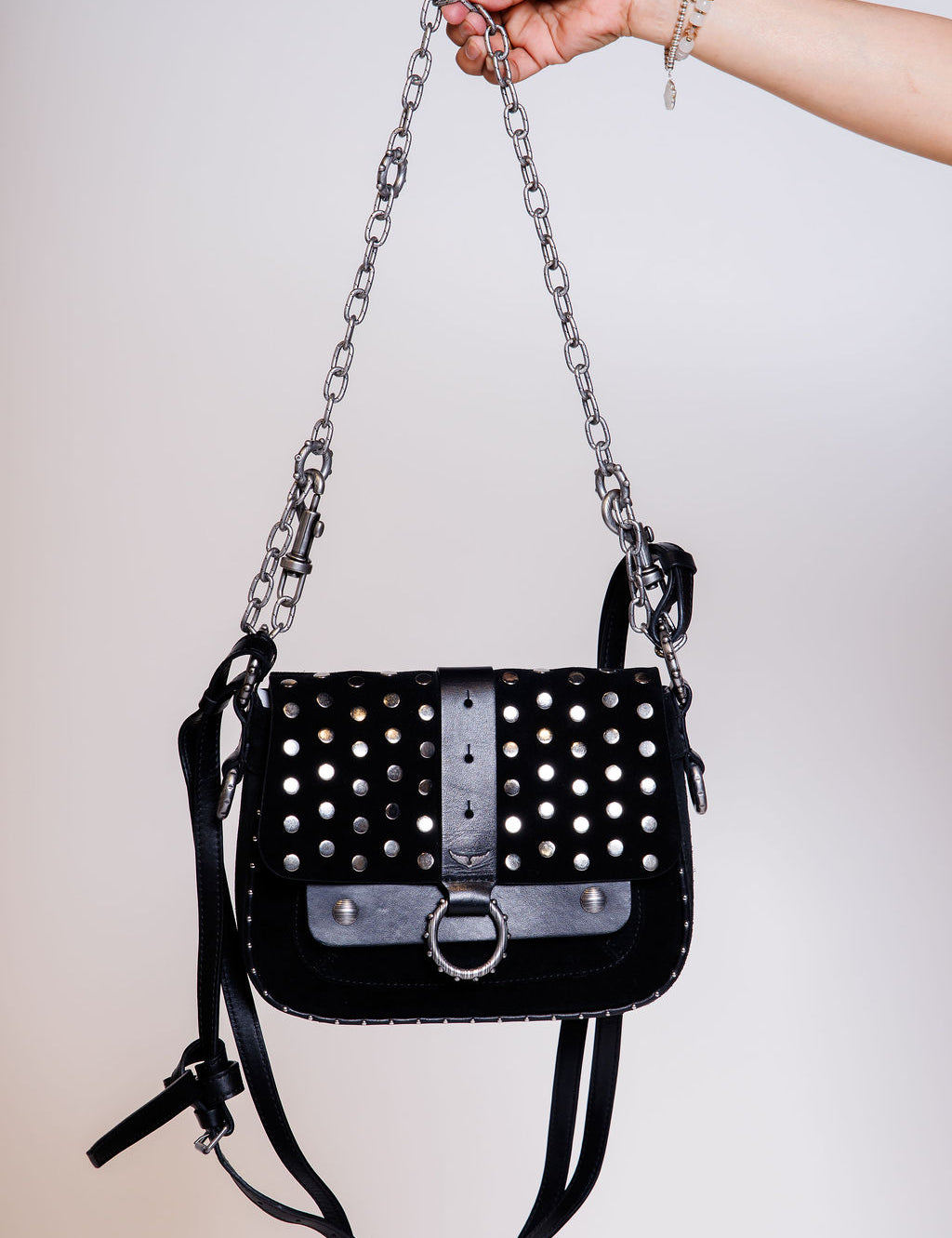 Black Studded Suede and Smooth Leather Crossbody Bag / ZADIG & VOLTAIRE