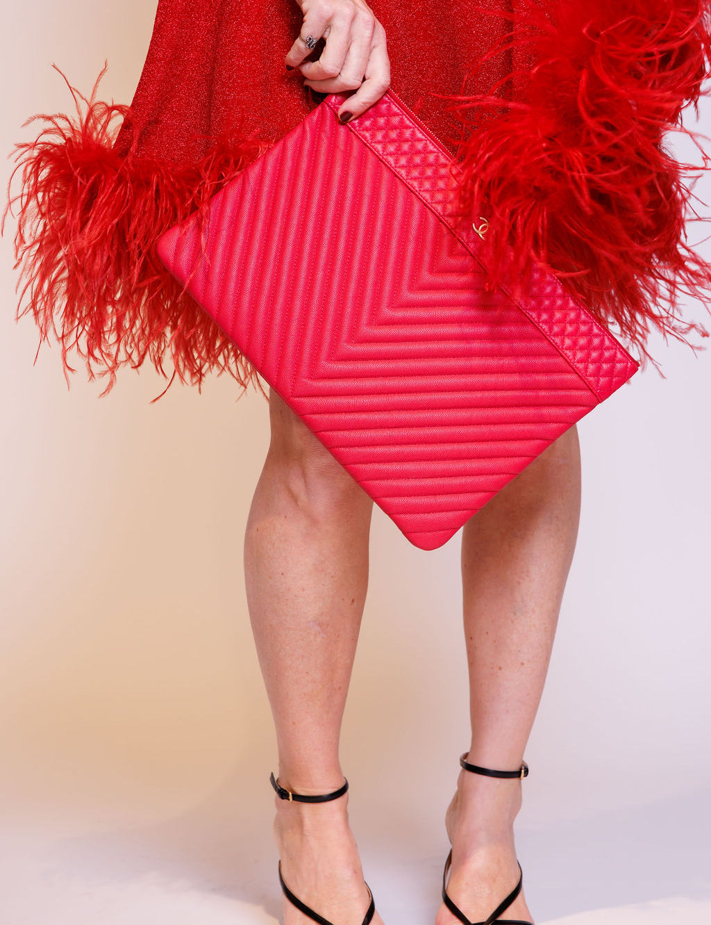 Pink Chevron Quilted Leather O-Case Zip Large Clutch / CHANEL