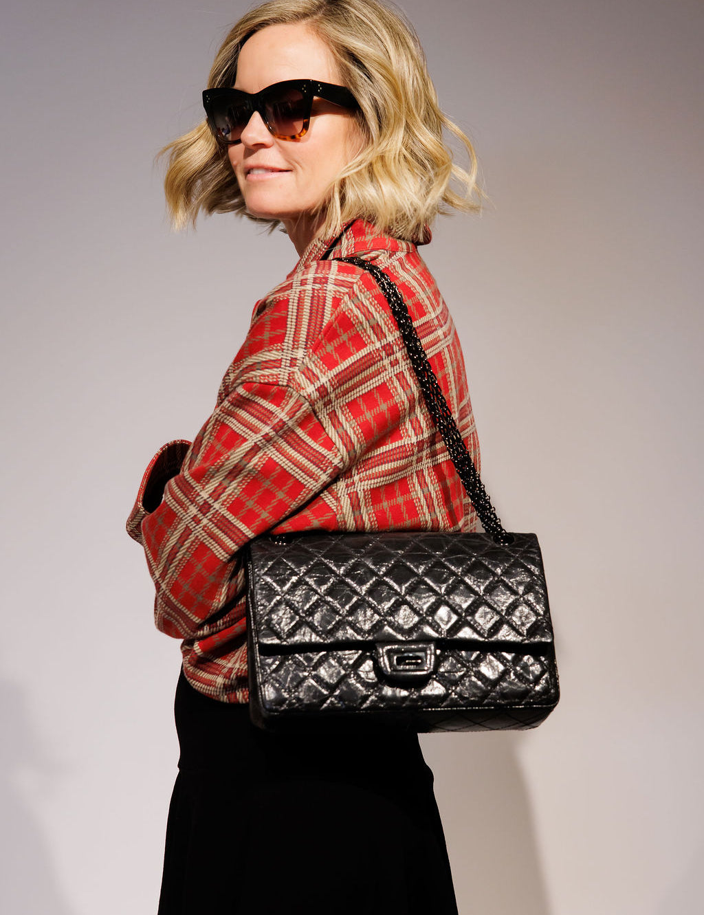 SO BLACK Patent Crinkled Calf Leather Reissue 2.55 - 225 Lined Flap Bag / CHANEL