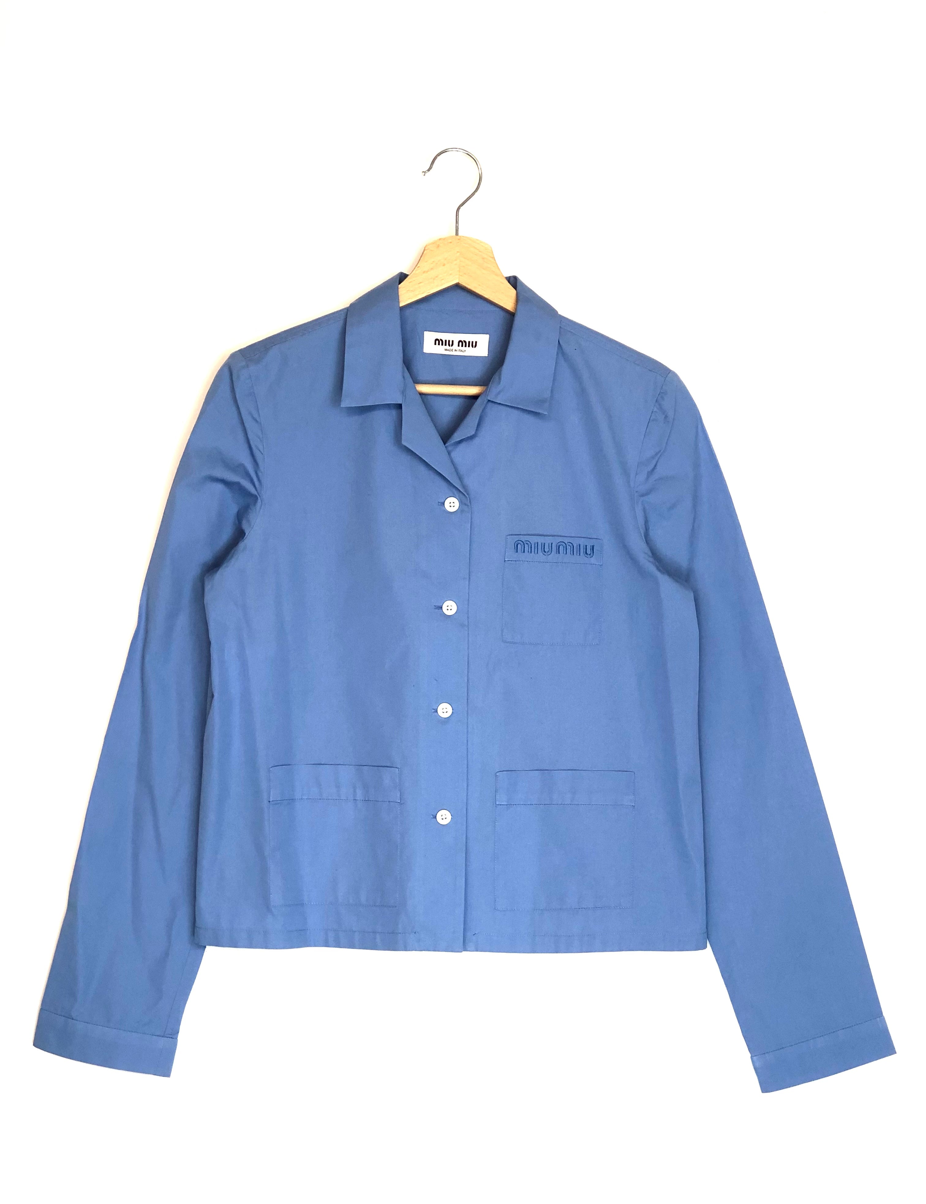 Azzurro Blue Button-down Poplin Long Sleeves Shirt / MIU MIU - Size 36