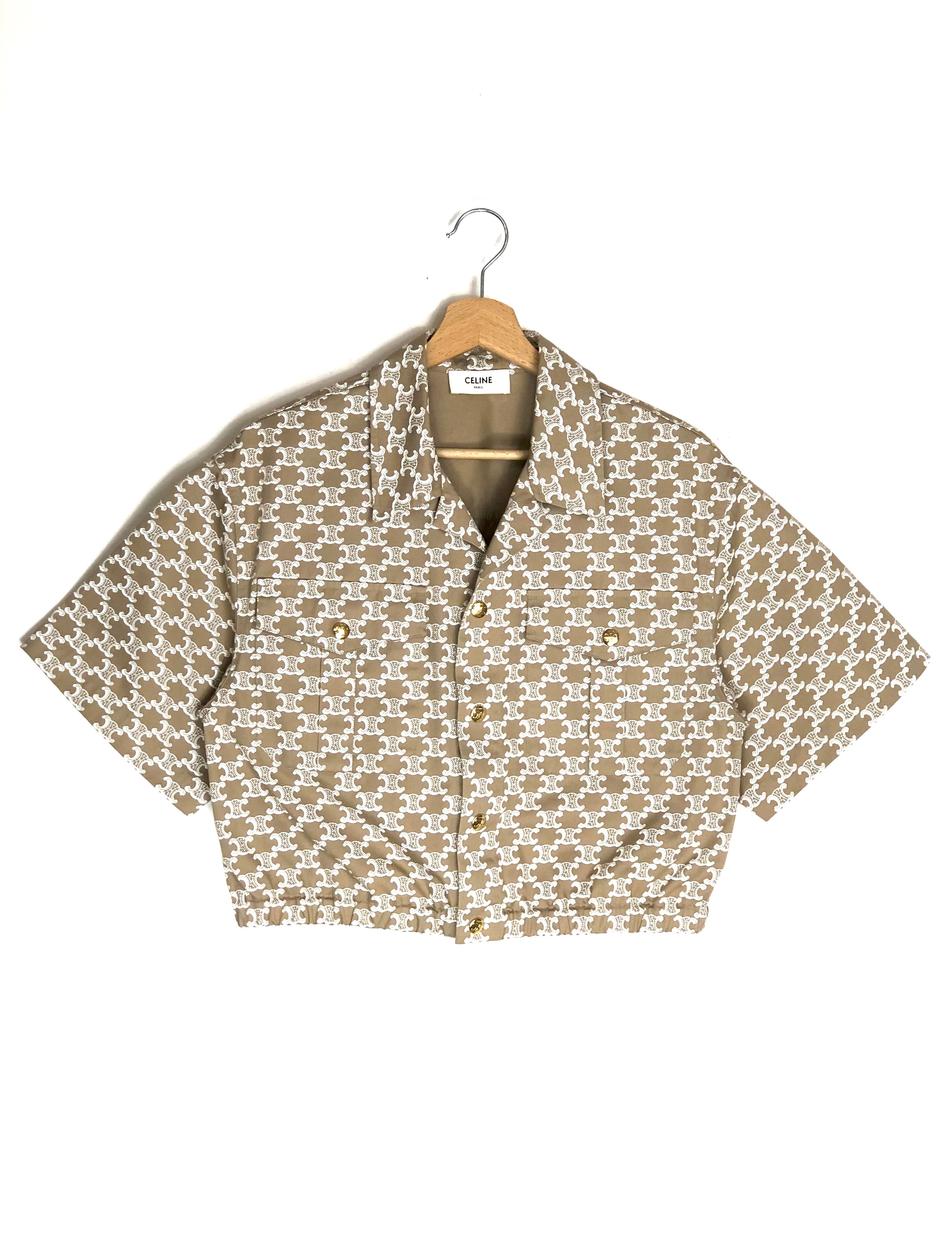 Beige Logo Cropped Cotton Jacket / CELINE - Size 38