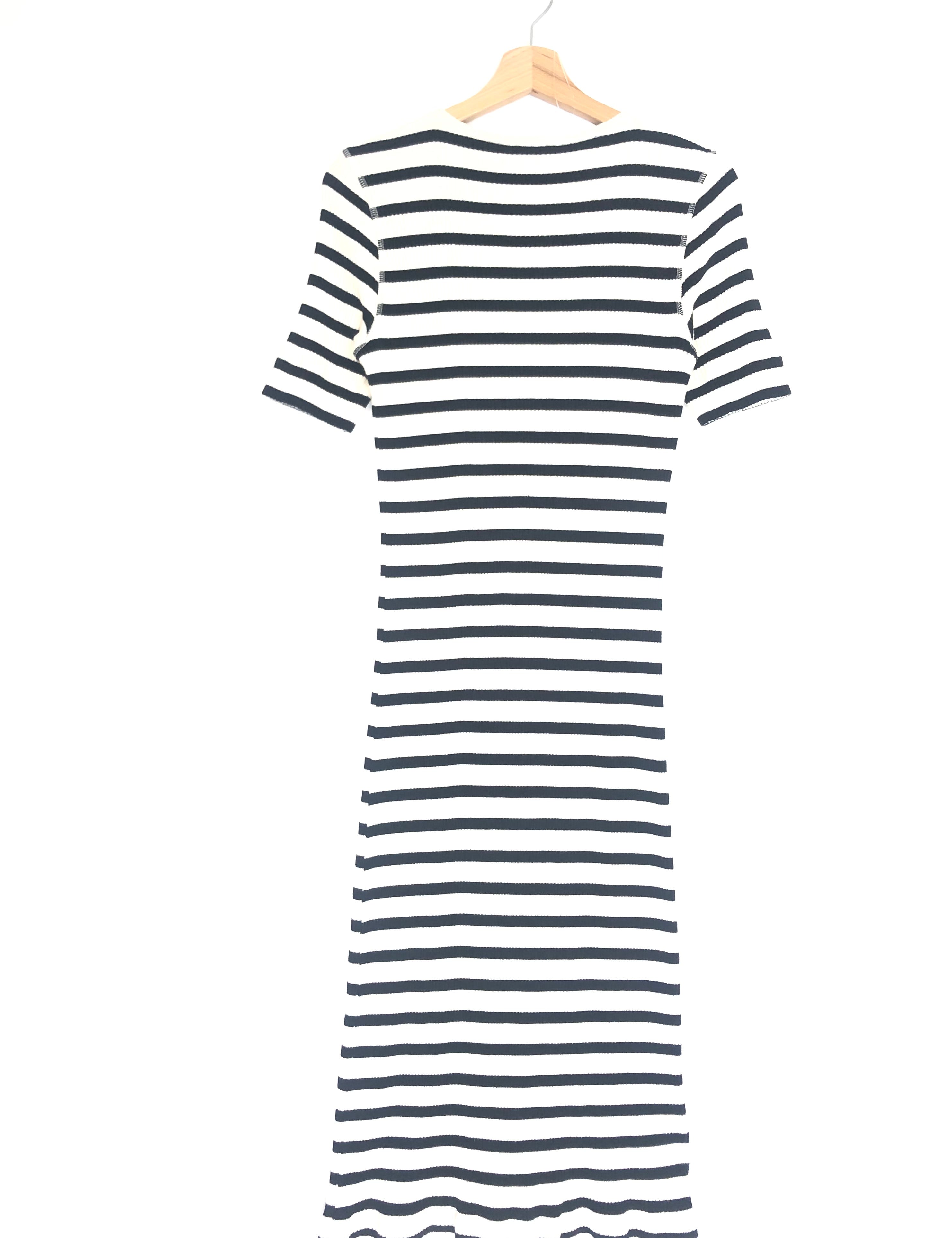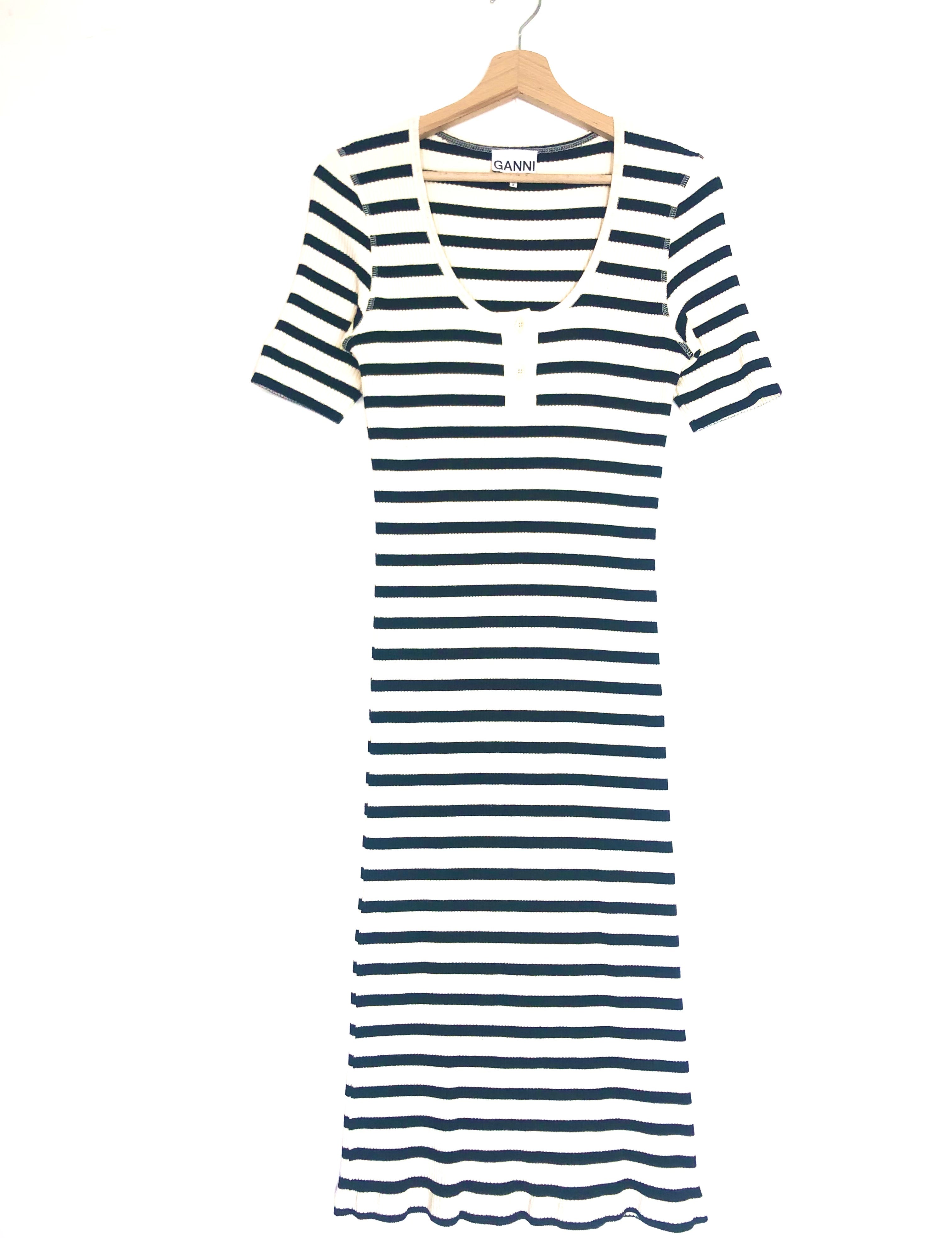 Black and White Striped Cotton-blend Midi Dress / GANNI - Size M
