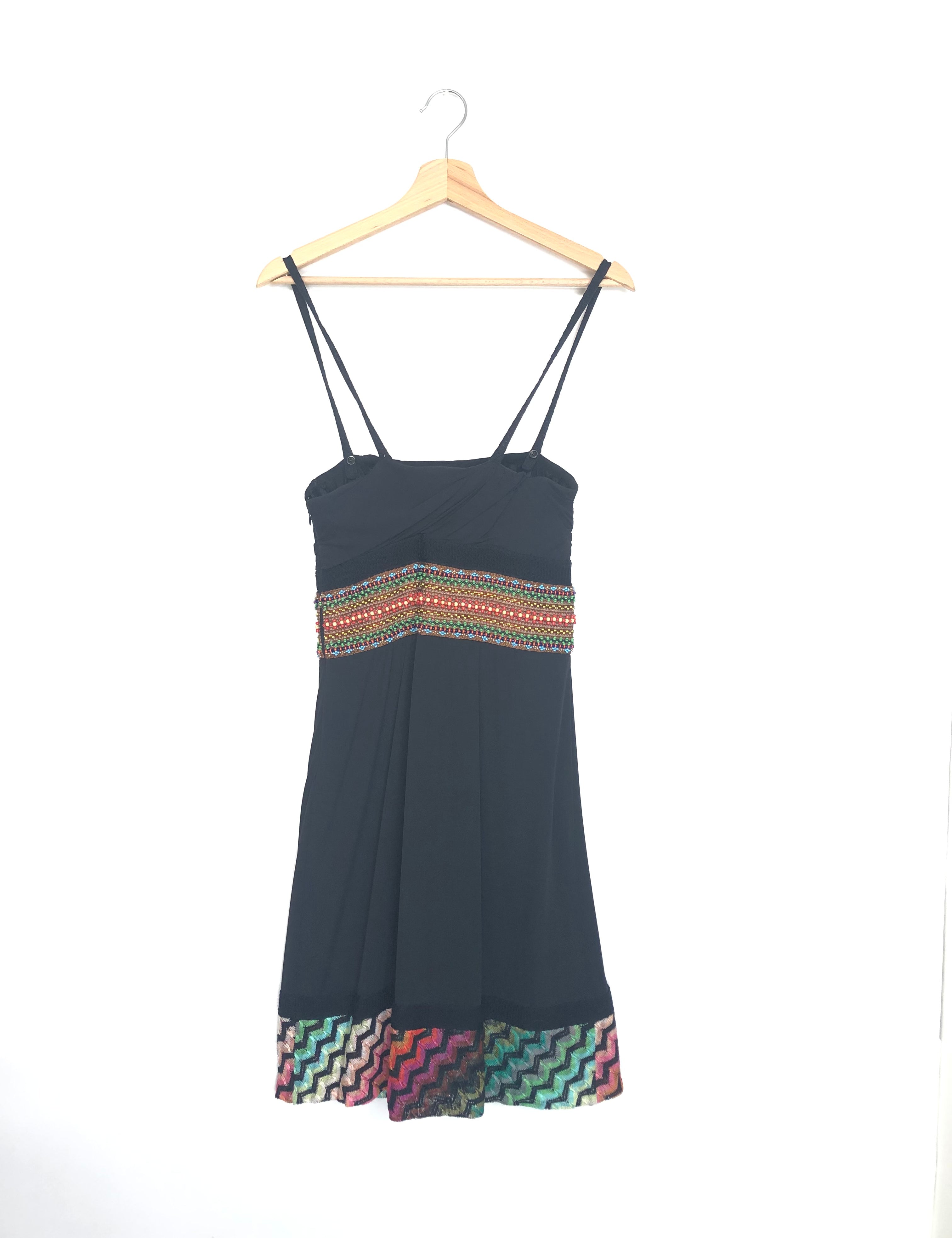 Black Beads Embroidered Thin Strap Mini Dress / MISSONI - Size 38
