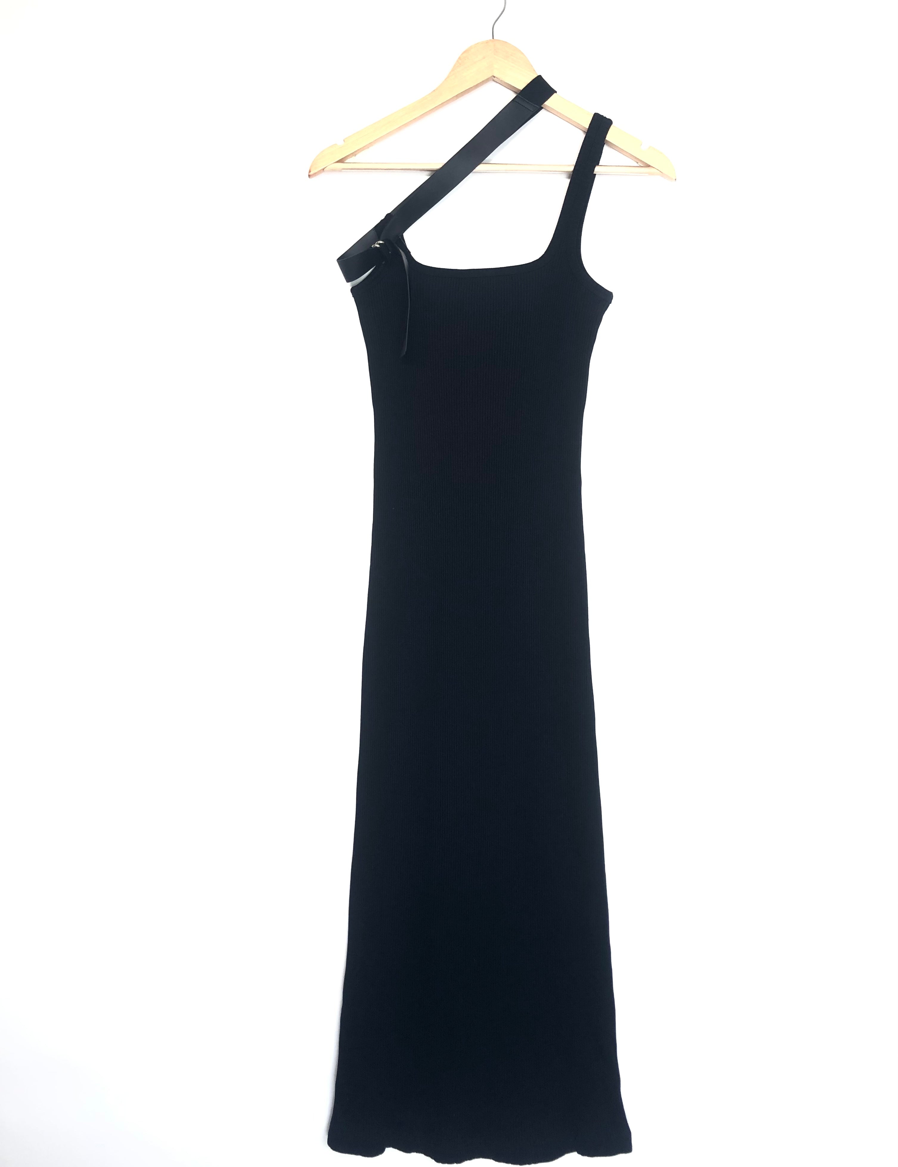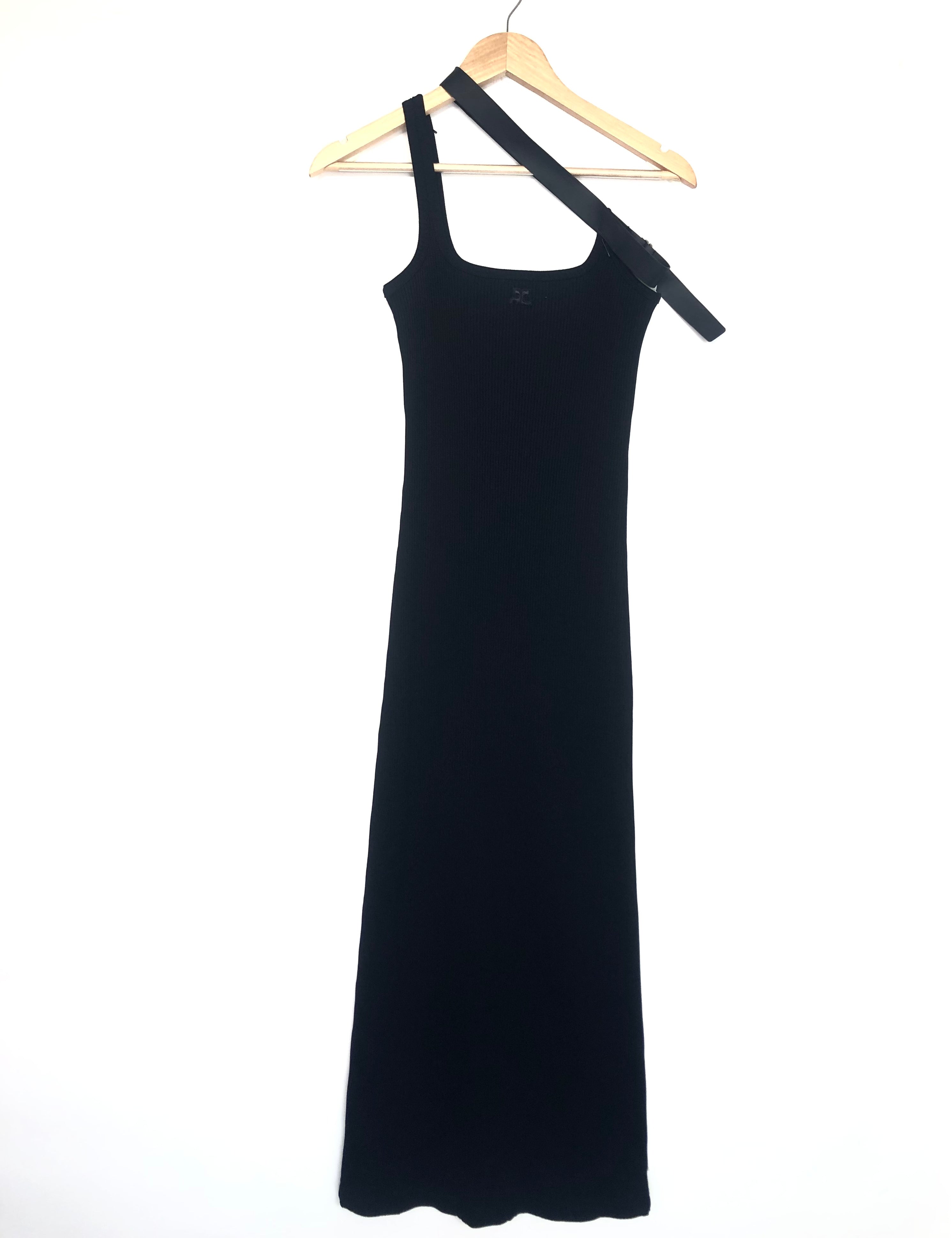 Black BIAS 90's Rib-knit Asymmetrical Strap Bodycon Midi Dress / COURREGES - Size S
