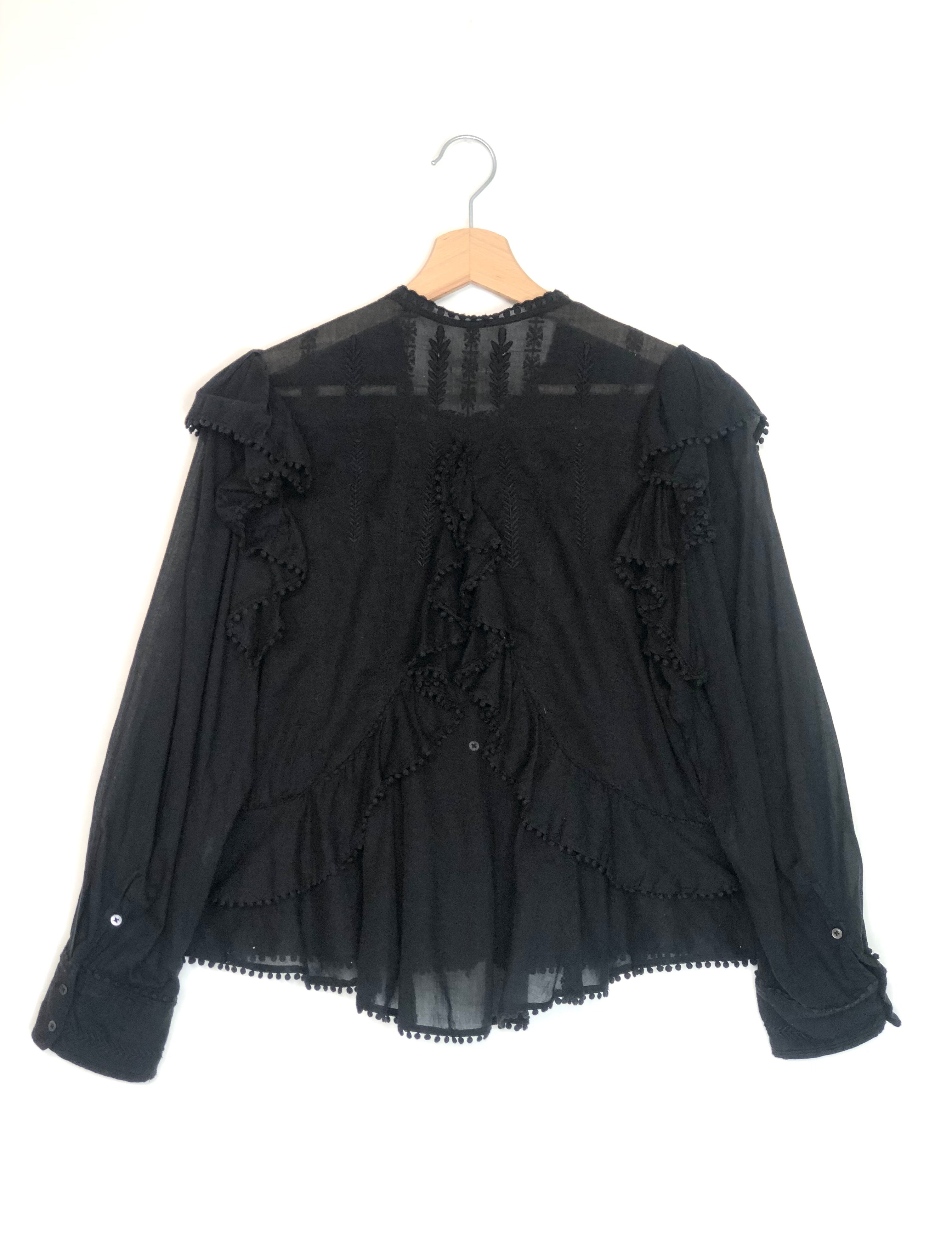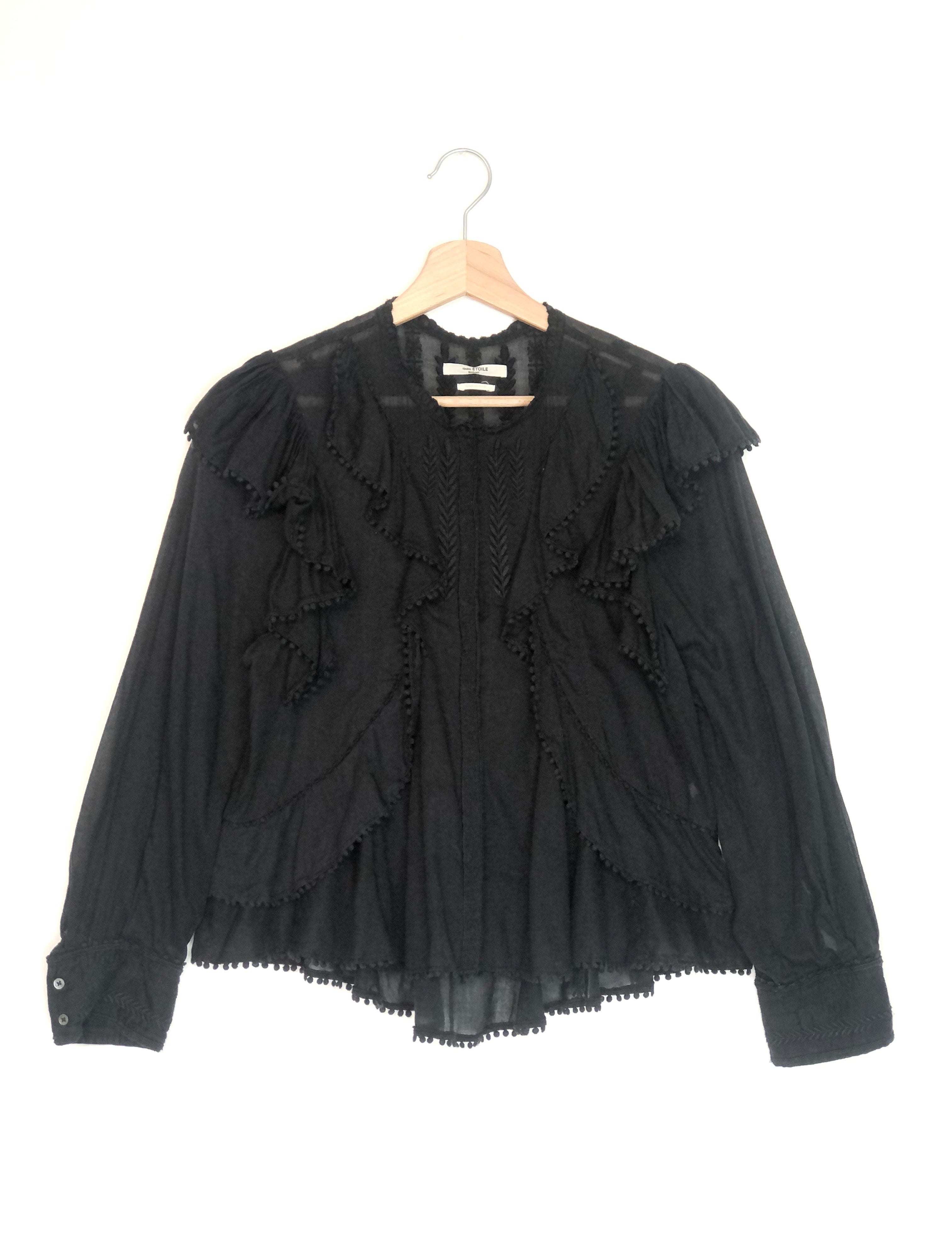 Black Cotton Ruffled Long Sleeves Blouse / ISABEL MARANT ETOILE - Size 36