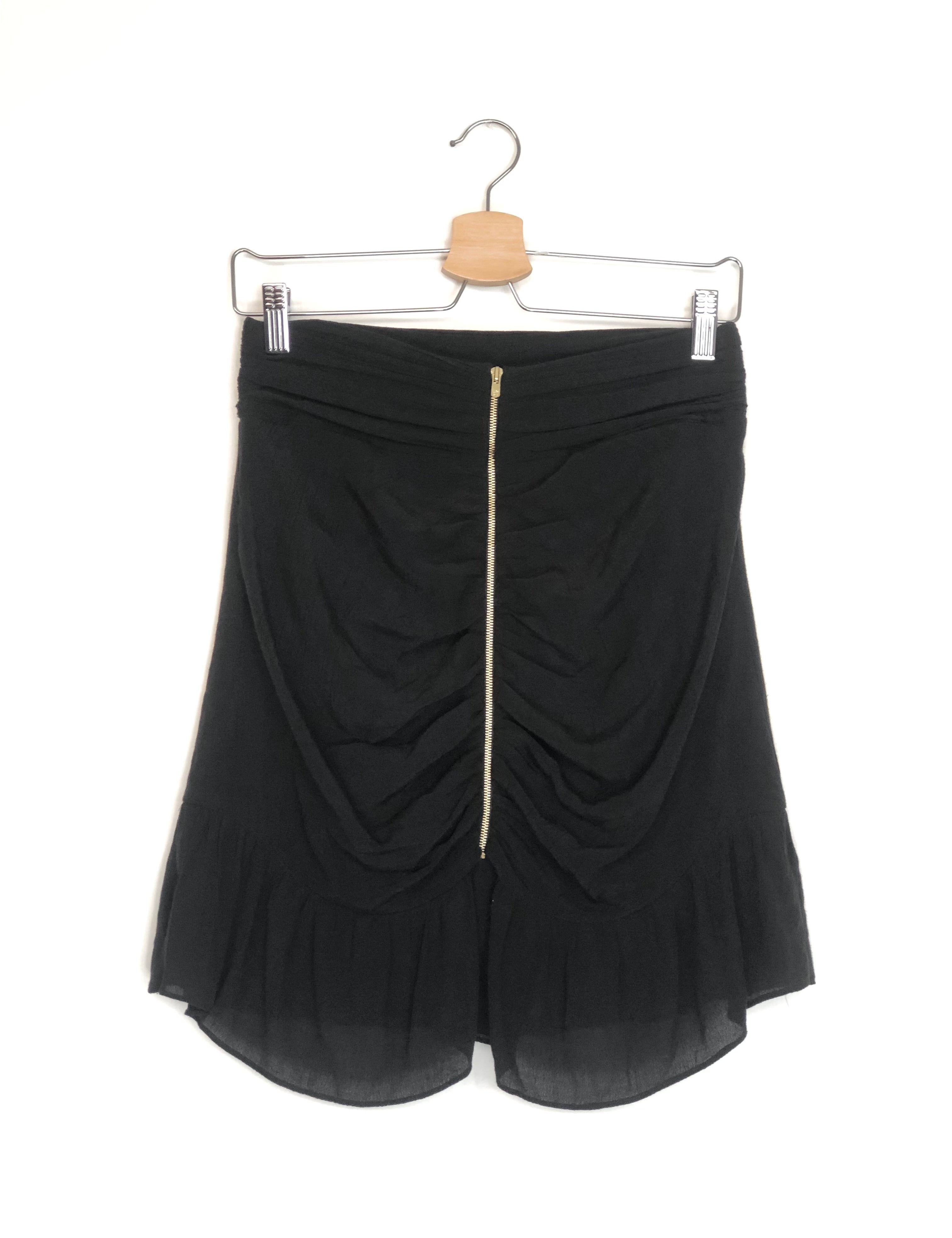Black Ruched Front-zip Mini Skirt / SANDRO - Size 2