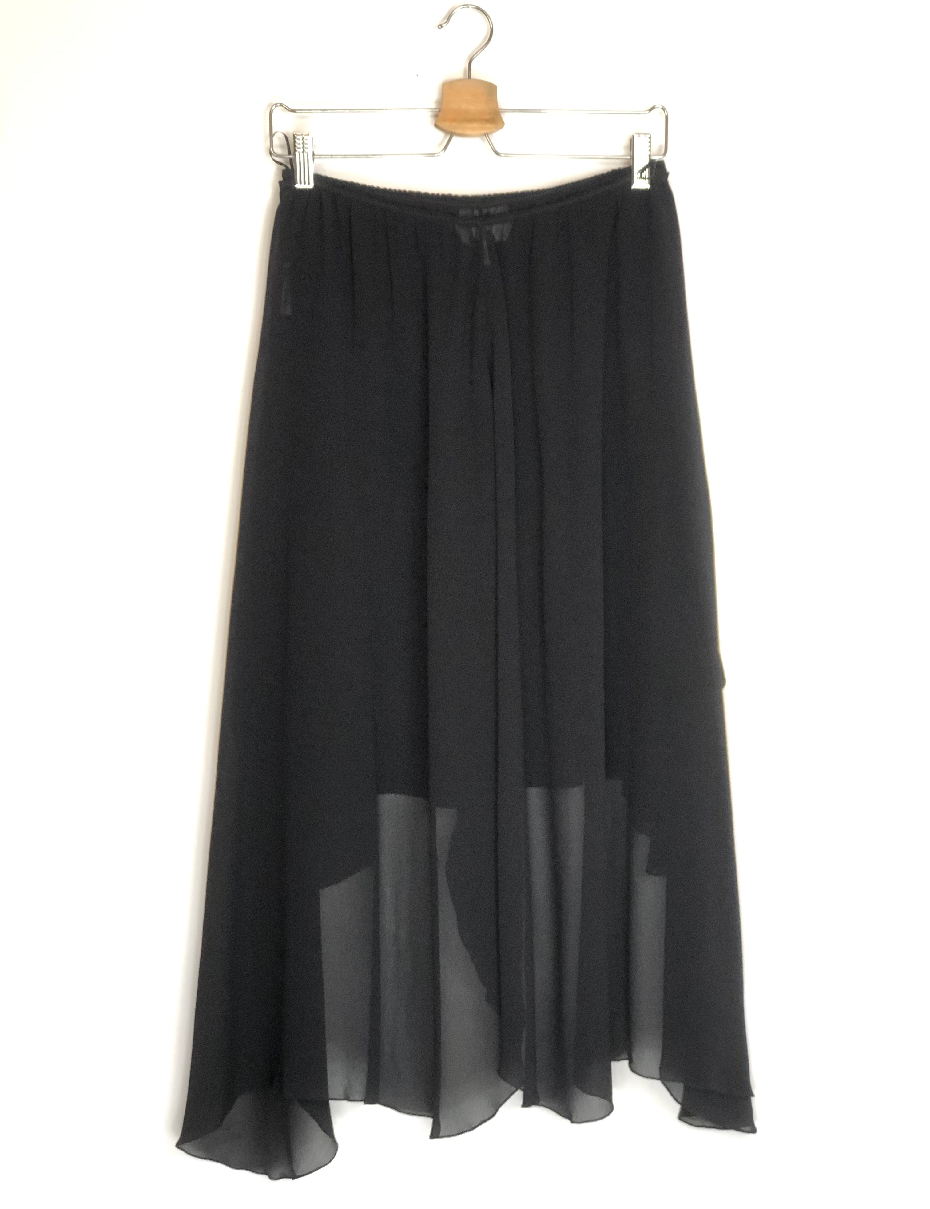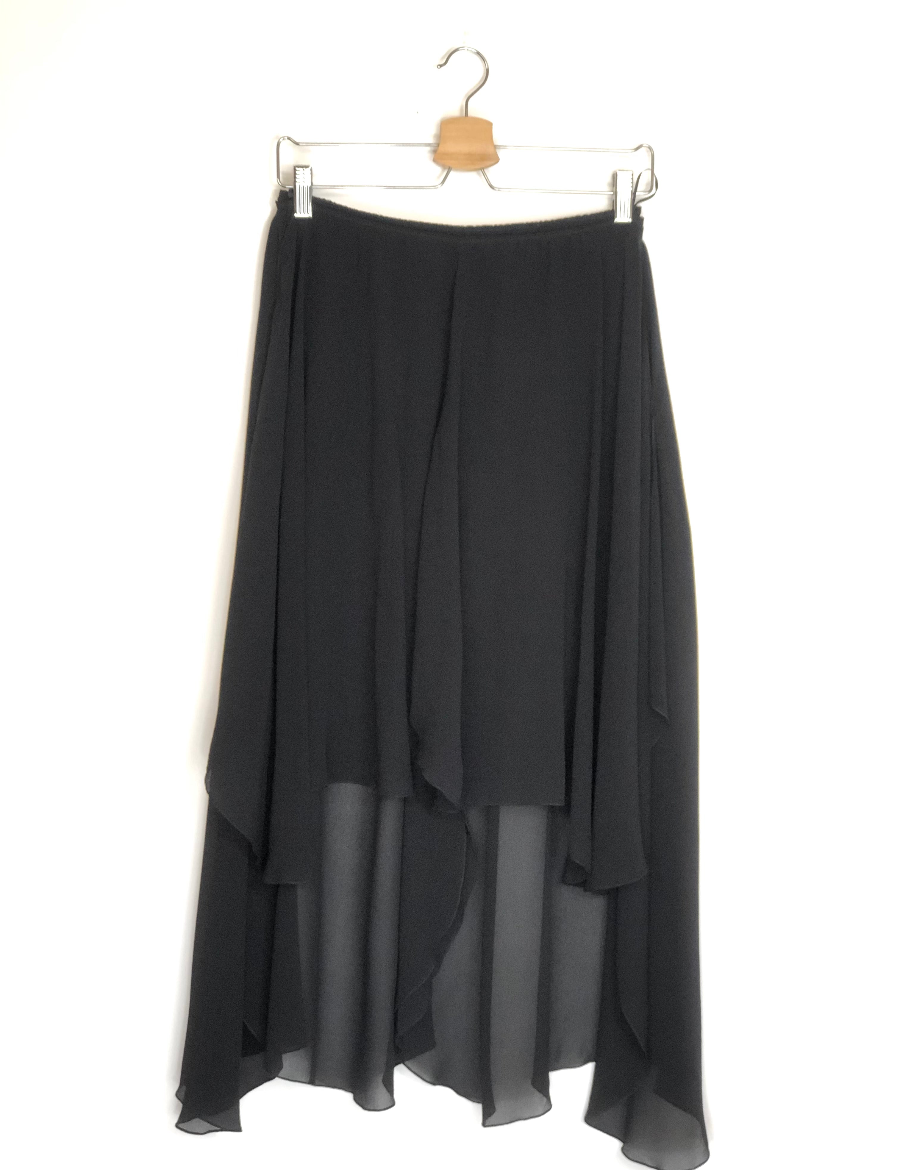 Black Silk Chiffon Asymmetric Midi Skirt / CHLOE - Size 36