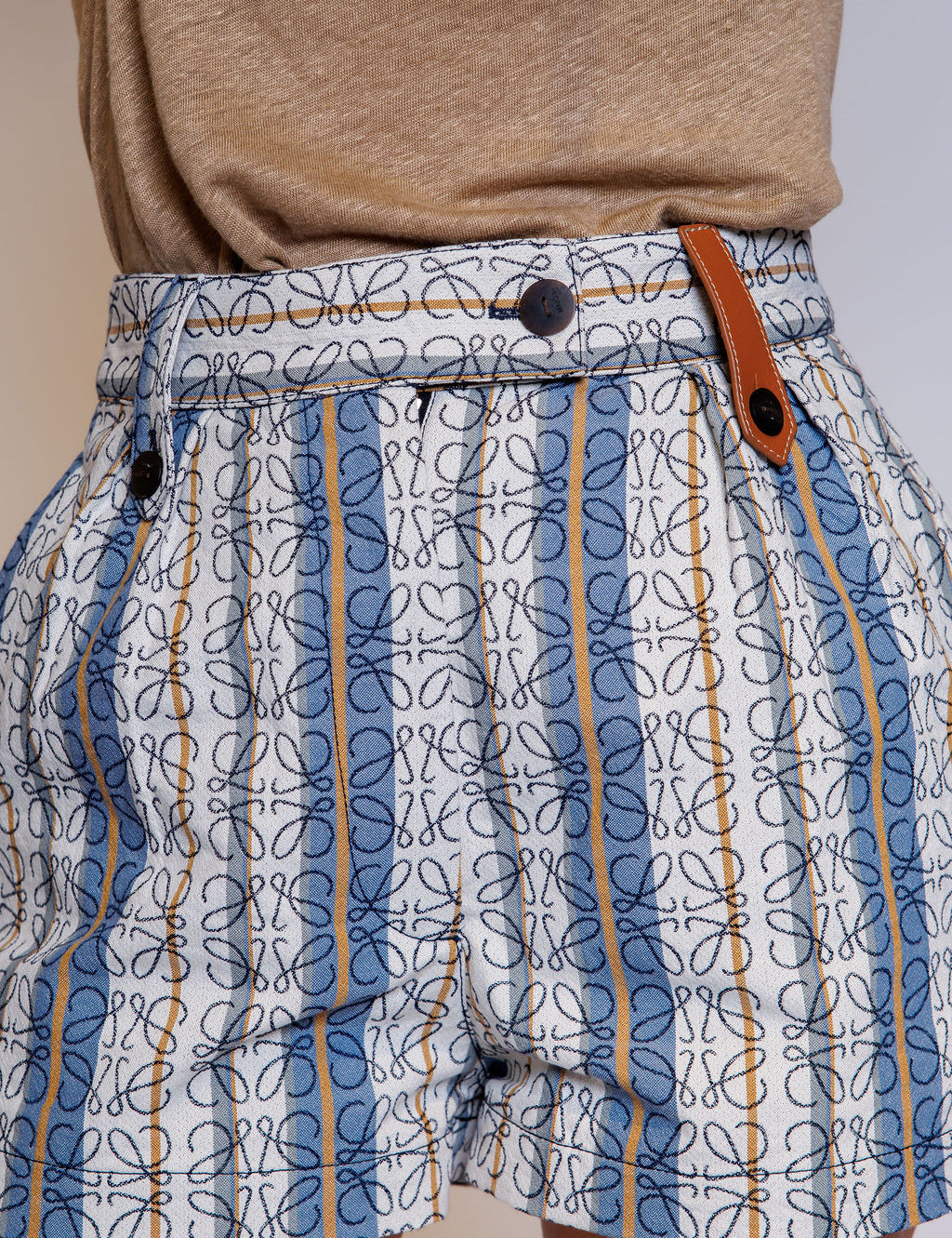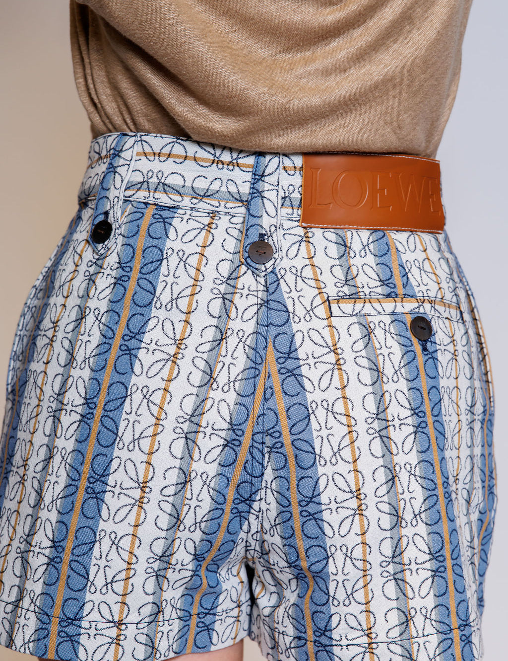 Blue Cotton Jacquard Anagram Striped High-rise Mini Shorts / LOEWE - Size 36