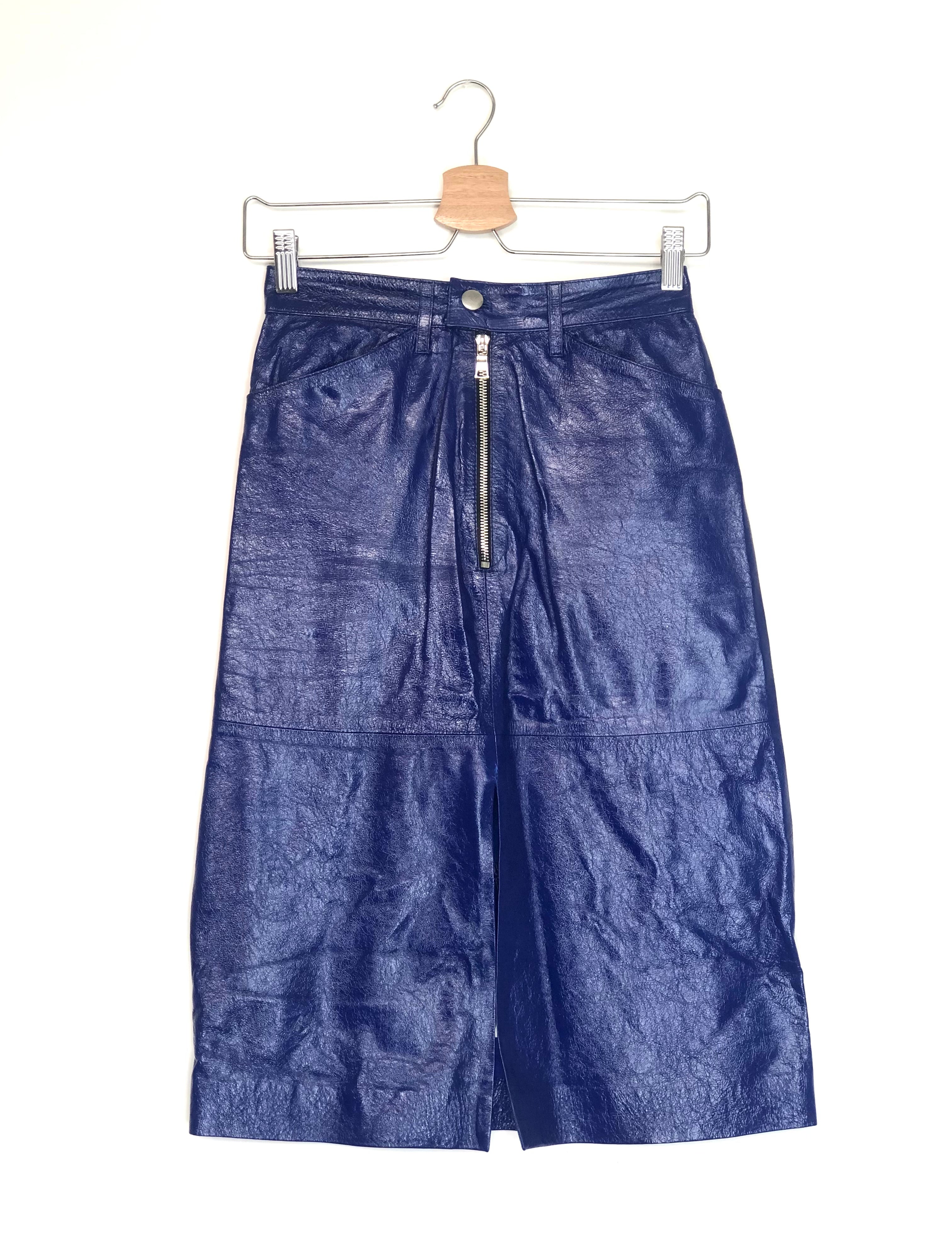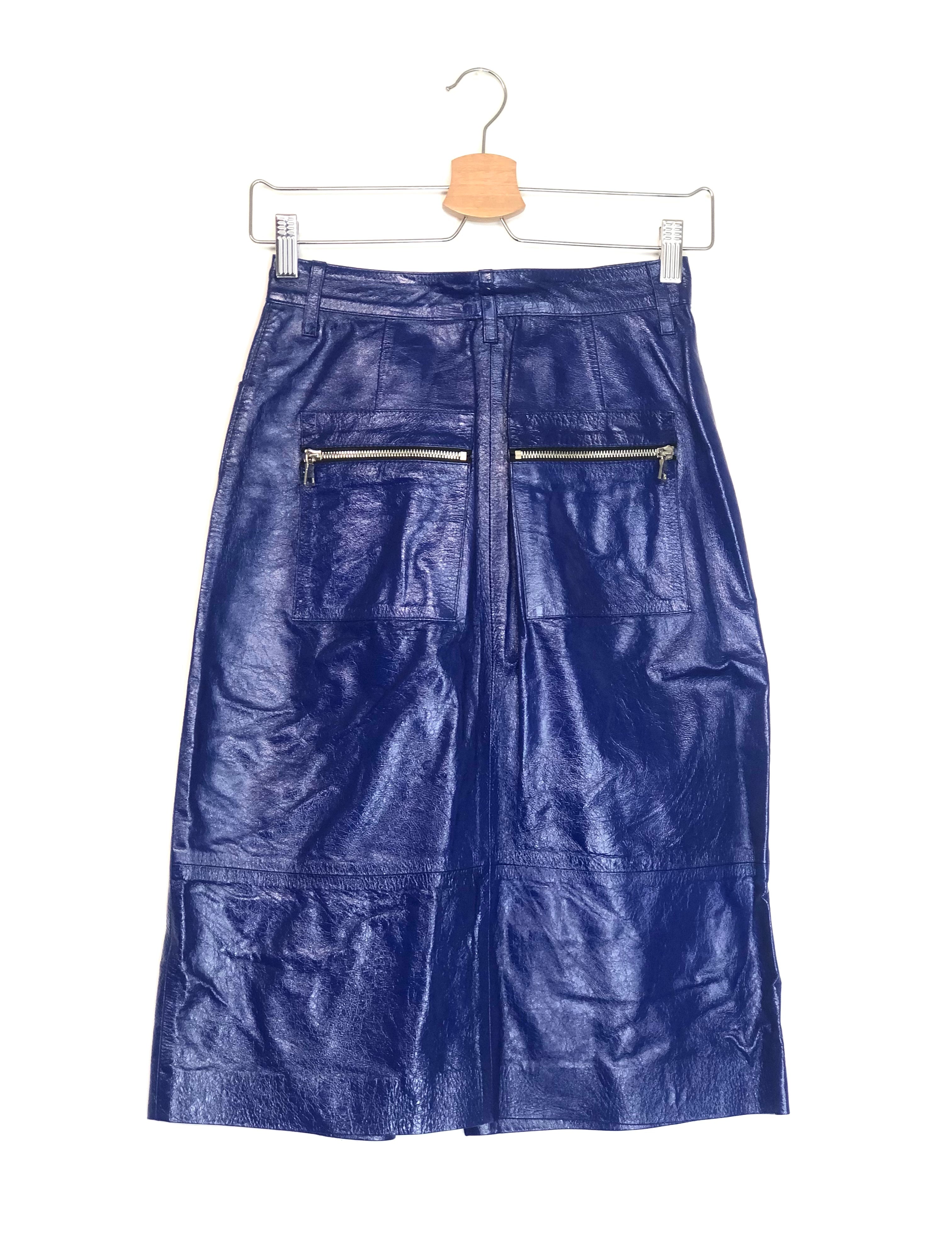 Blue Electric Patent Cracked-Leather Pencil Skirt / SPRWMN - Size S