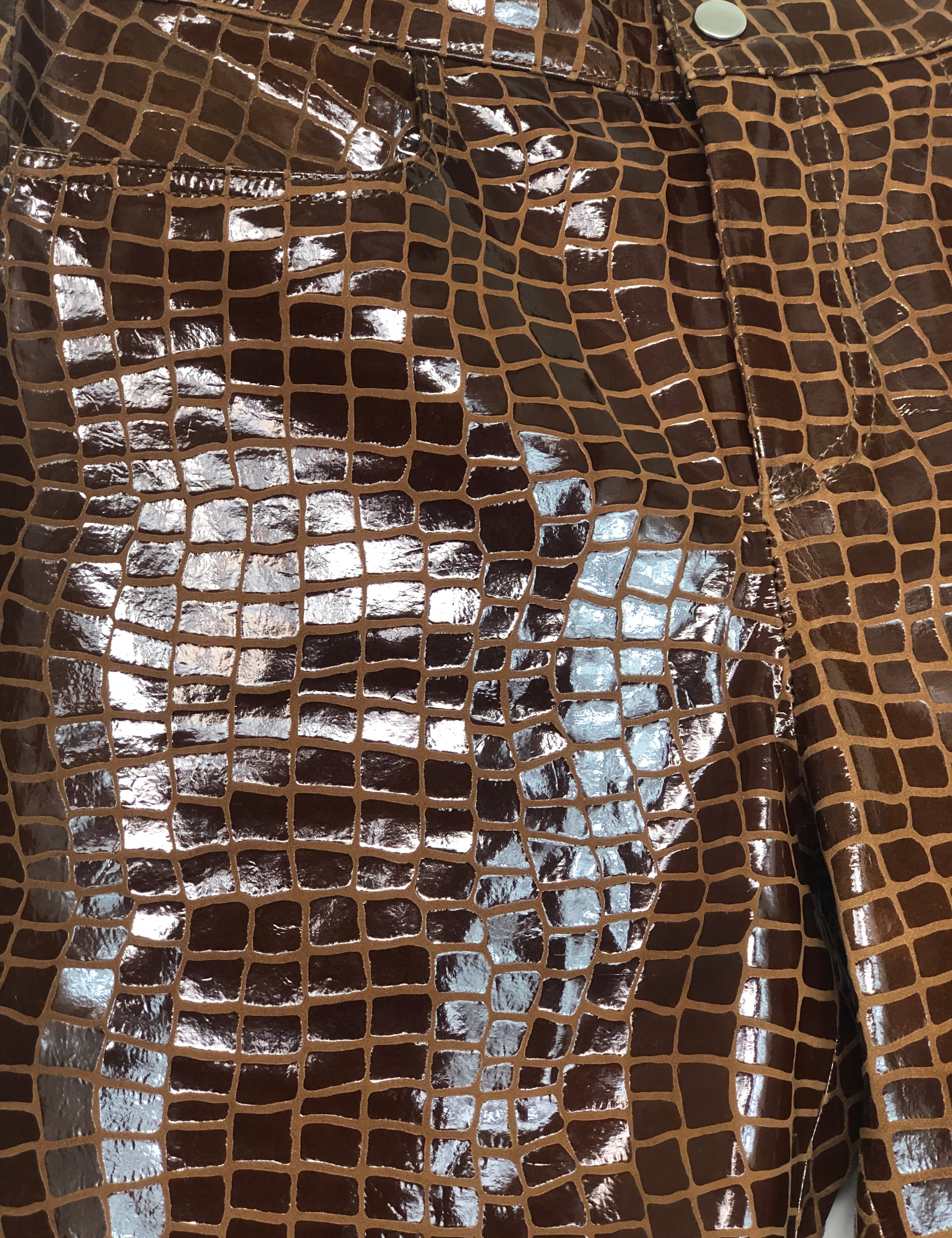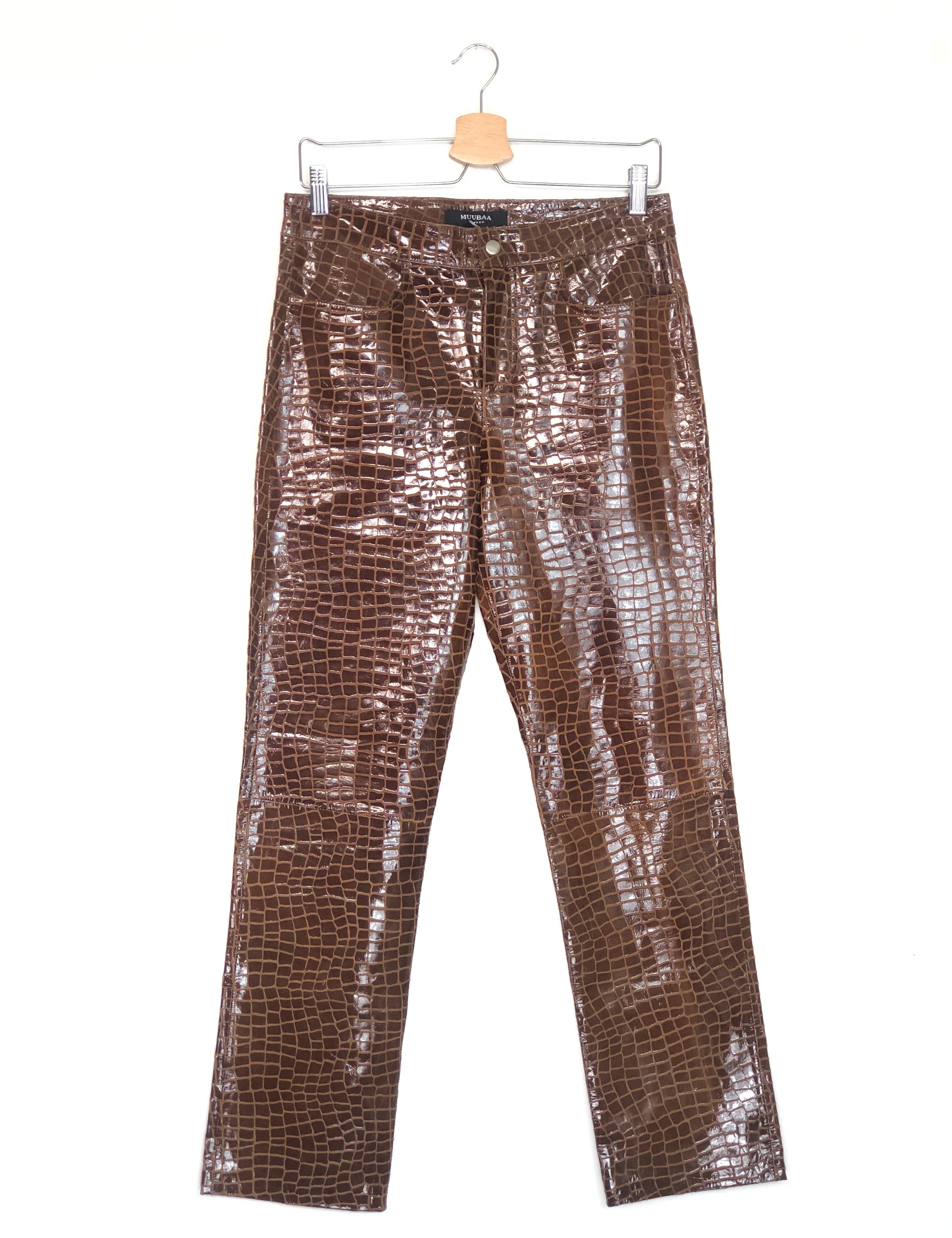 Brown Croc-effect Straight Leg Glossy Leather Pants / MUUBAA - Size 36