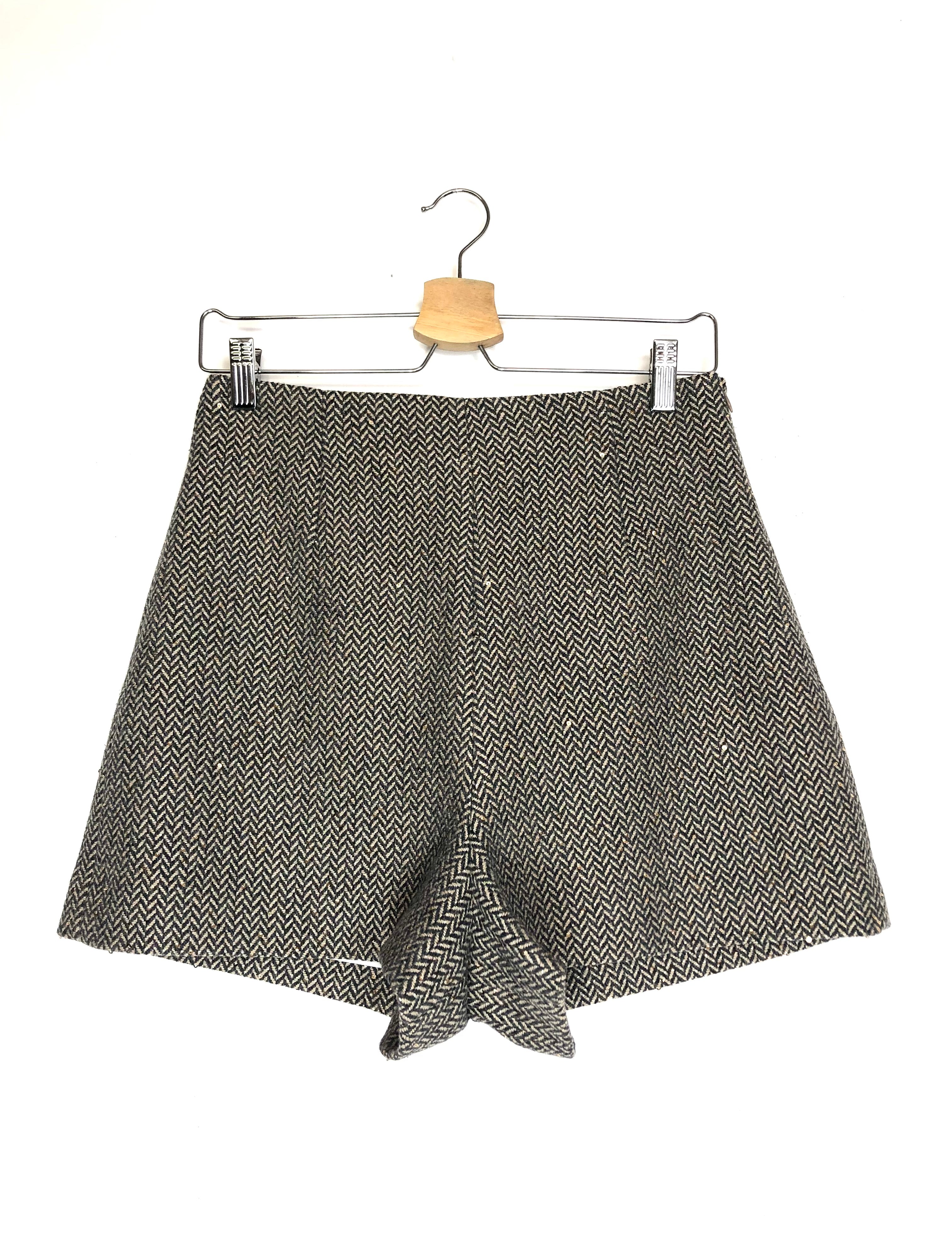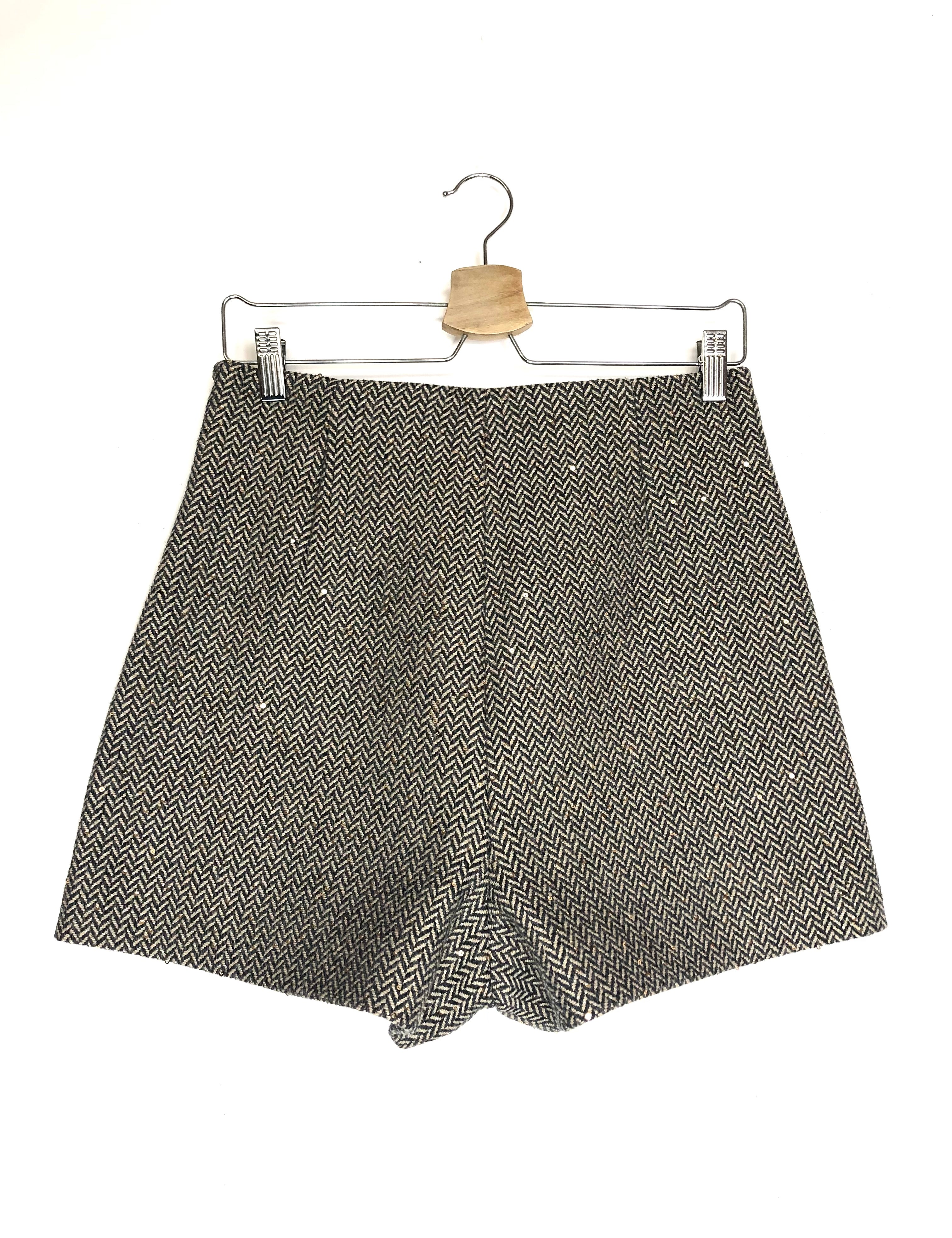 Brown Herringbone Golden Sequin Shorts / SANDRO - Size 38