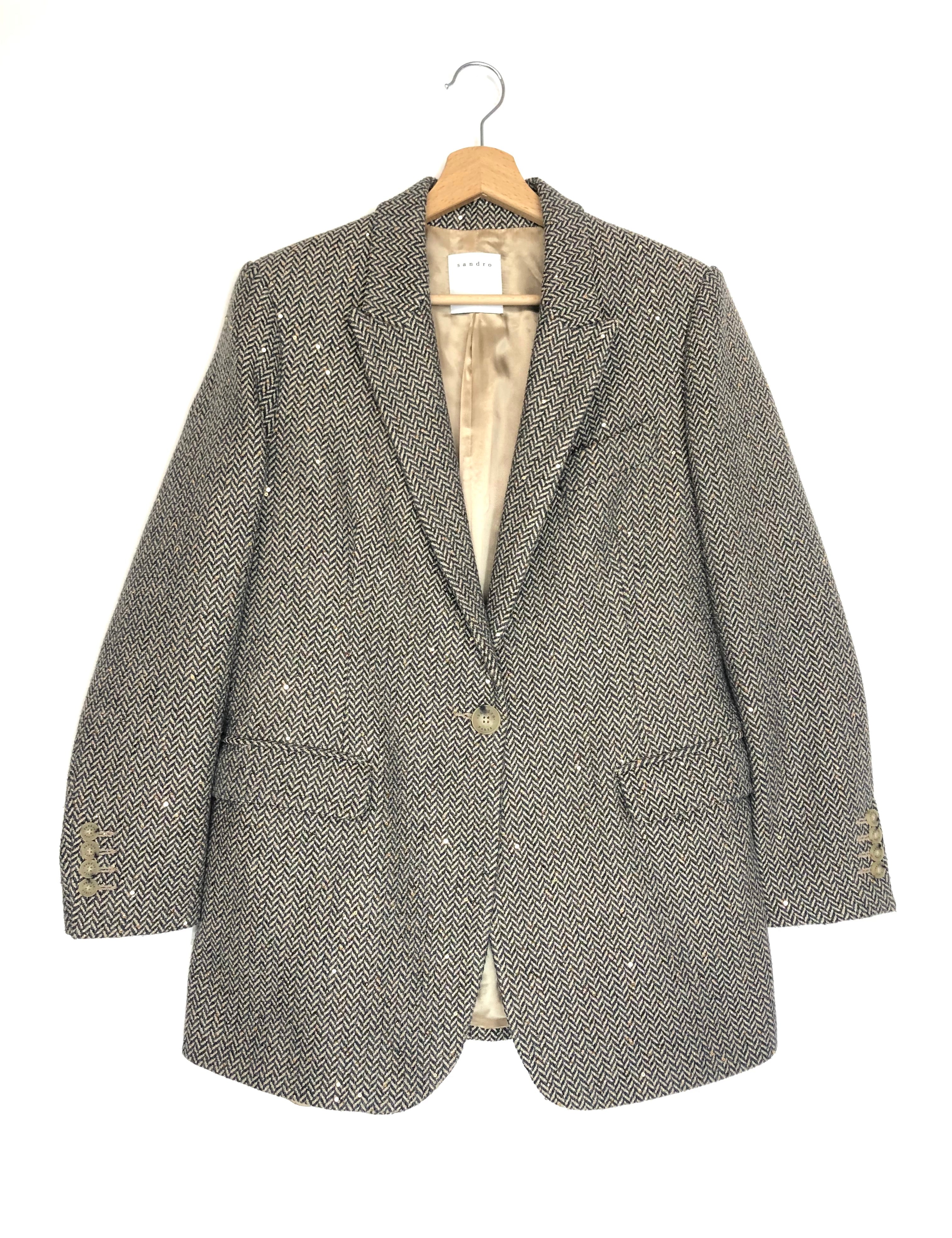 Brown Herringbone Golden Sequin Suit Jacket / SANDRO - Size 36