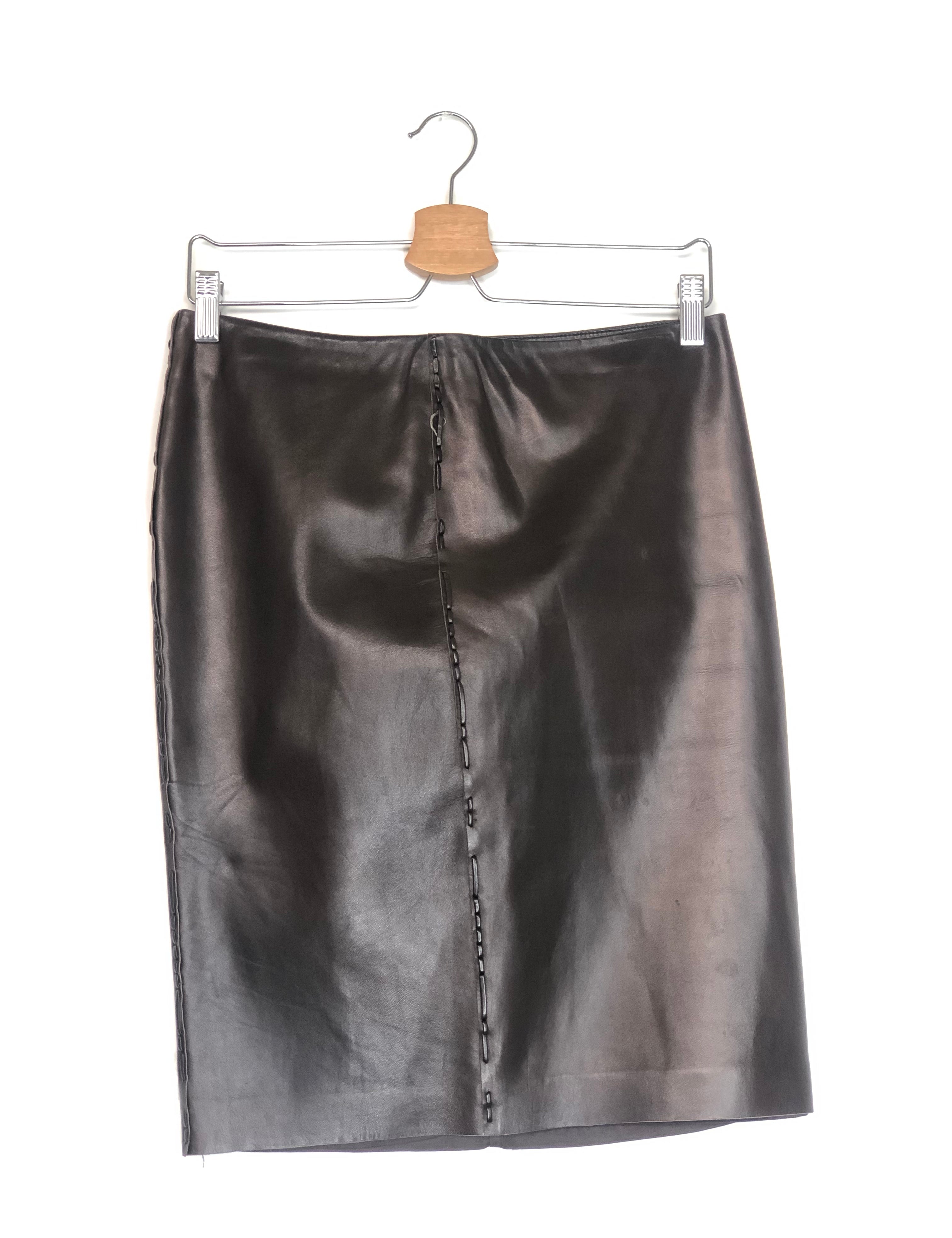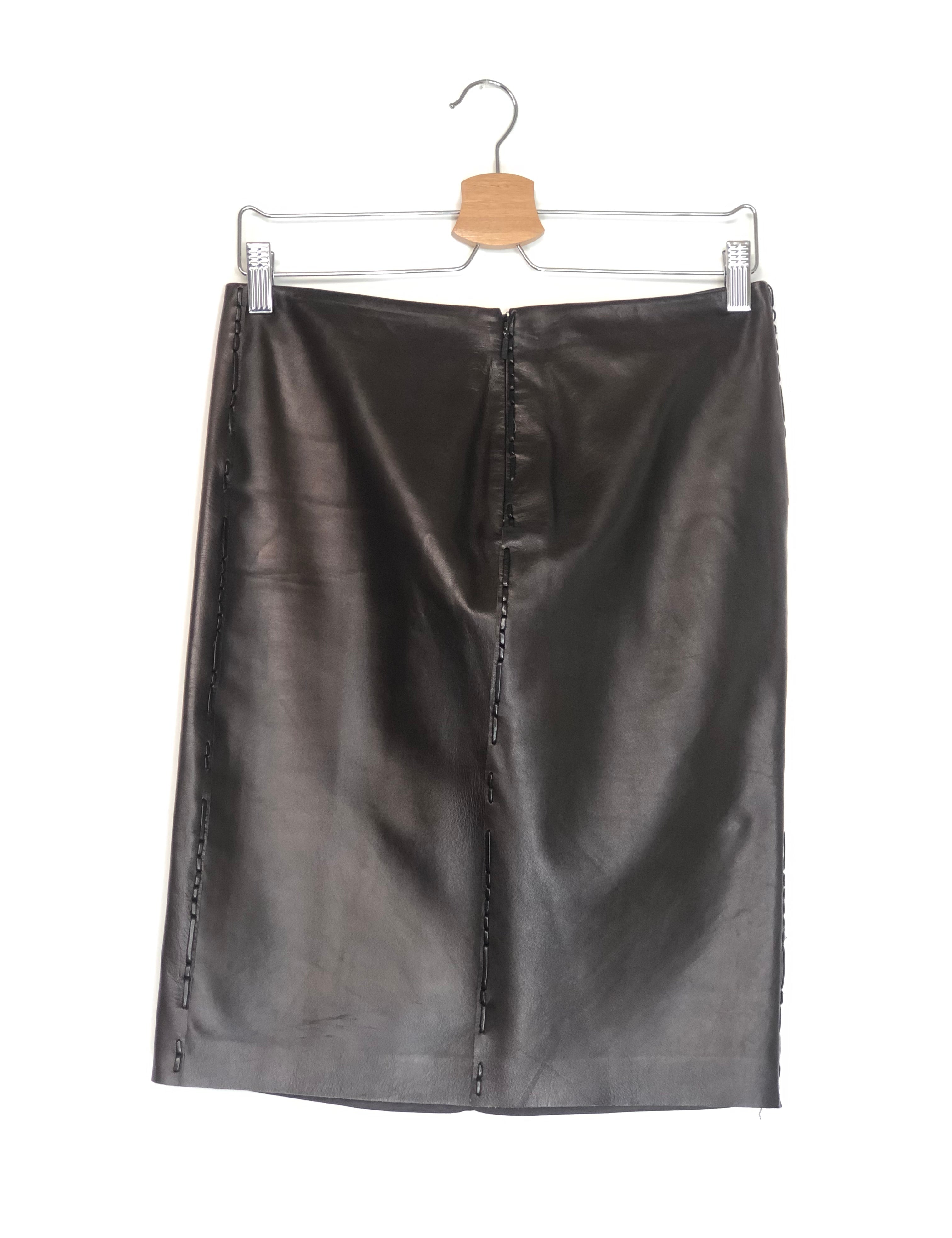Brown Leather Mid-length Skirt / GUCCI - Size 40