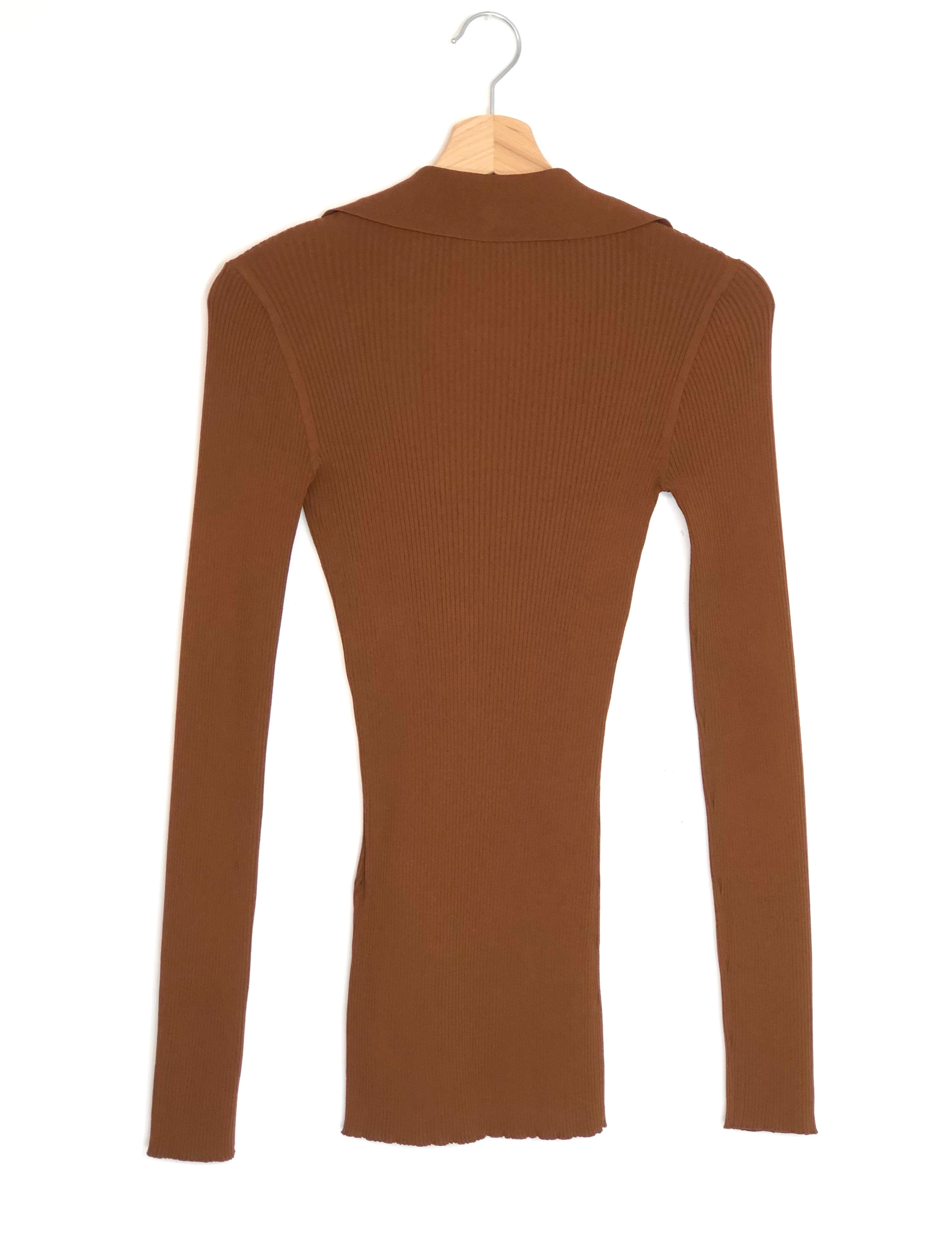 Brown V-neck Ribbed-knit Embellished Top / SAINT LAURENT - Size M