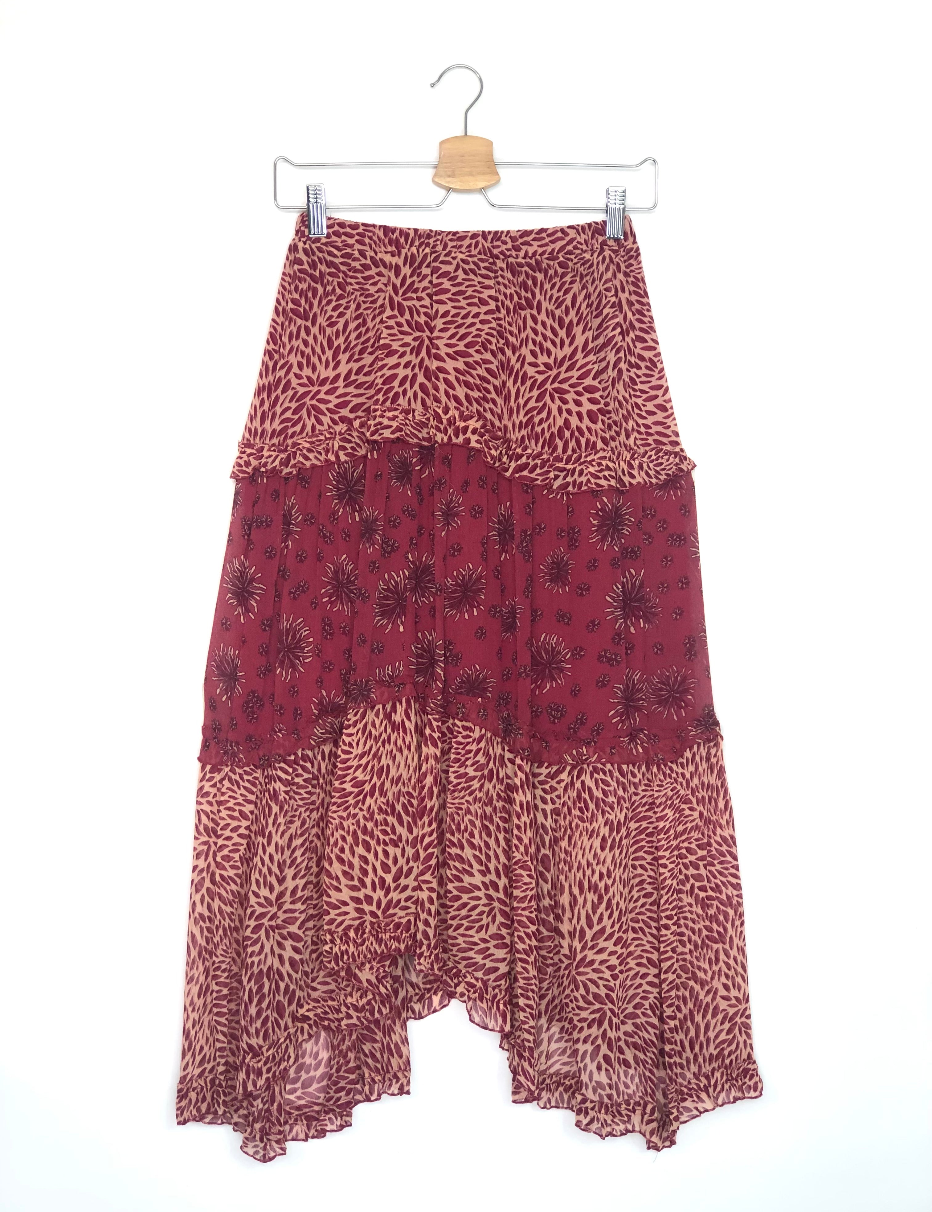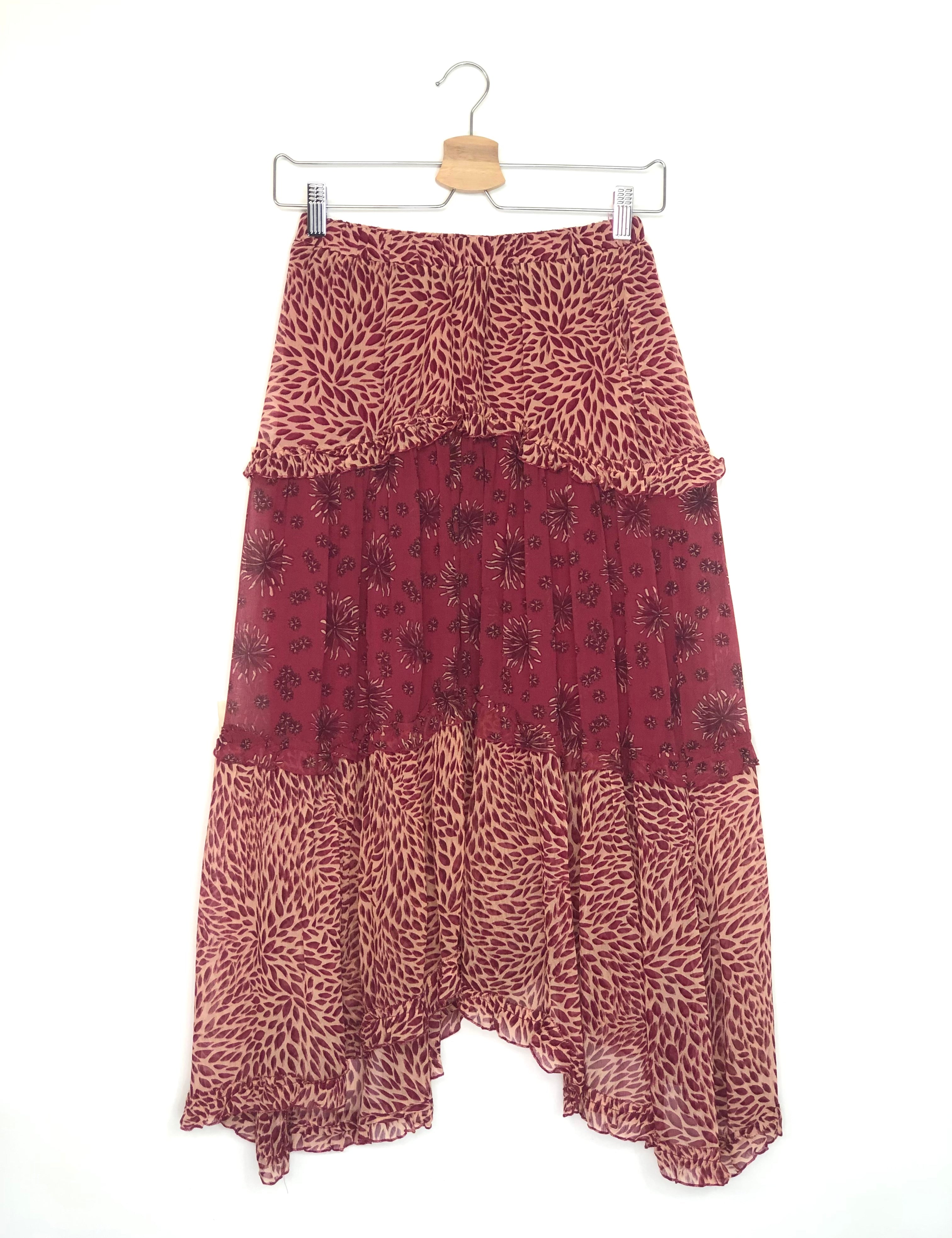 Burgundy GAPI Asymmetric Printed Midi Skirt / BA&SH - Size 0