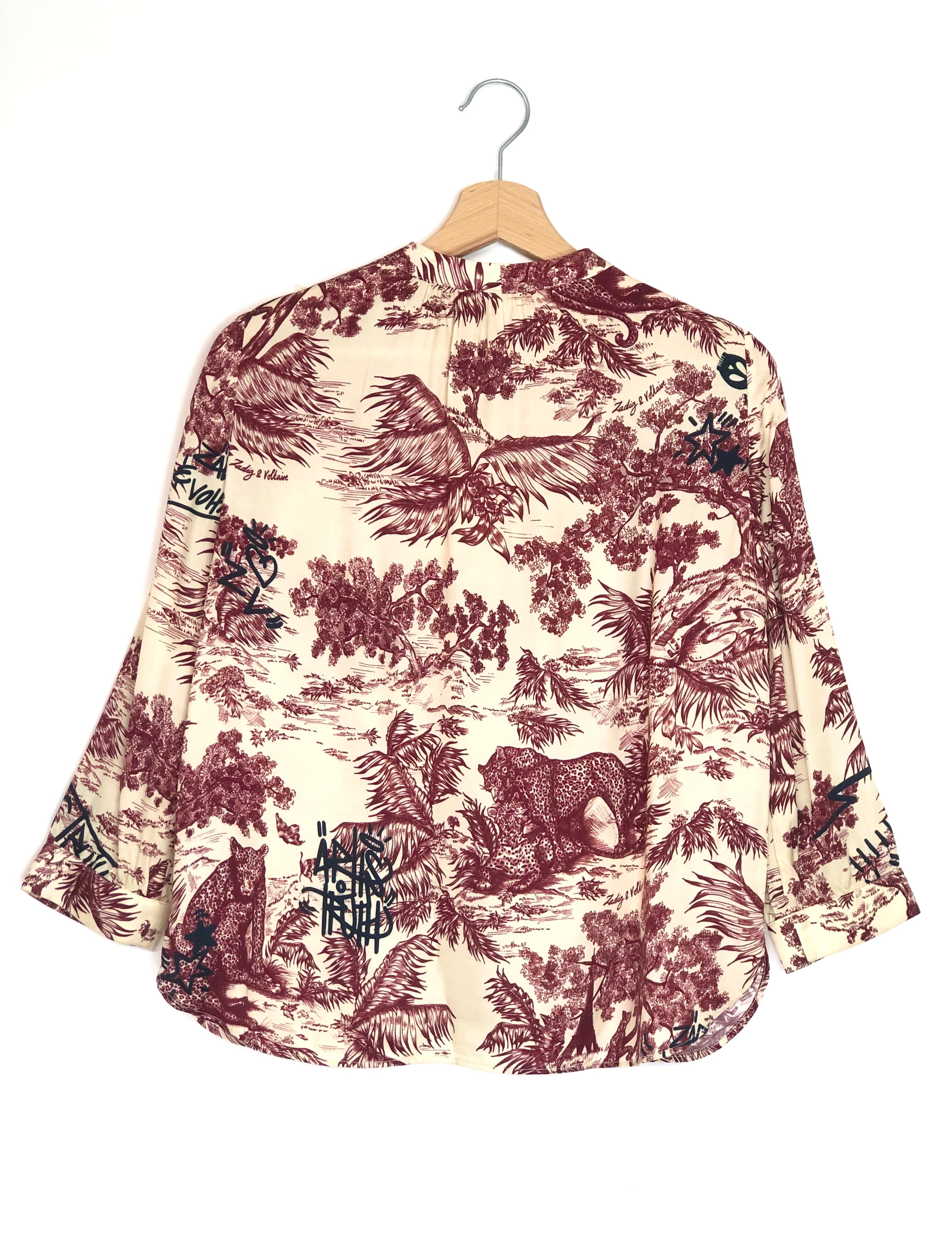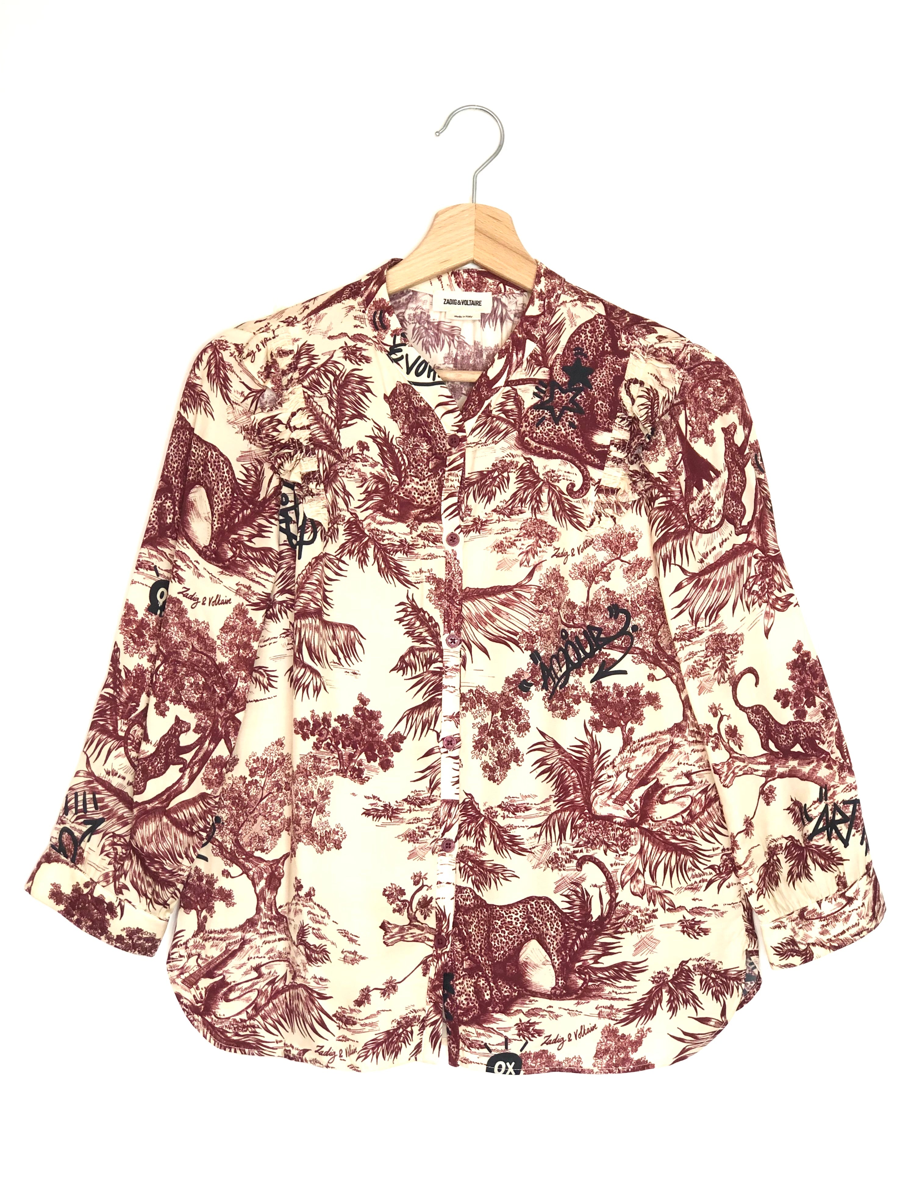 Burgundy TYGG Jouy Print Silky Satin Shirt / ZADIG & VOLTAIRE - Size XS