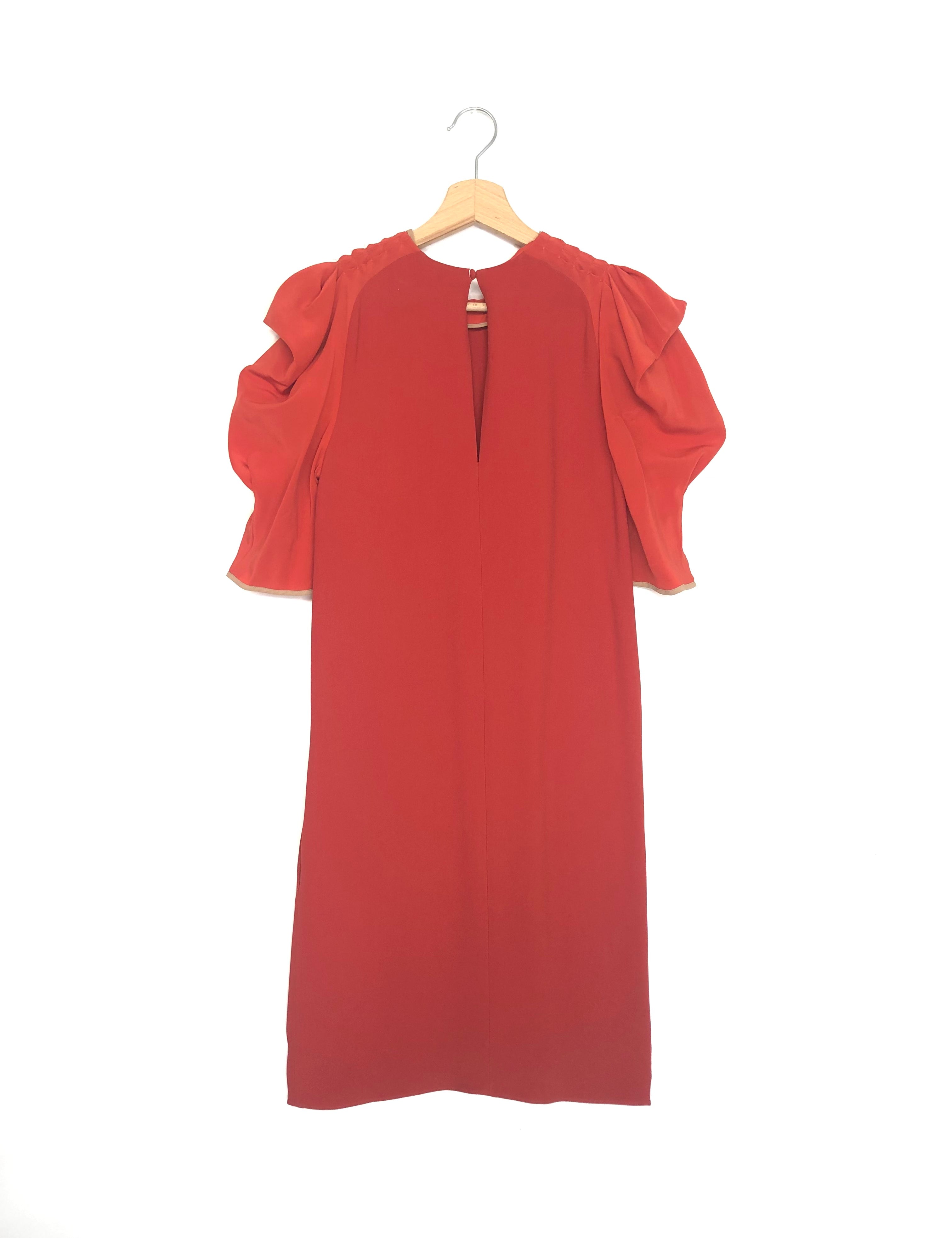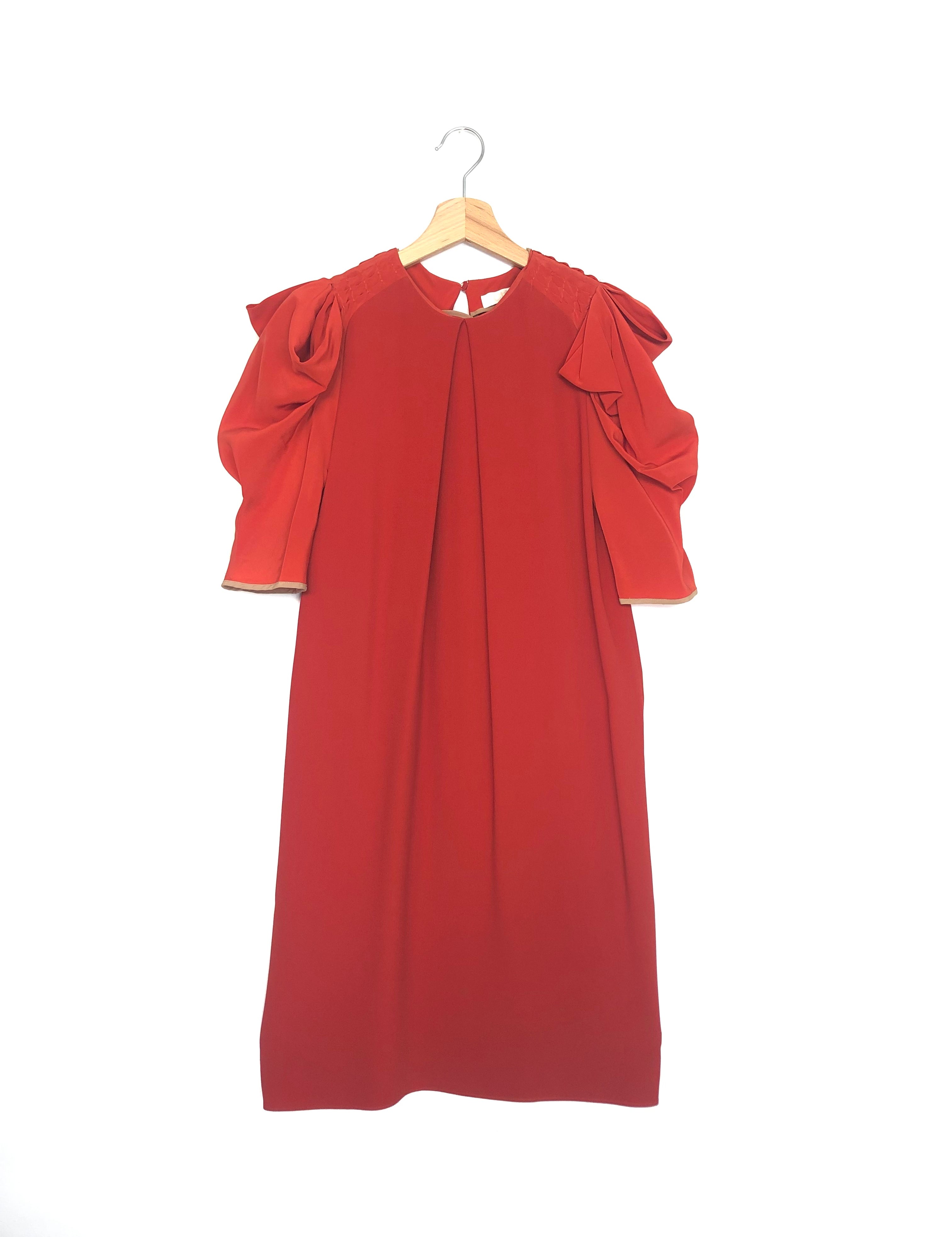 Carmine Red Silk Short Sleeves Midi Dress / CHLOE - Size 34