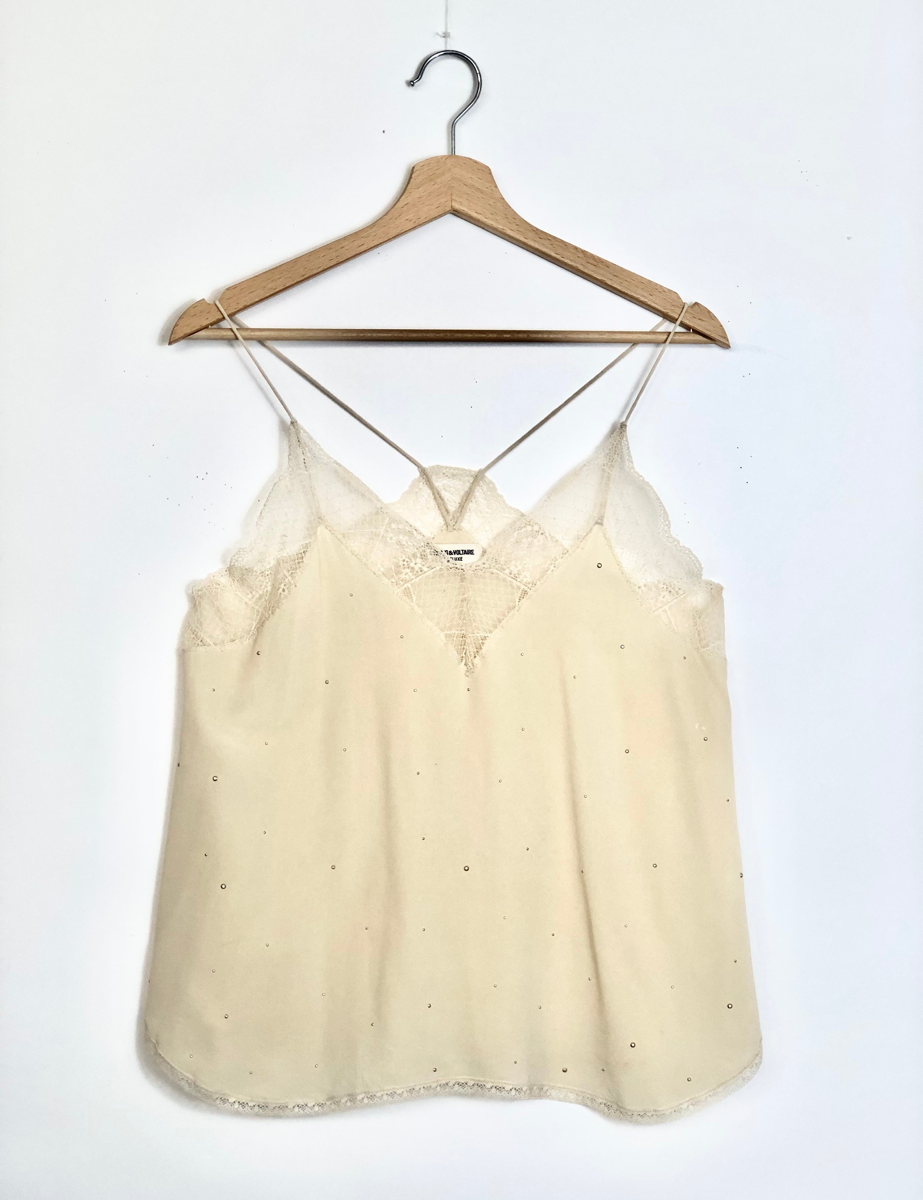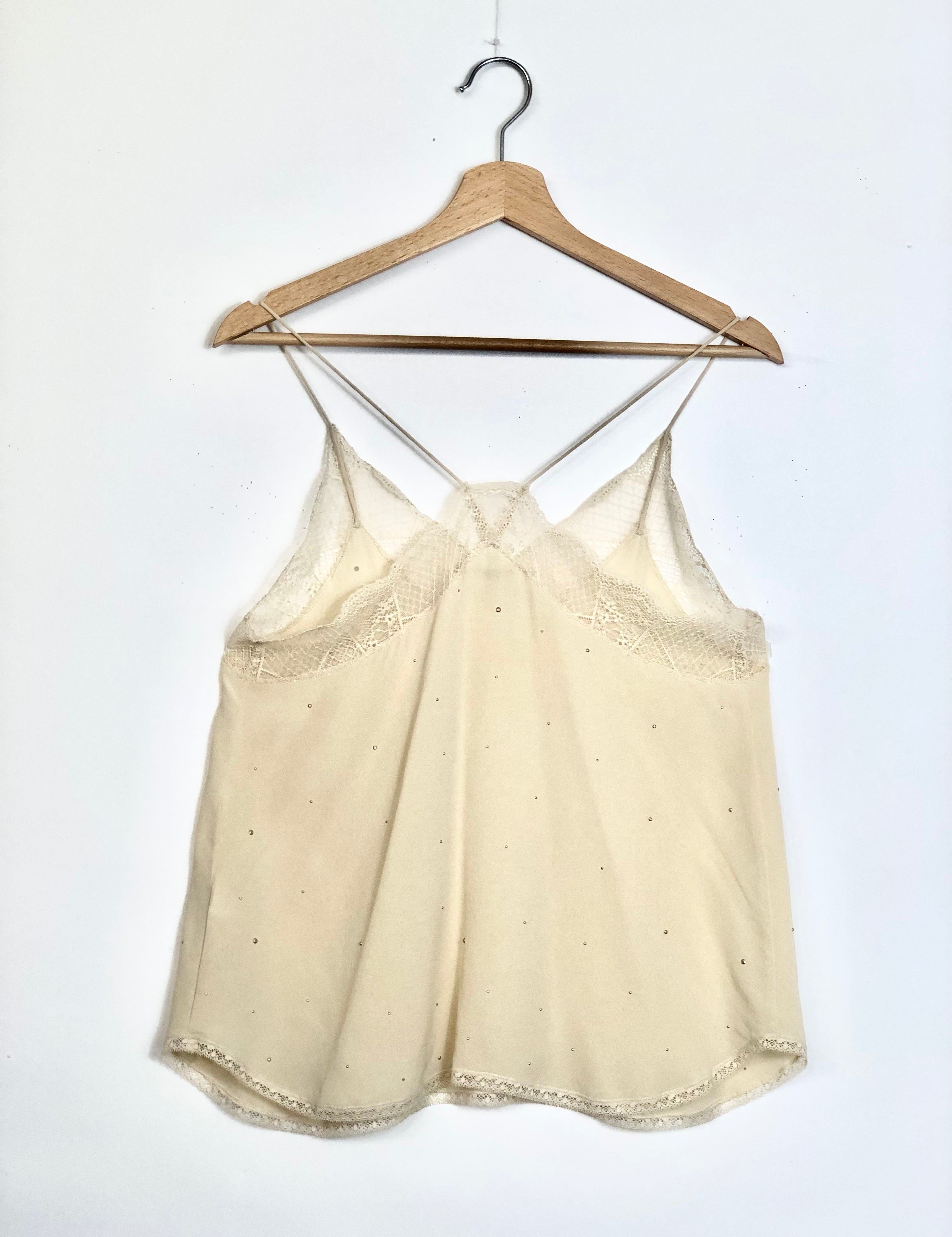 Ecru CHRISTY Studded Silk Camisole / ZADIG & VOLTAIRE DELUXE - Size XS