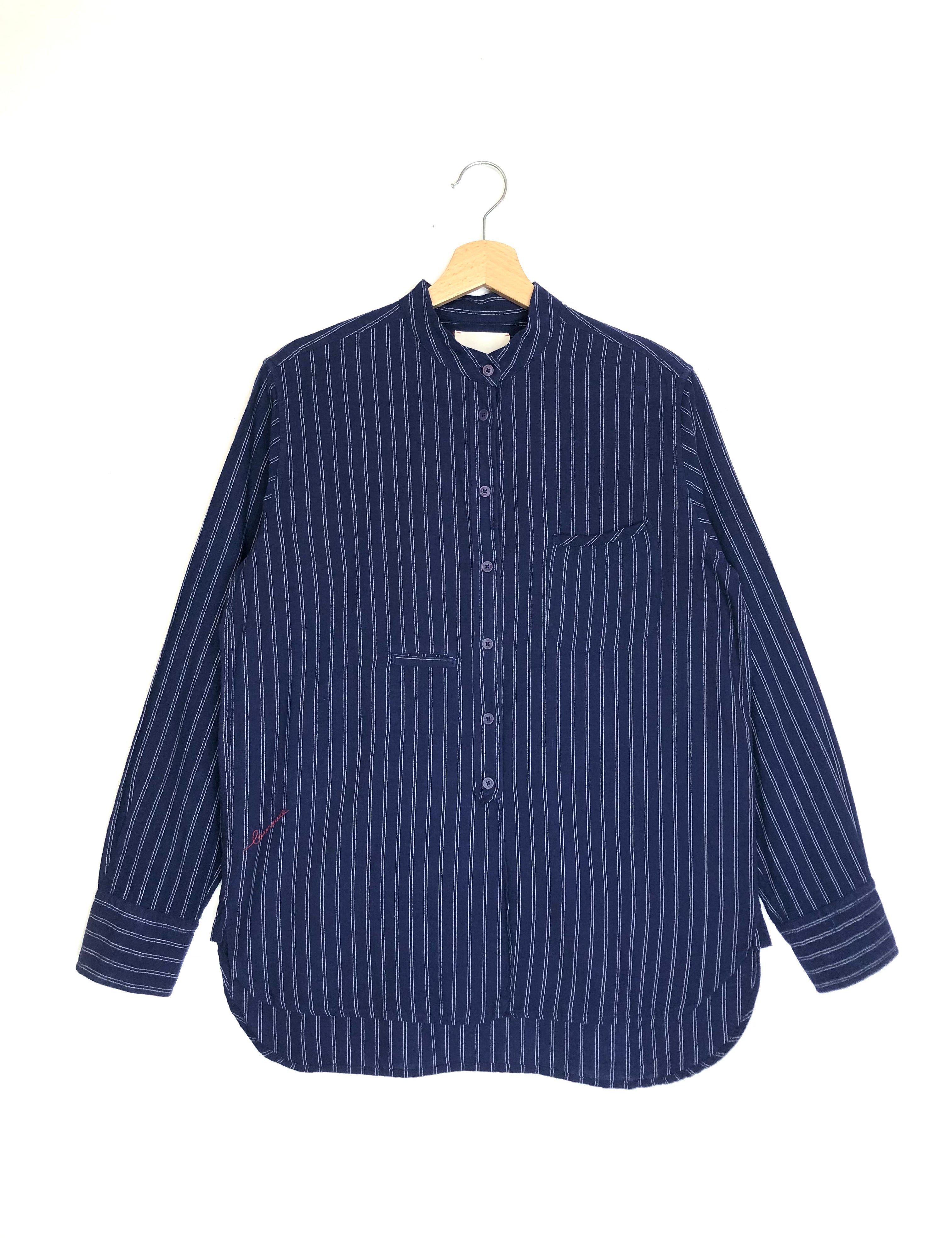 Navy Blue MAXOU Chambray Striped Blouse / LAURENCE BRAS - Size 36