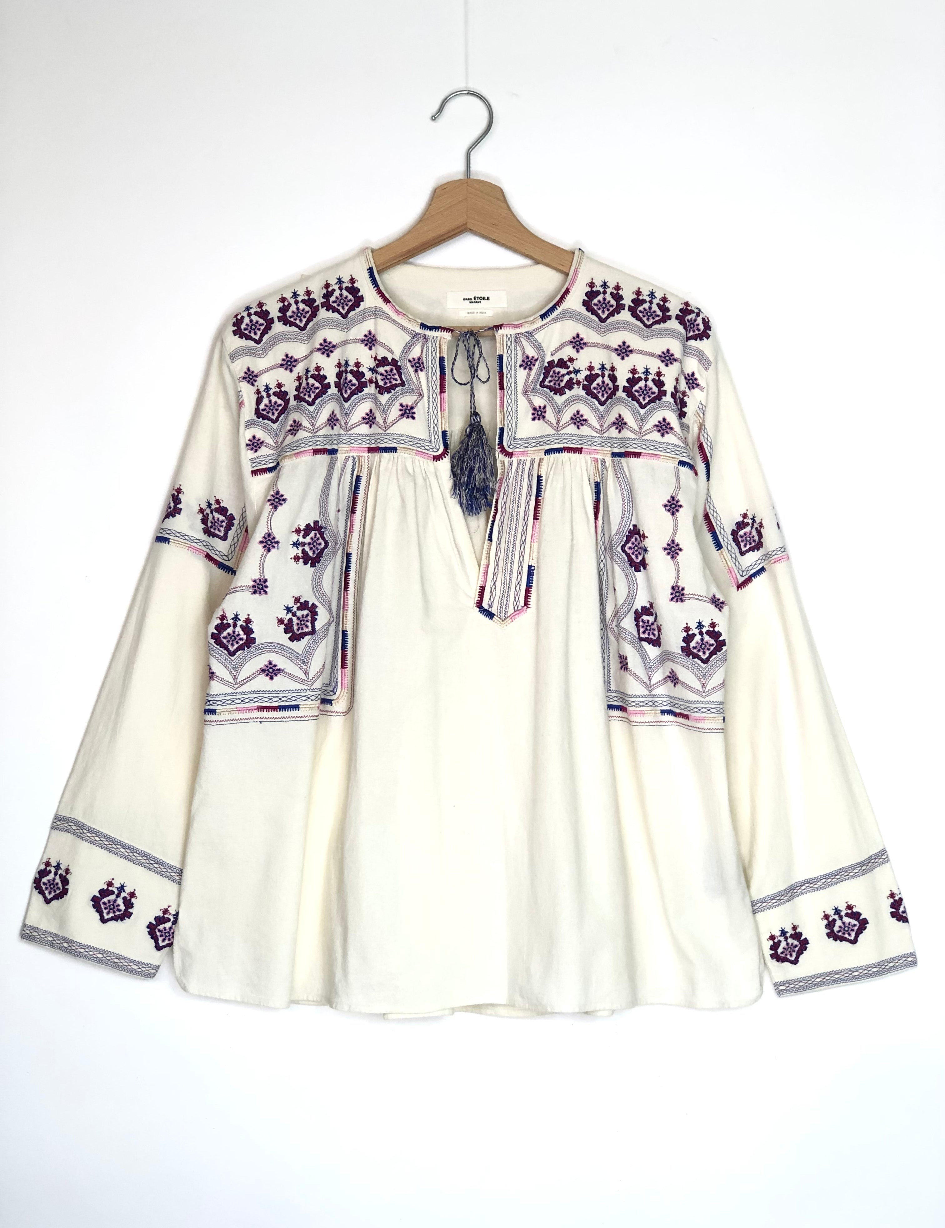 Off-white TREYA Embroidered Cotton Blouse / ISABEL MARANT ETOILE - Size 1