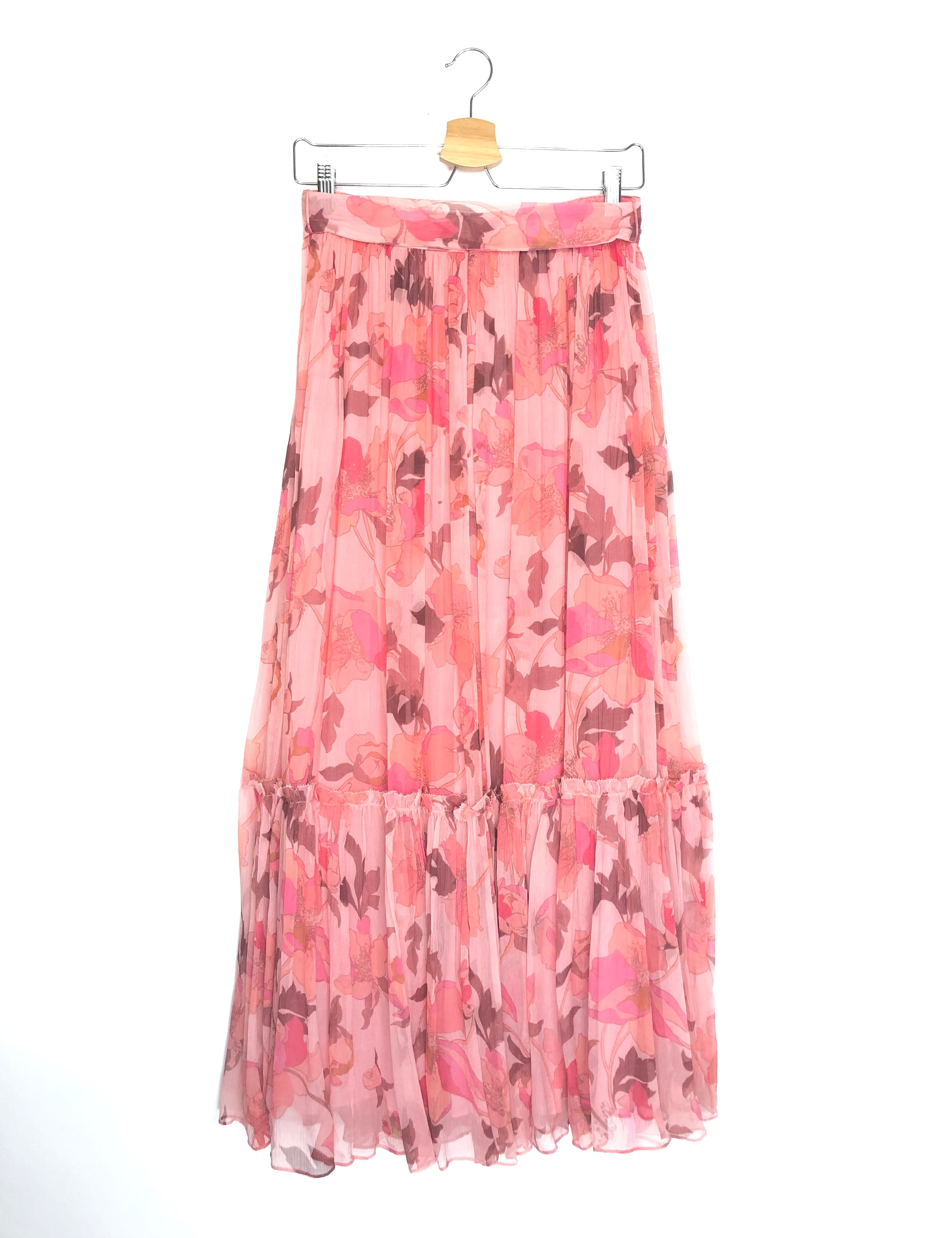 Pink CONCERT Floral Print Silk Chiffon Maxi Skirt / ZIMMERMANN - Size 1