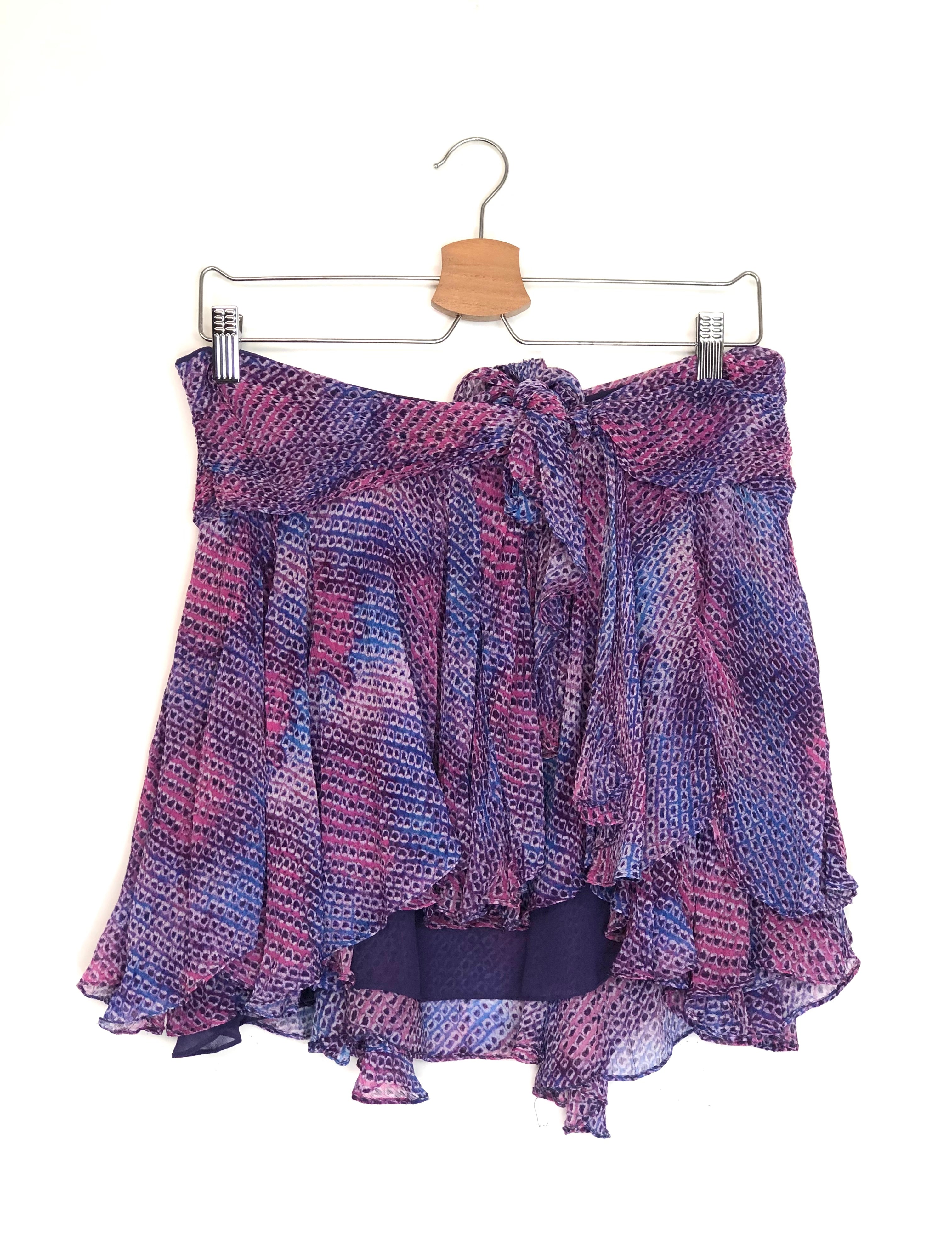 Purple and Pink ATORIA Printed Silk Wrap Mini Skirt / ISABEL MARANT - Size 38