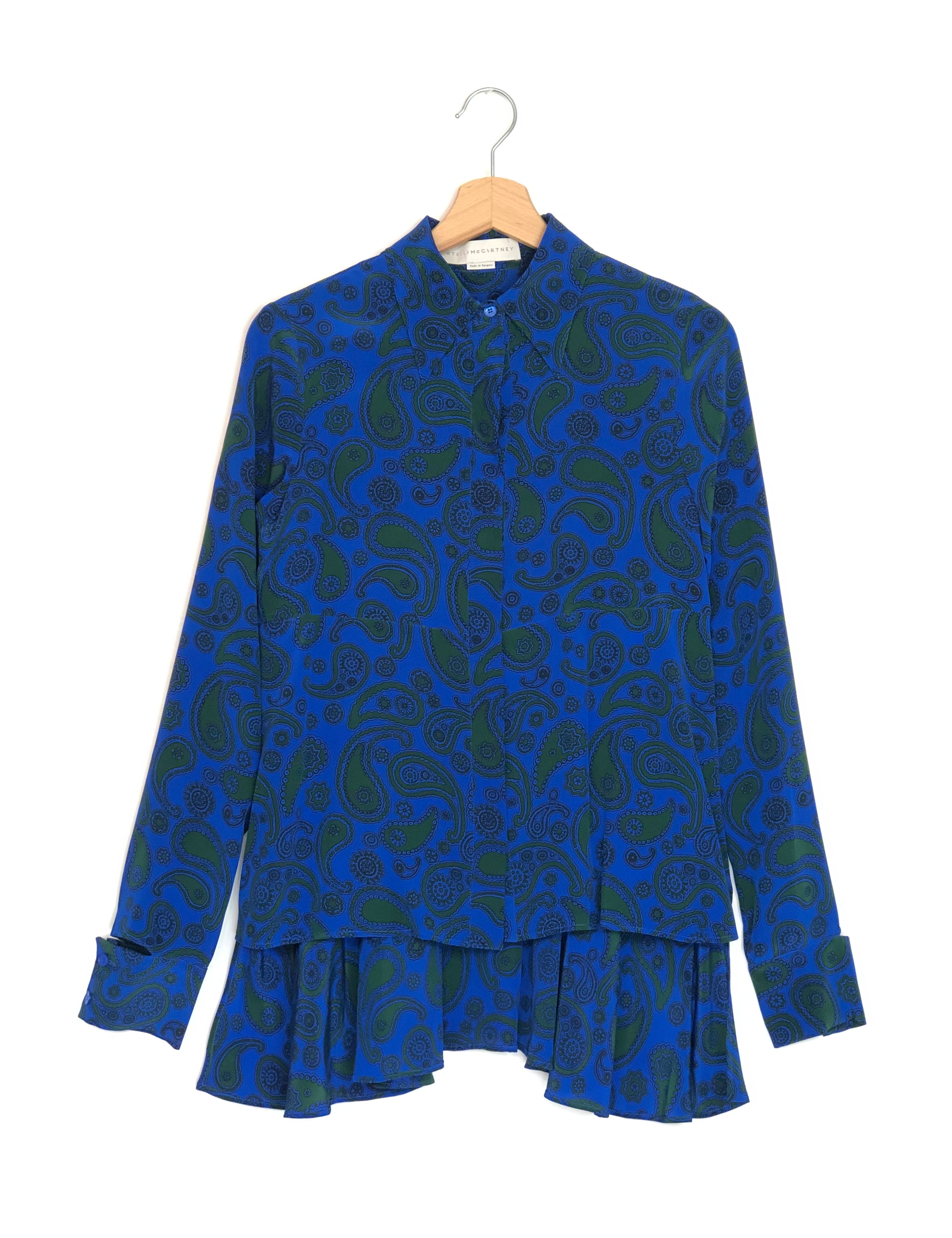 Royal Blue and Green Paisley Print Long Sleeves Blouse / STELLA MCCARTNEY - Size 36