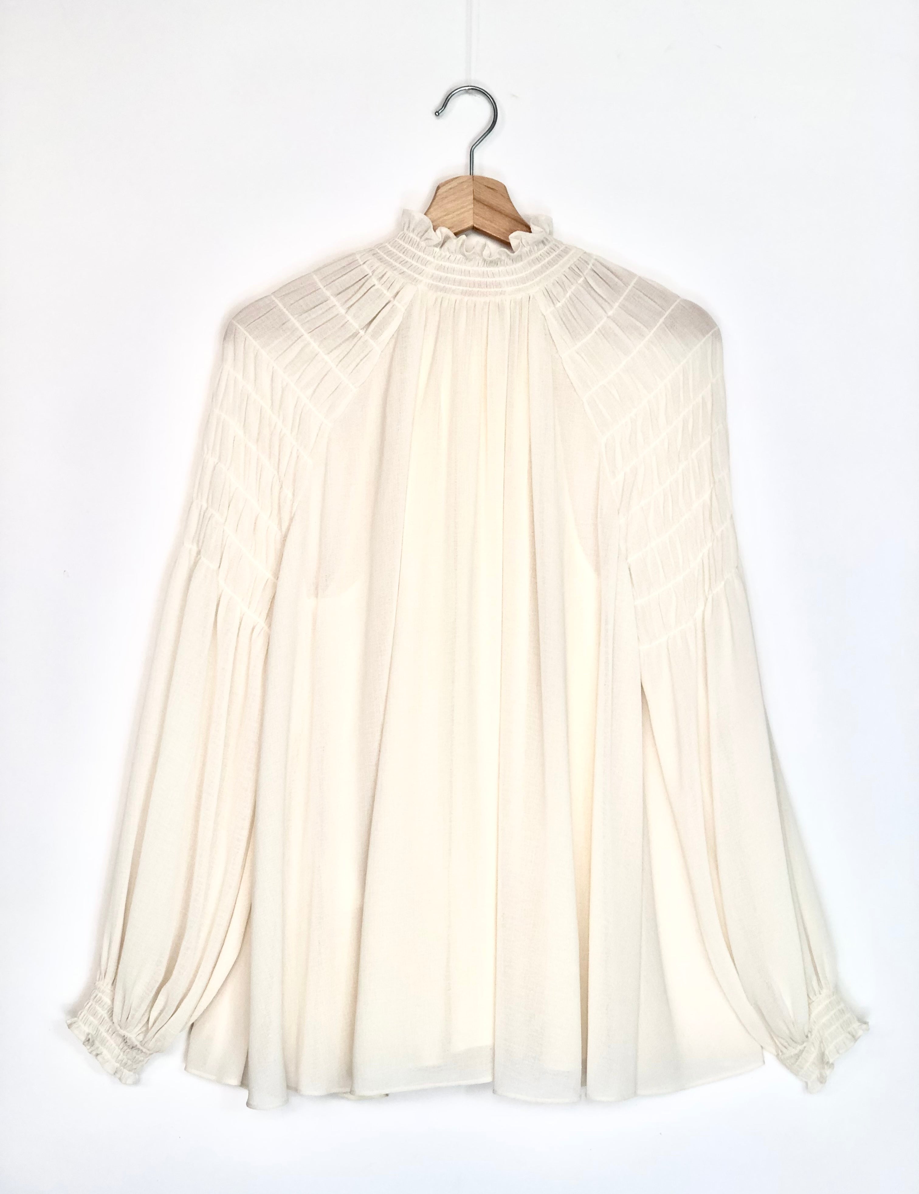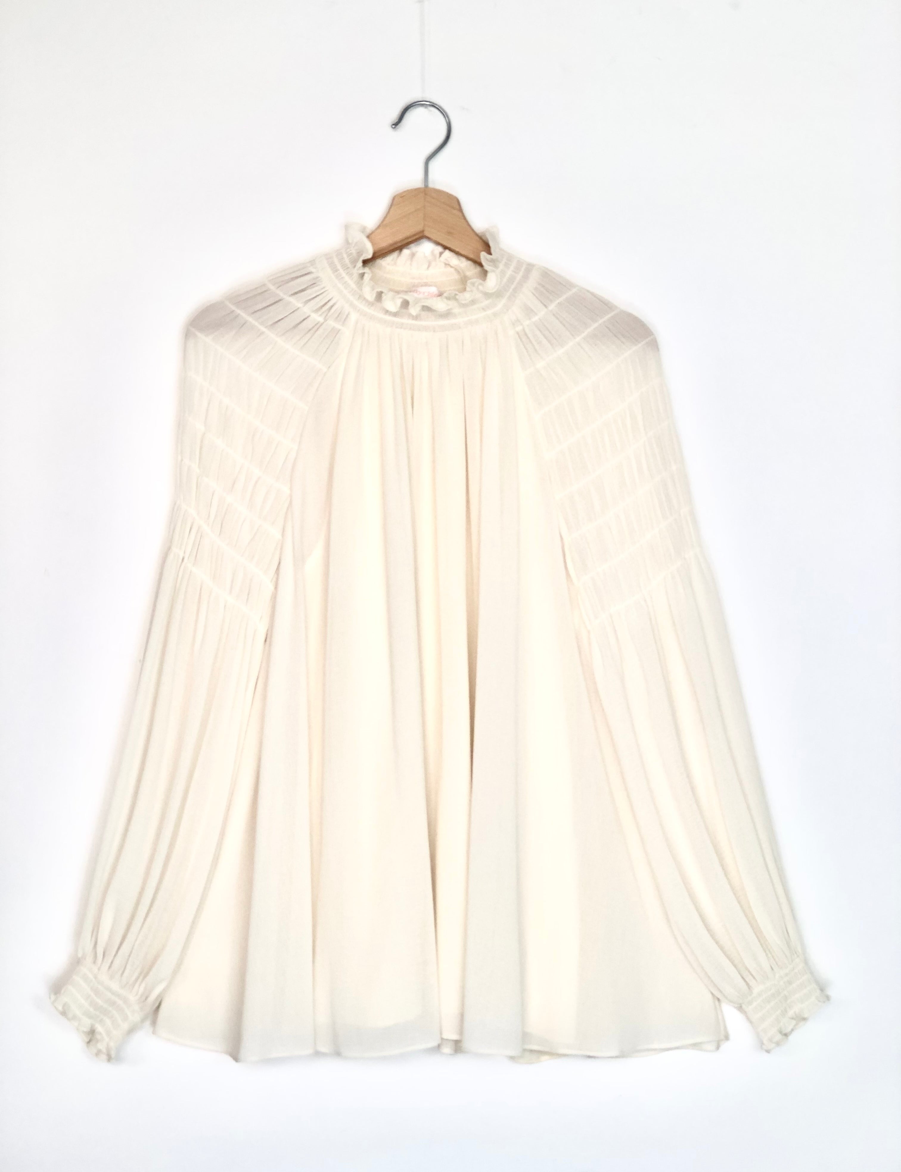Soft Ivory Georgette Ruffled Neck Blouse / SEE BY CHLOE - Size 36