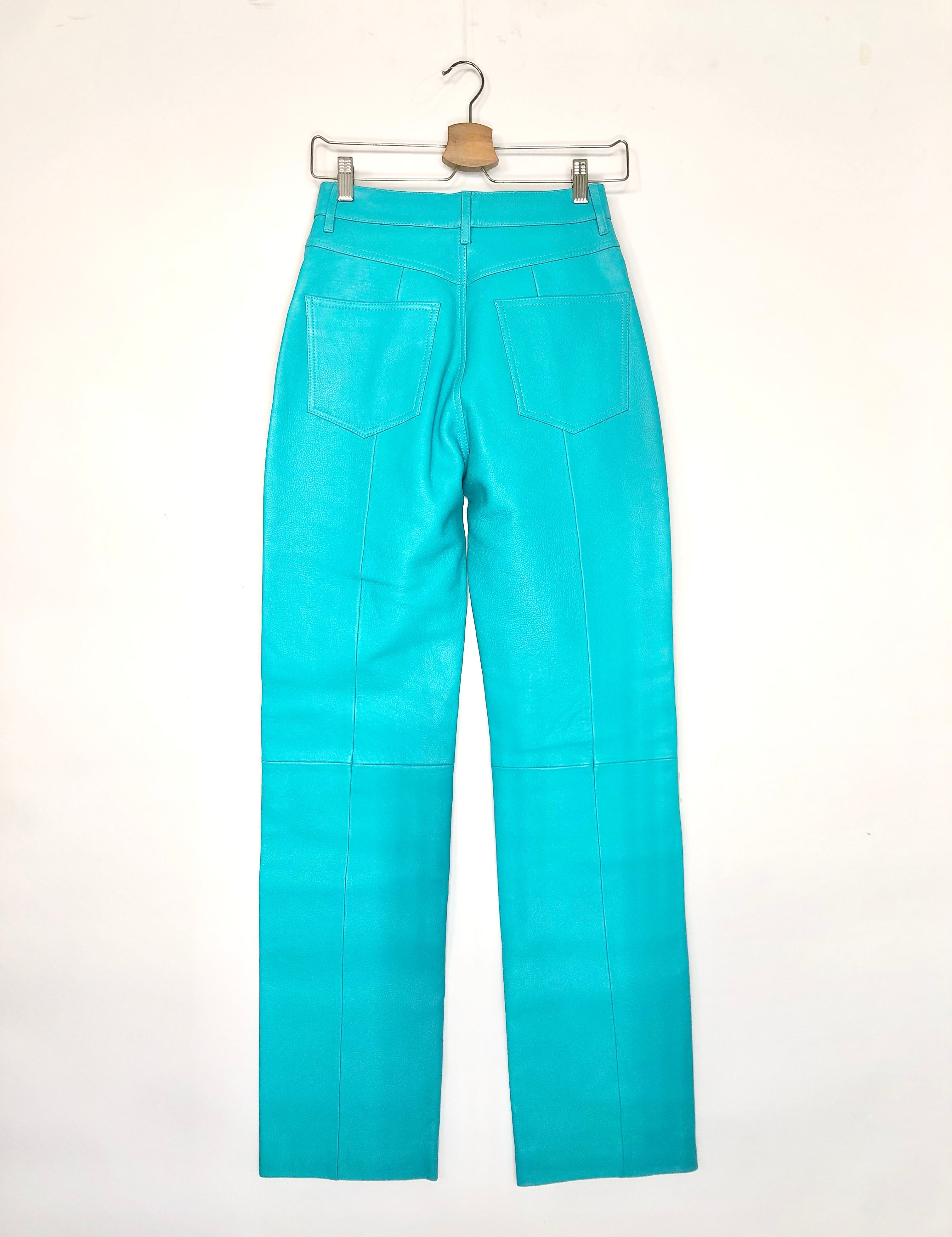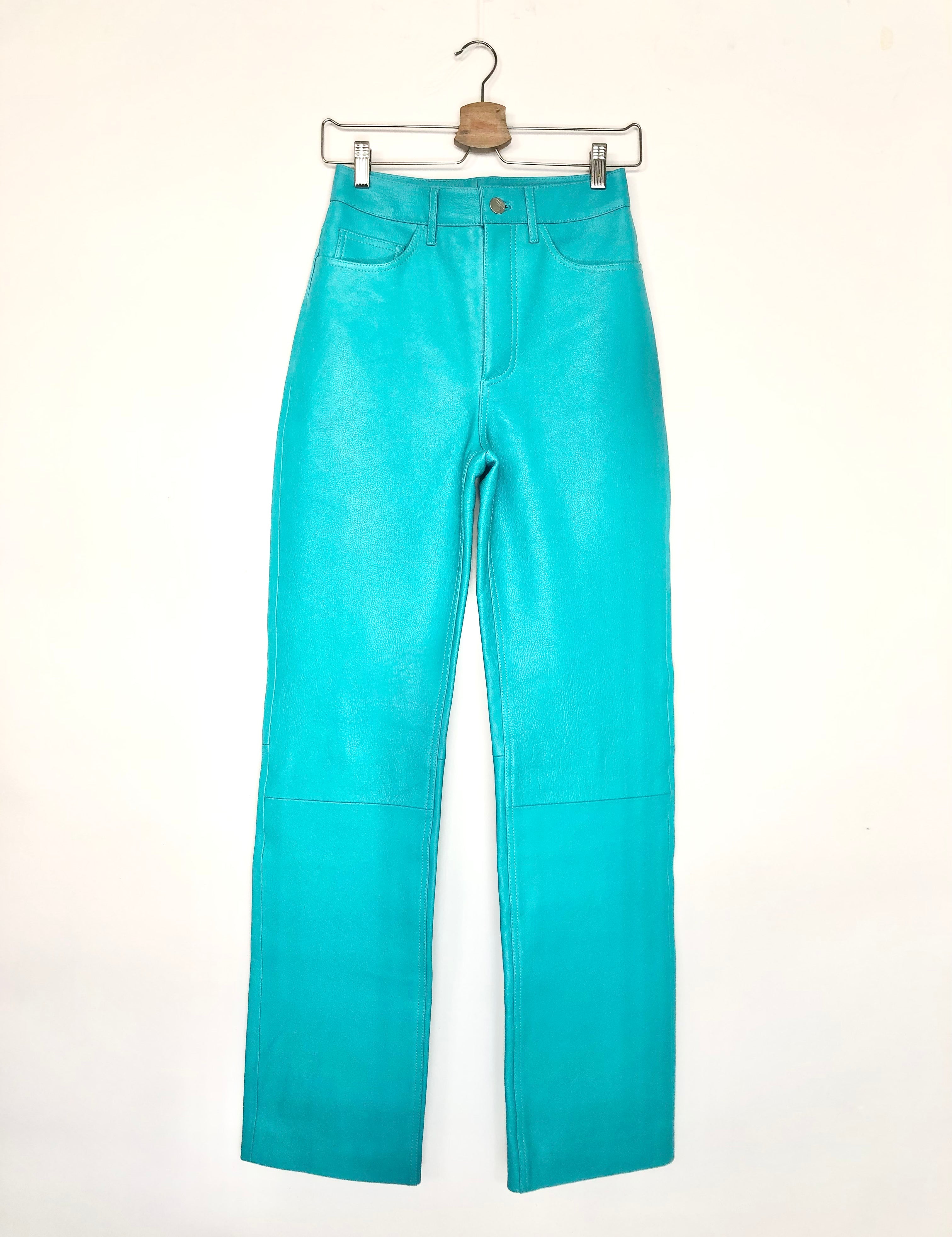 Turquoise Pebbled Leather Straight Leg Pants / REMAIN BIRGER CHRISTENSEN - Size 34