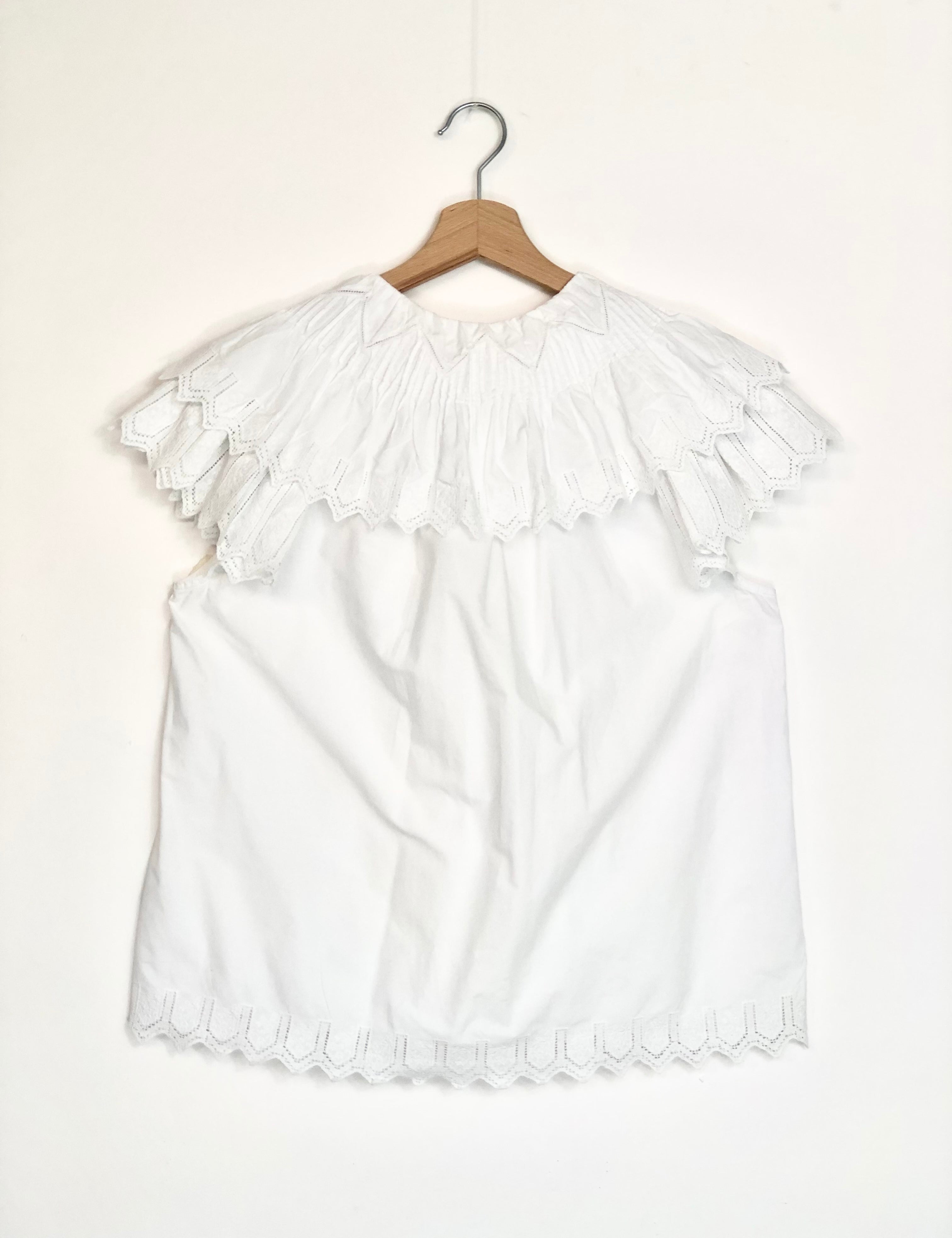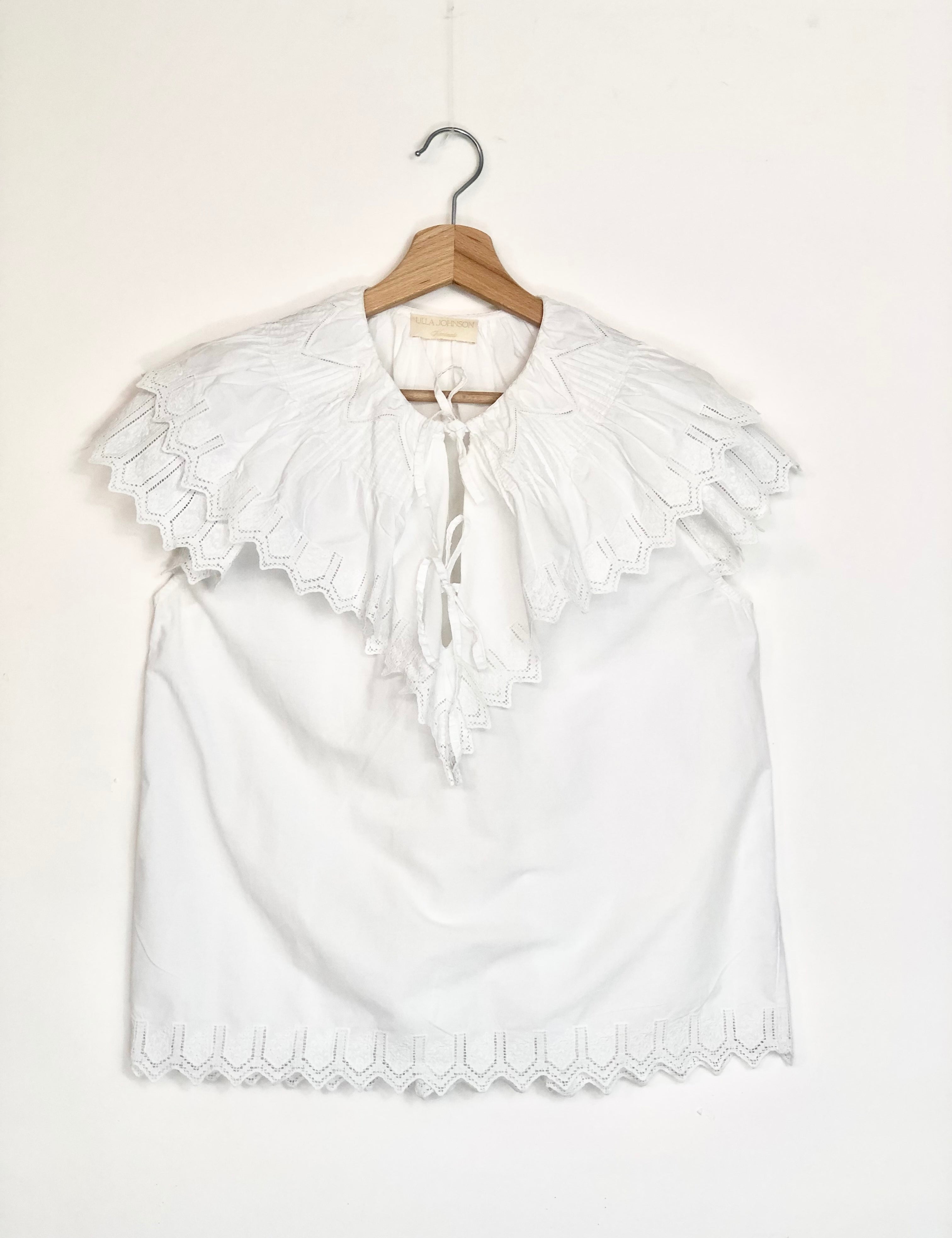 White Cotton Embroidered Ruffled Blouse / ULLA JOHNSON - Size US 8