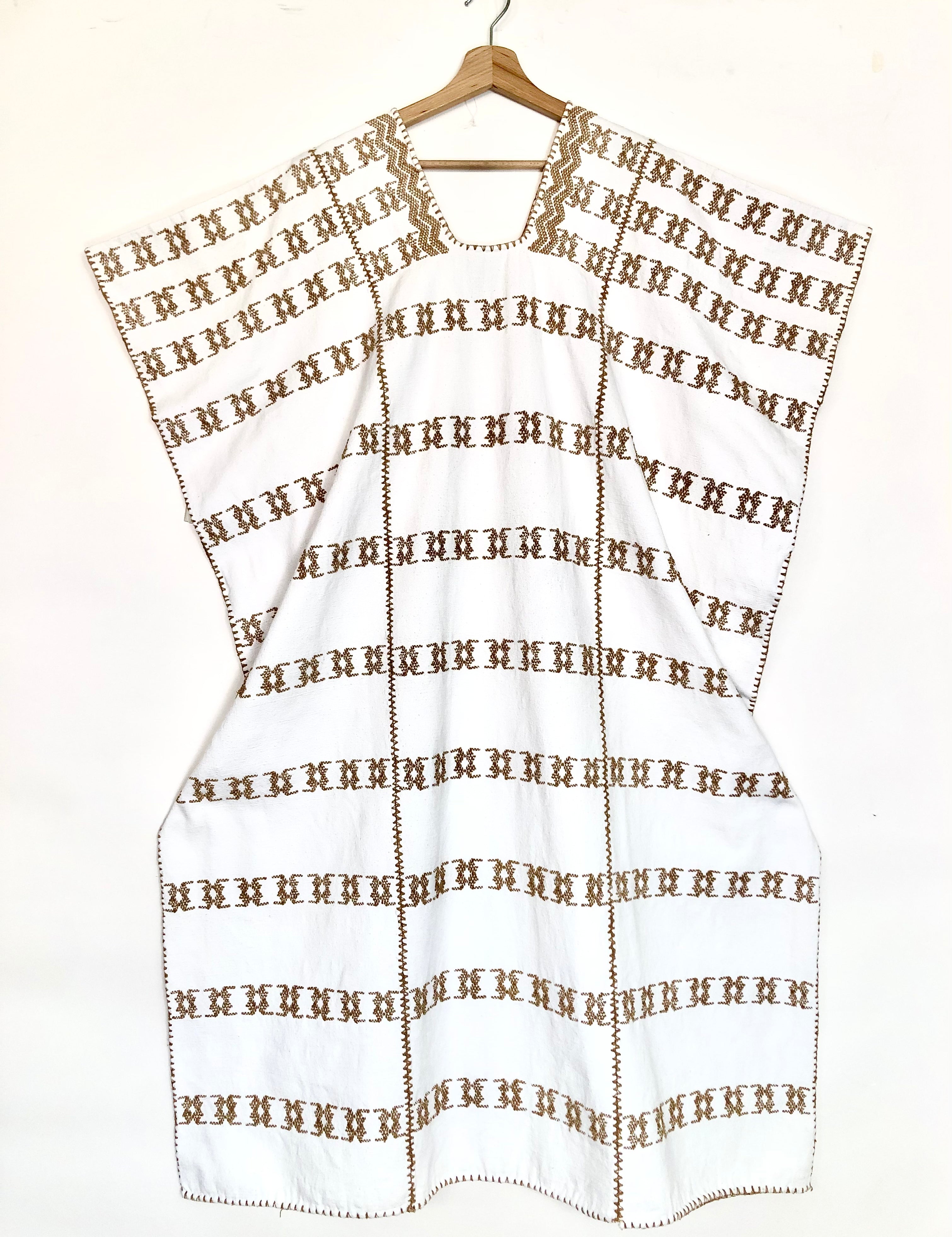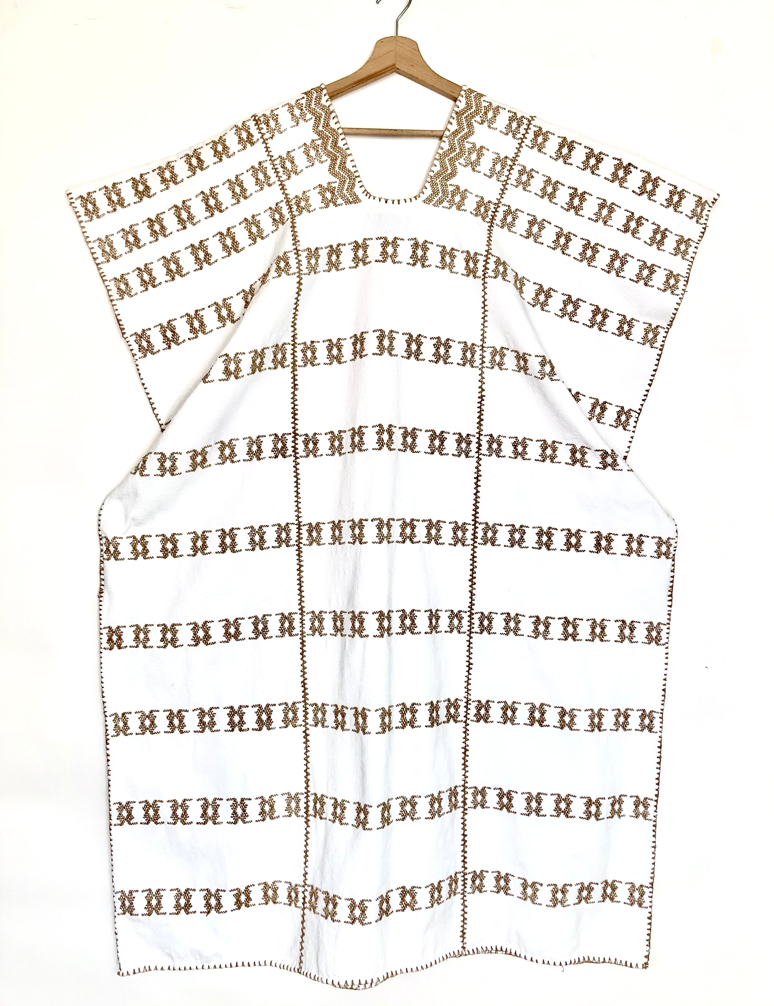 White/Beige Embroidered Three Panel Maxi Kaftan n°74 / PIPPA HOLT - One Size