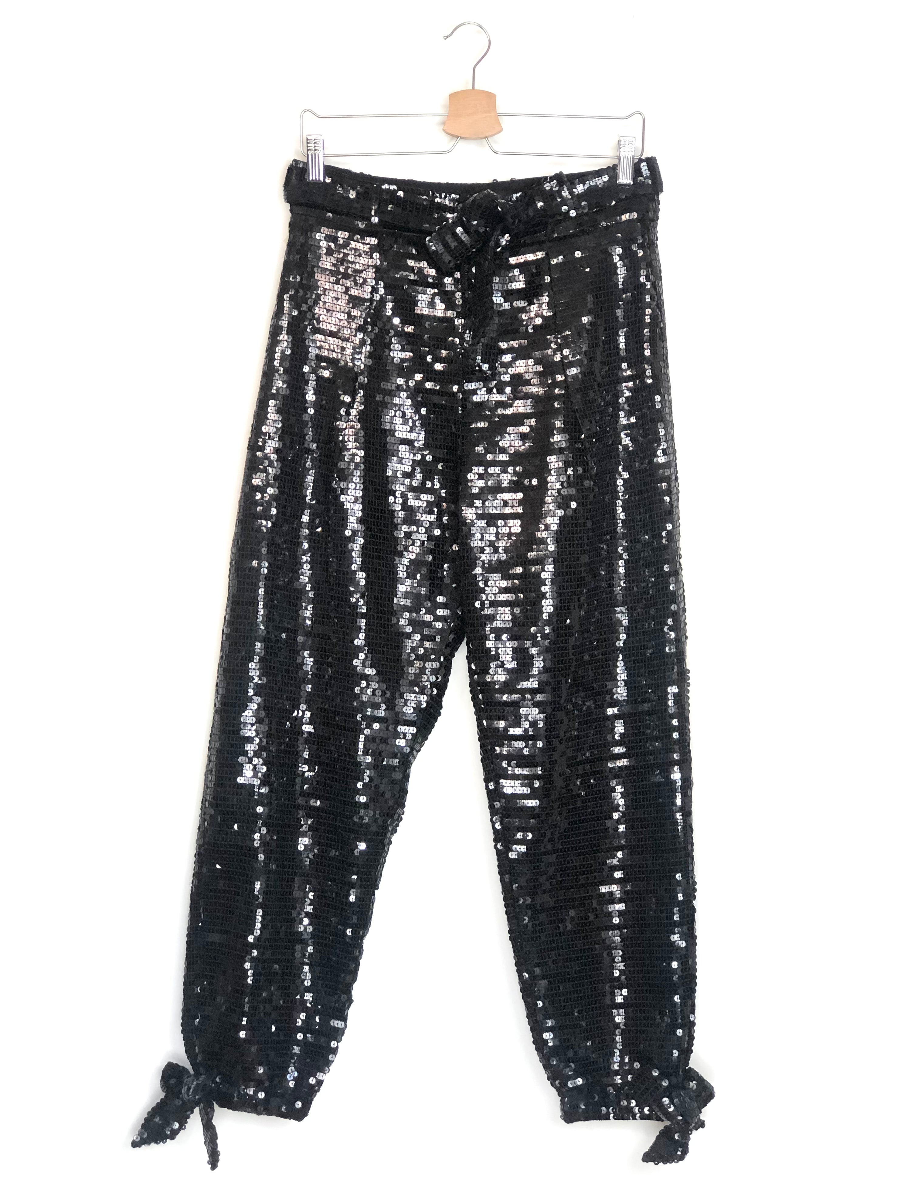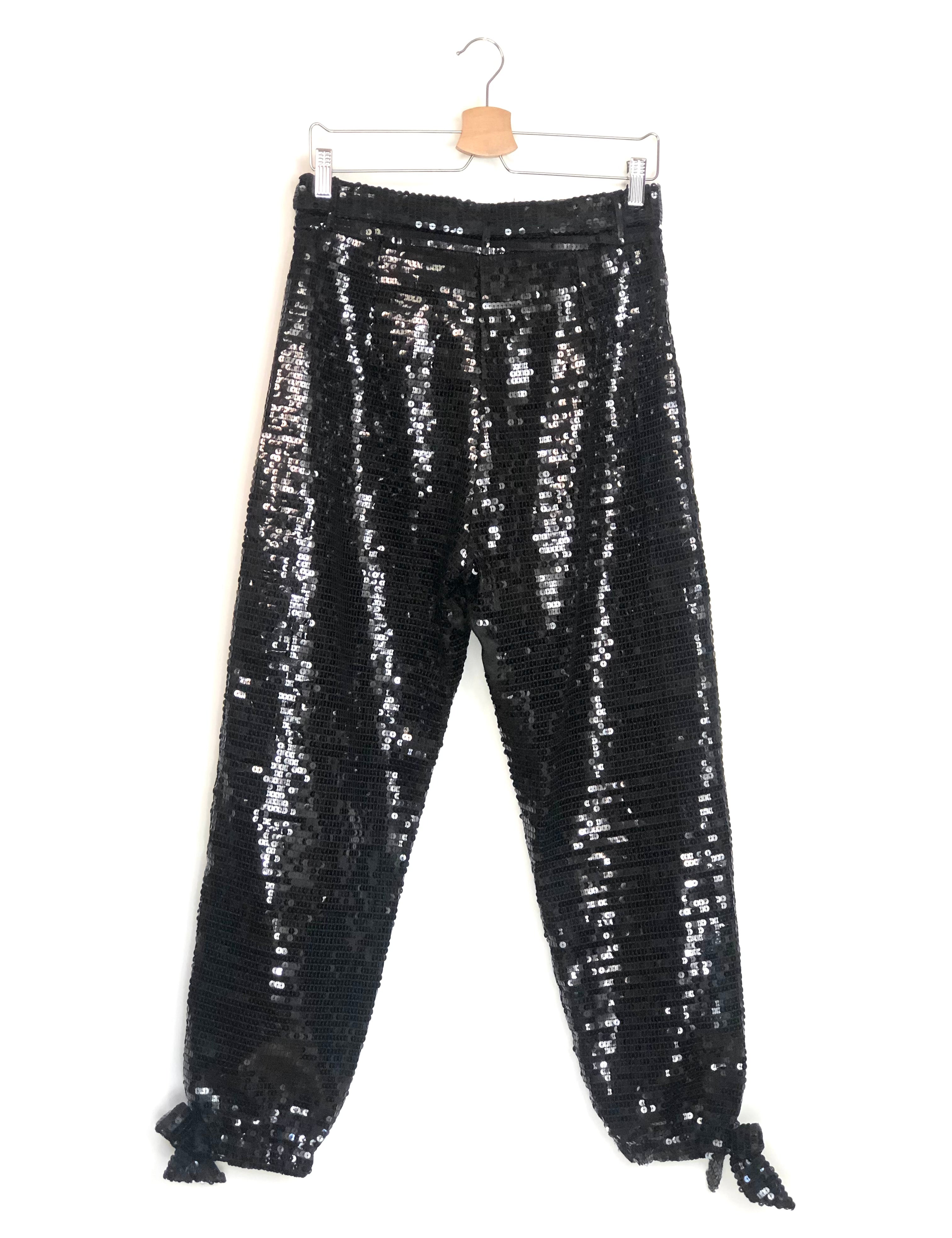 Black High Waist Tapered Leg Sequin Pants / IZAAK AZANEI - Size M