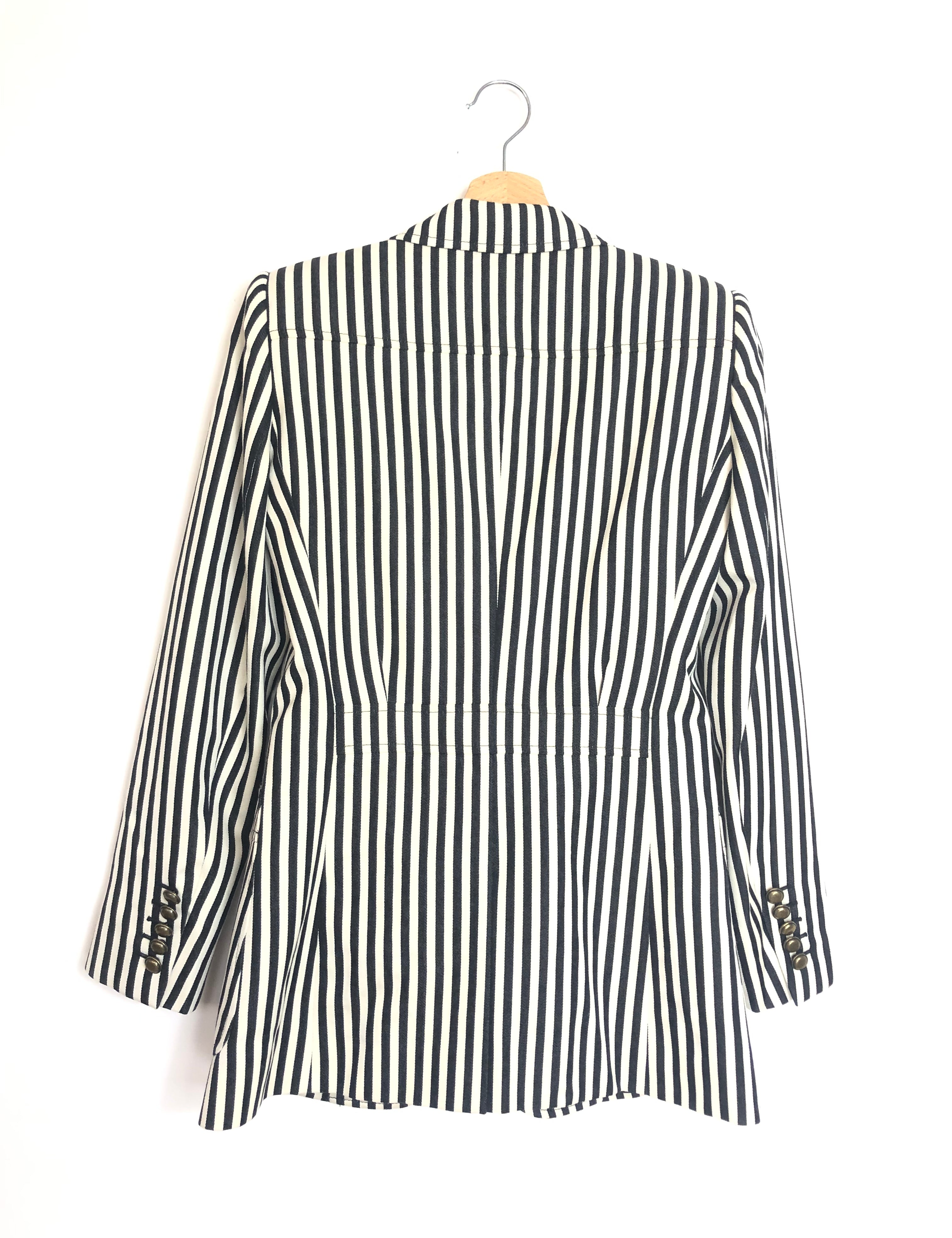 Black/White Striped Double Breasted Wool Blazer Jacket / SAINT LAURENT - Size 38