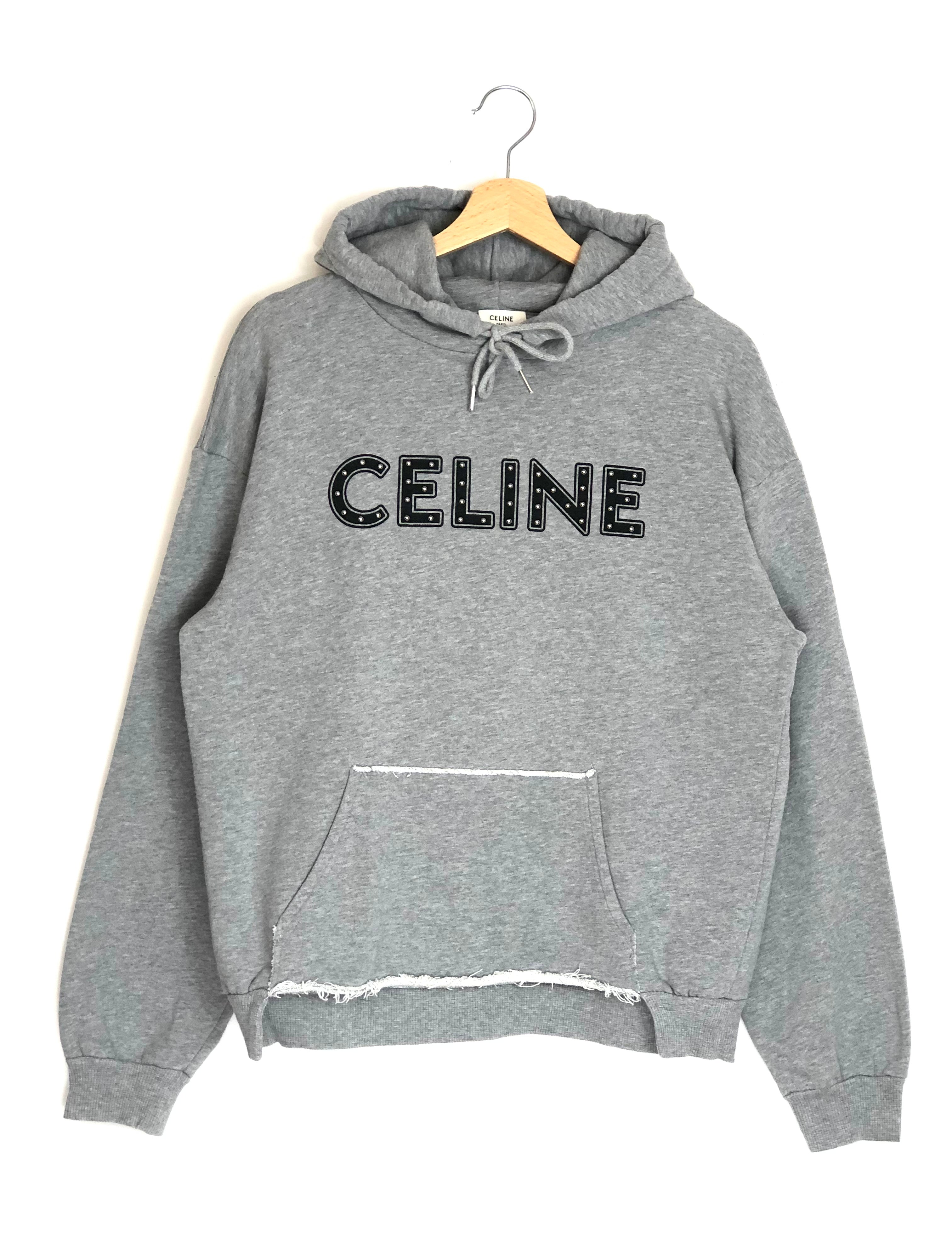 Grey Loose Cotton Studded Logo Sweatshirt / CELINE - Size S
