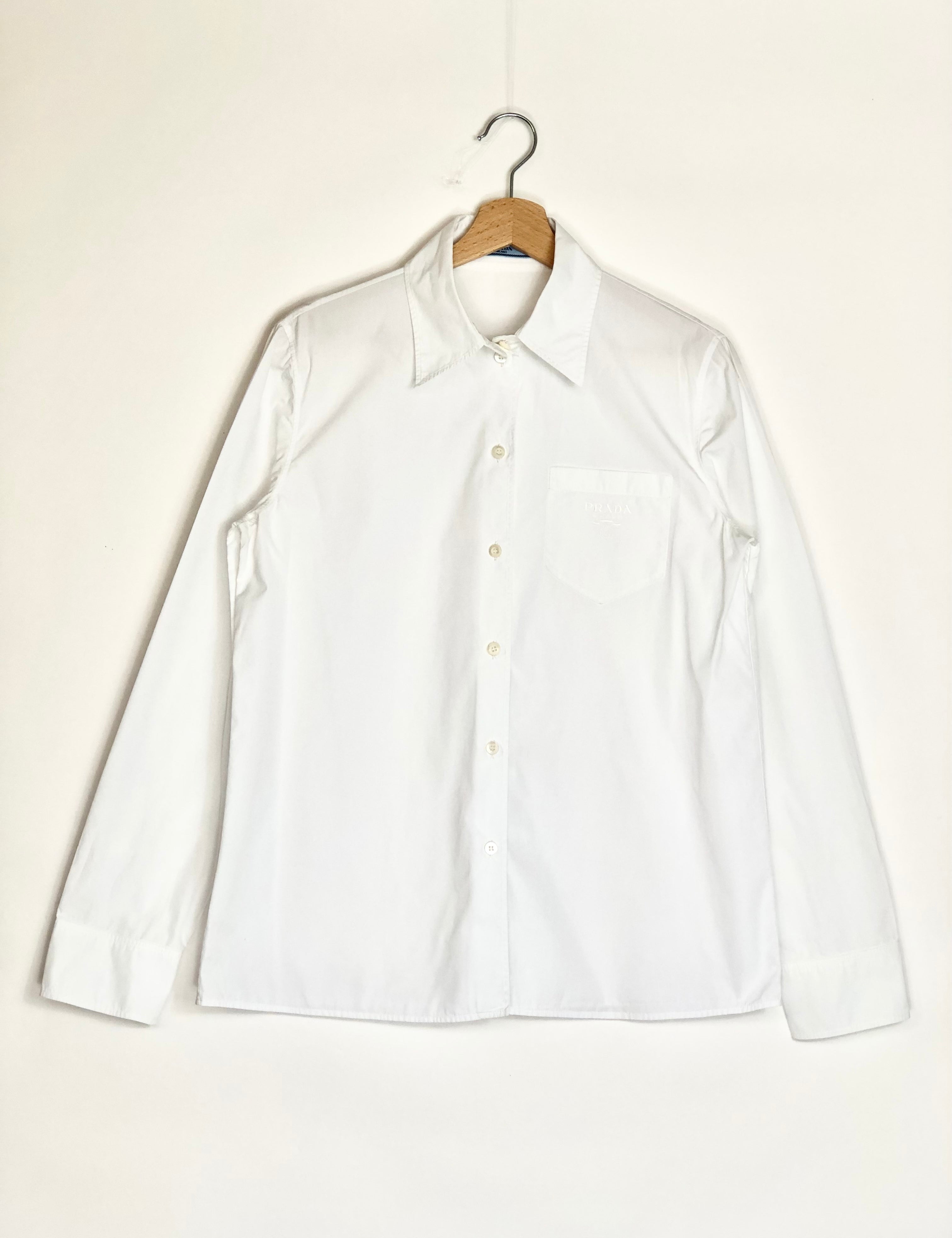White Logo Embroidered Pocket Poplin Cotton Shirt / PRADA - Size M