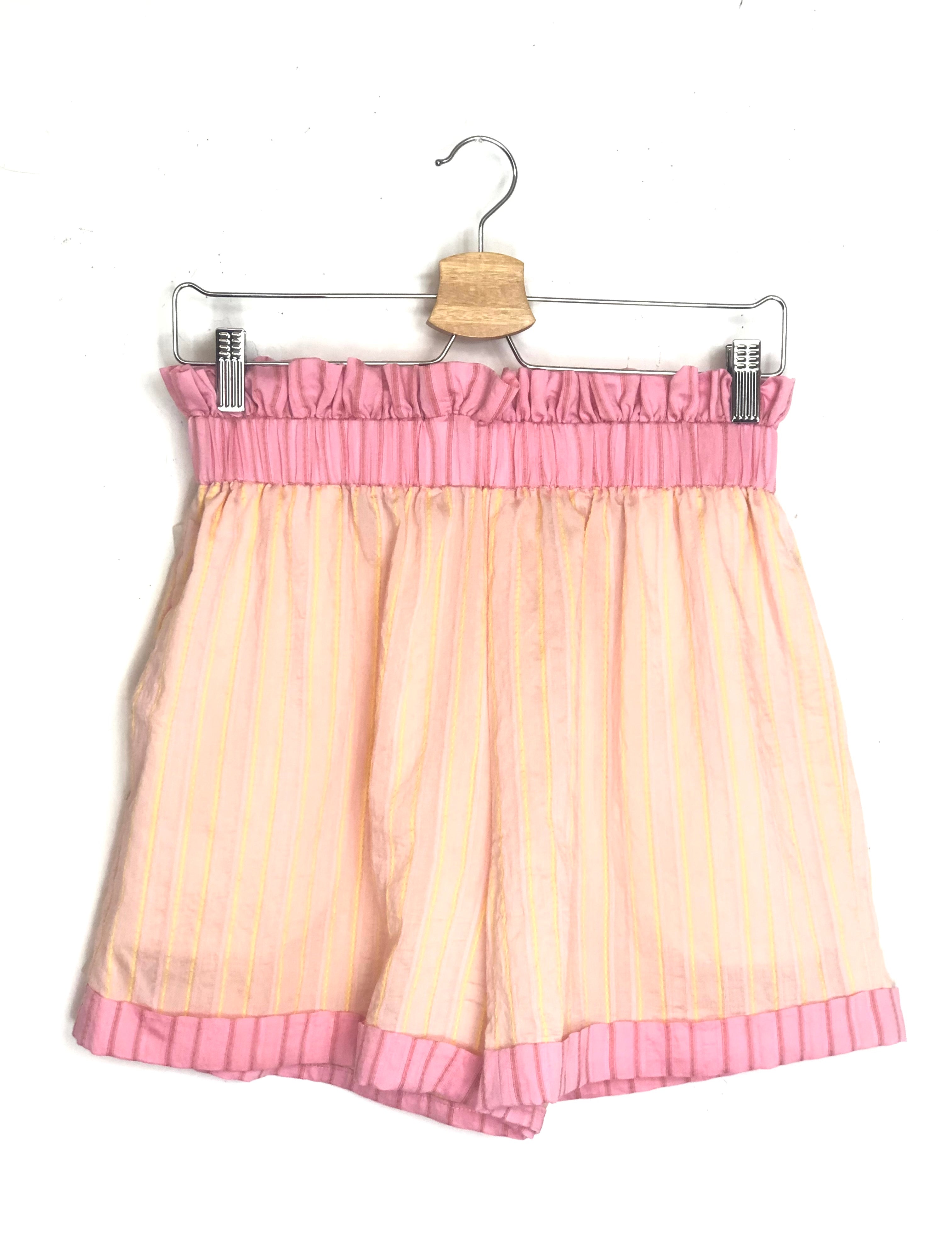 Pink and Yellow Striped Cotton Shorts / BY MARY - Size S