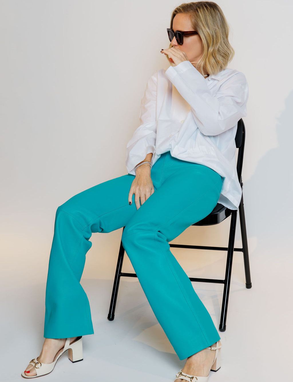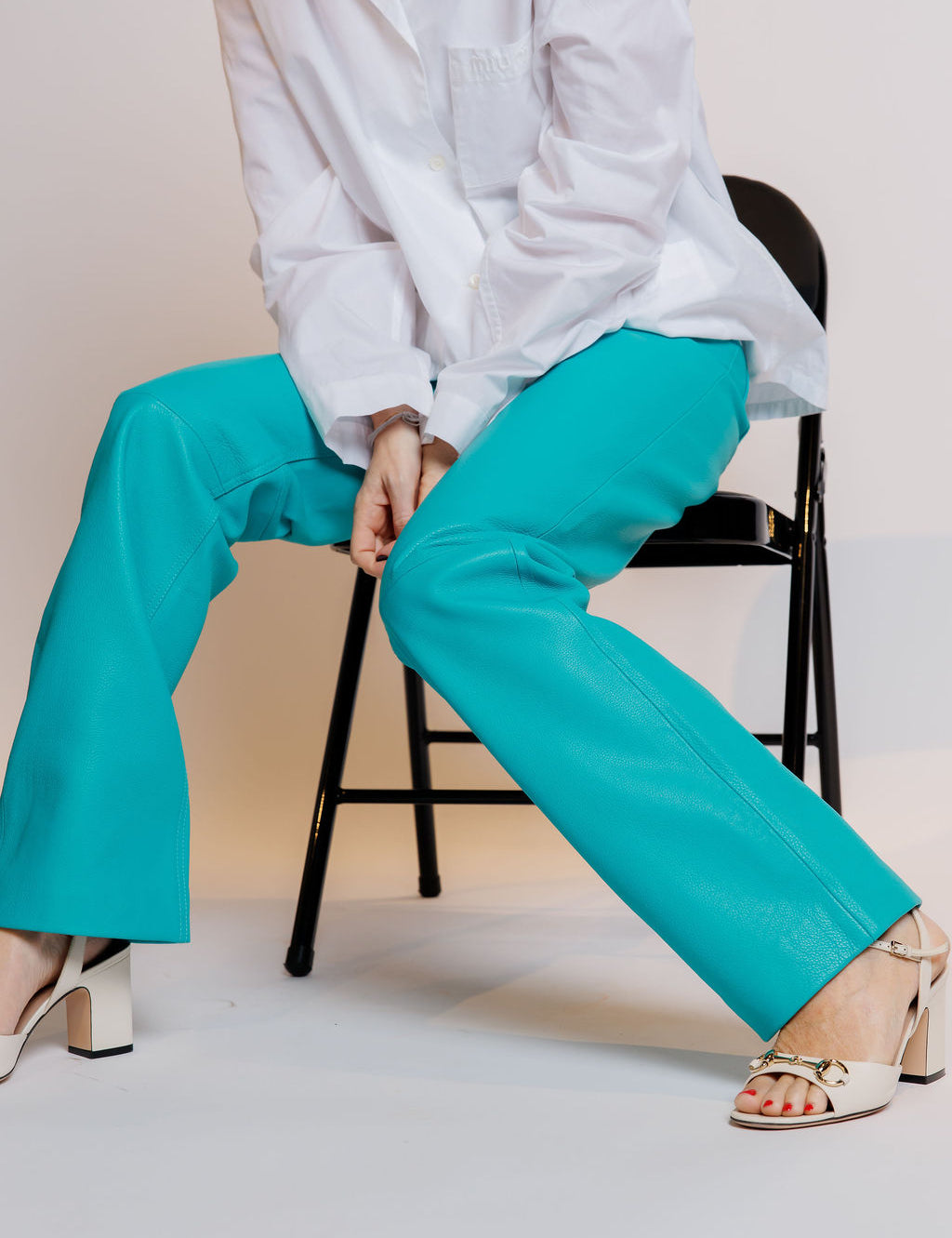 Turquoise Pebbled Leather Straight Leg Pants / REMAIN BIRGER CHRISTENSEN - Size 34