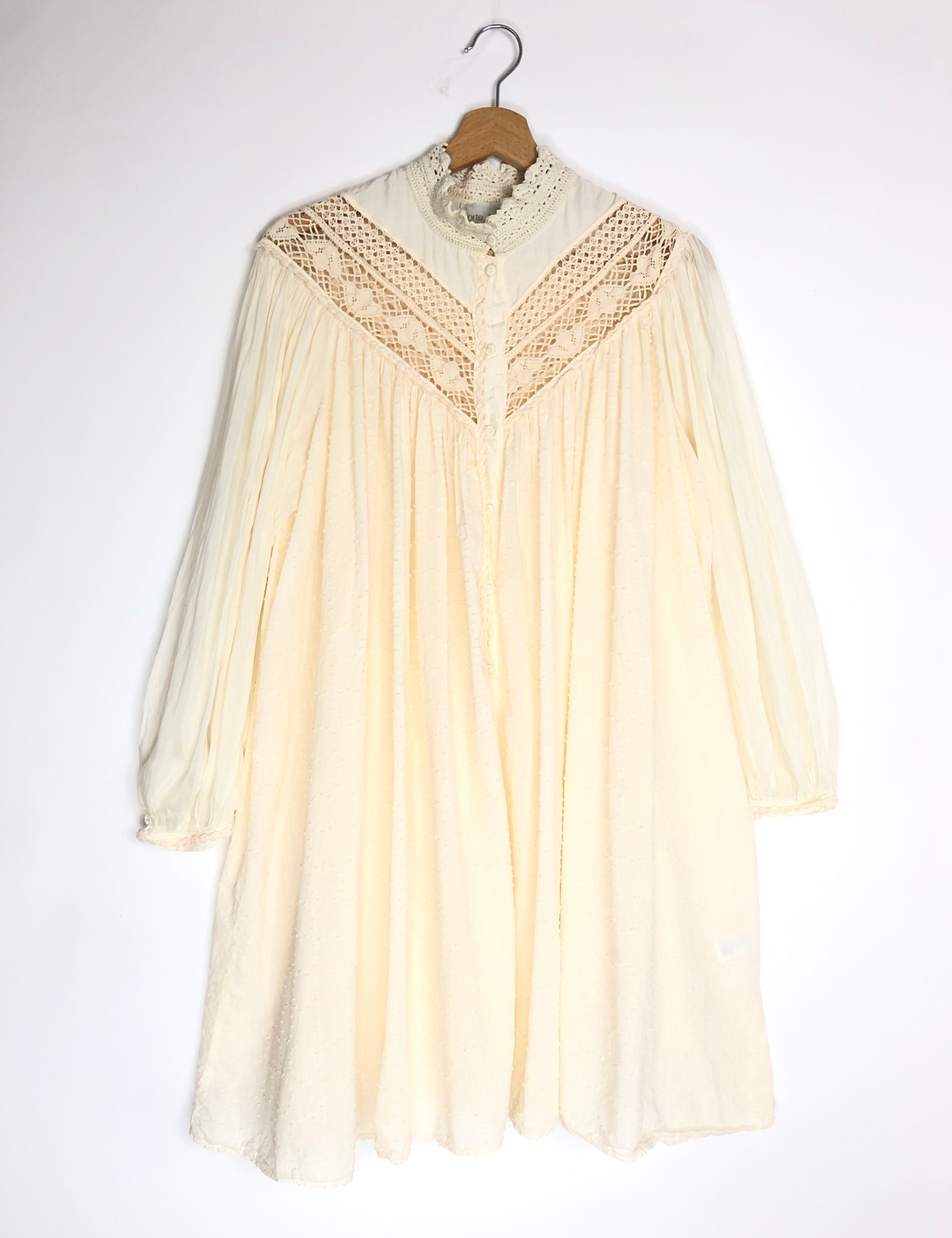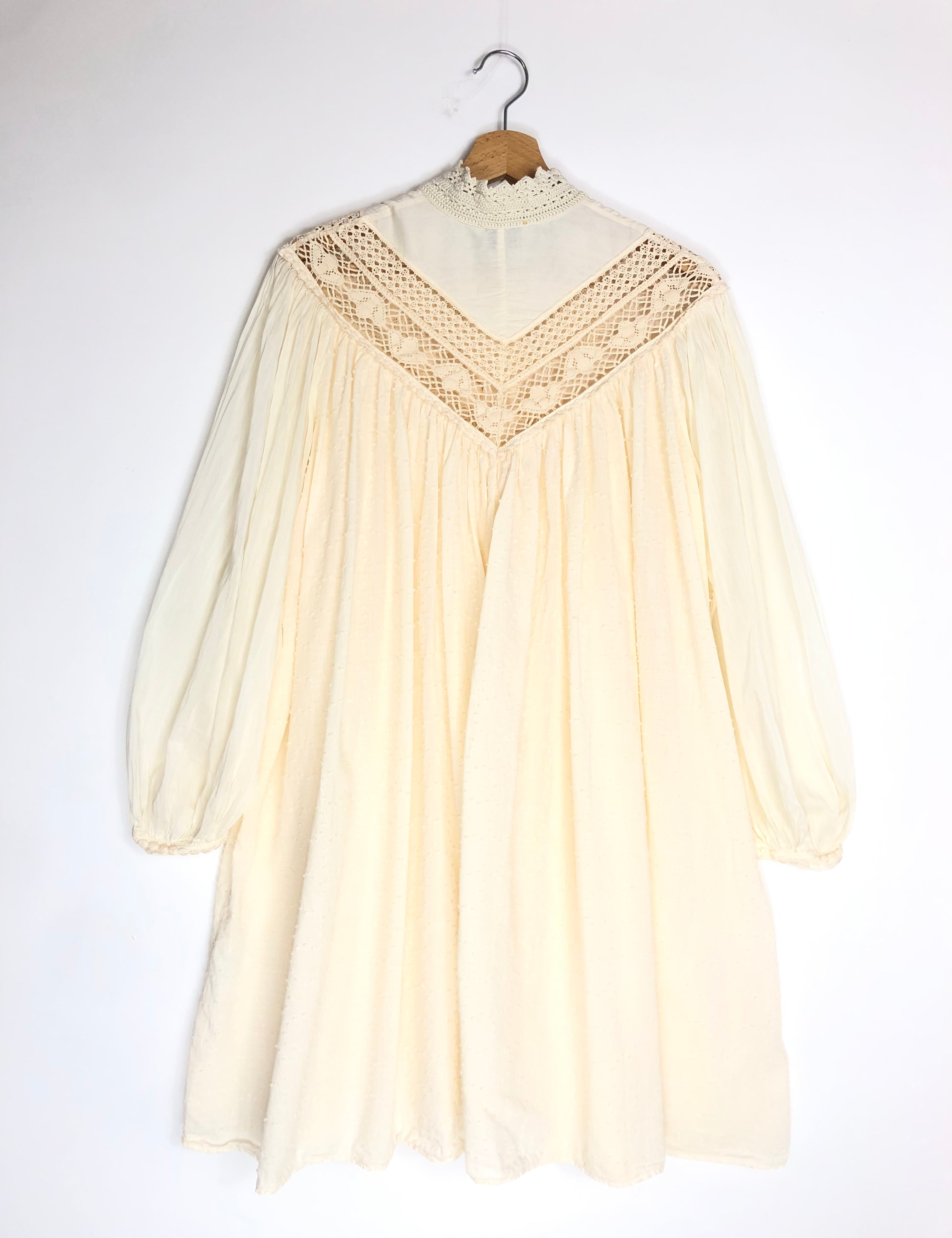 Ecru Crochet-detailed Mini Dotted Dress / FORTE_FORTE - Size 1