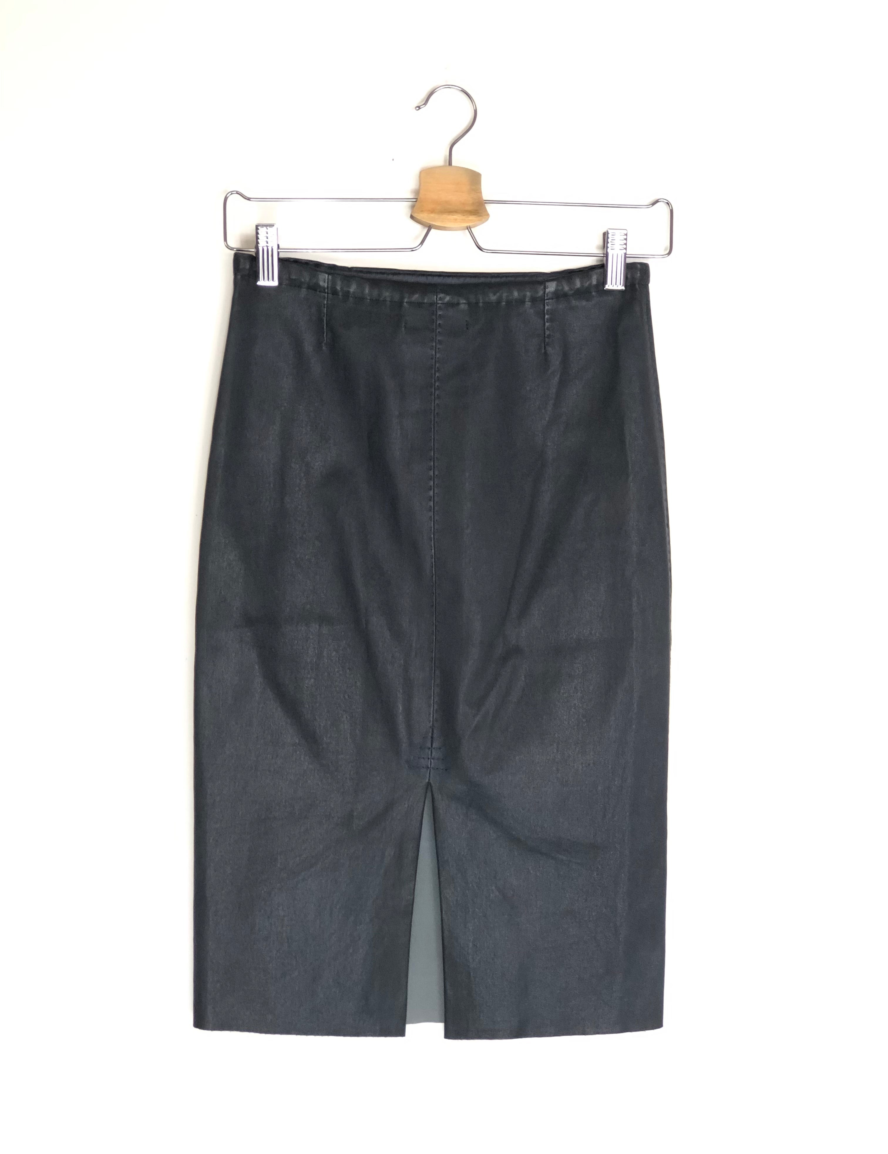 Midnight Blue Pencil Leather Skirt / STOULS - Size S