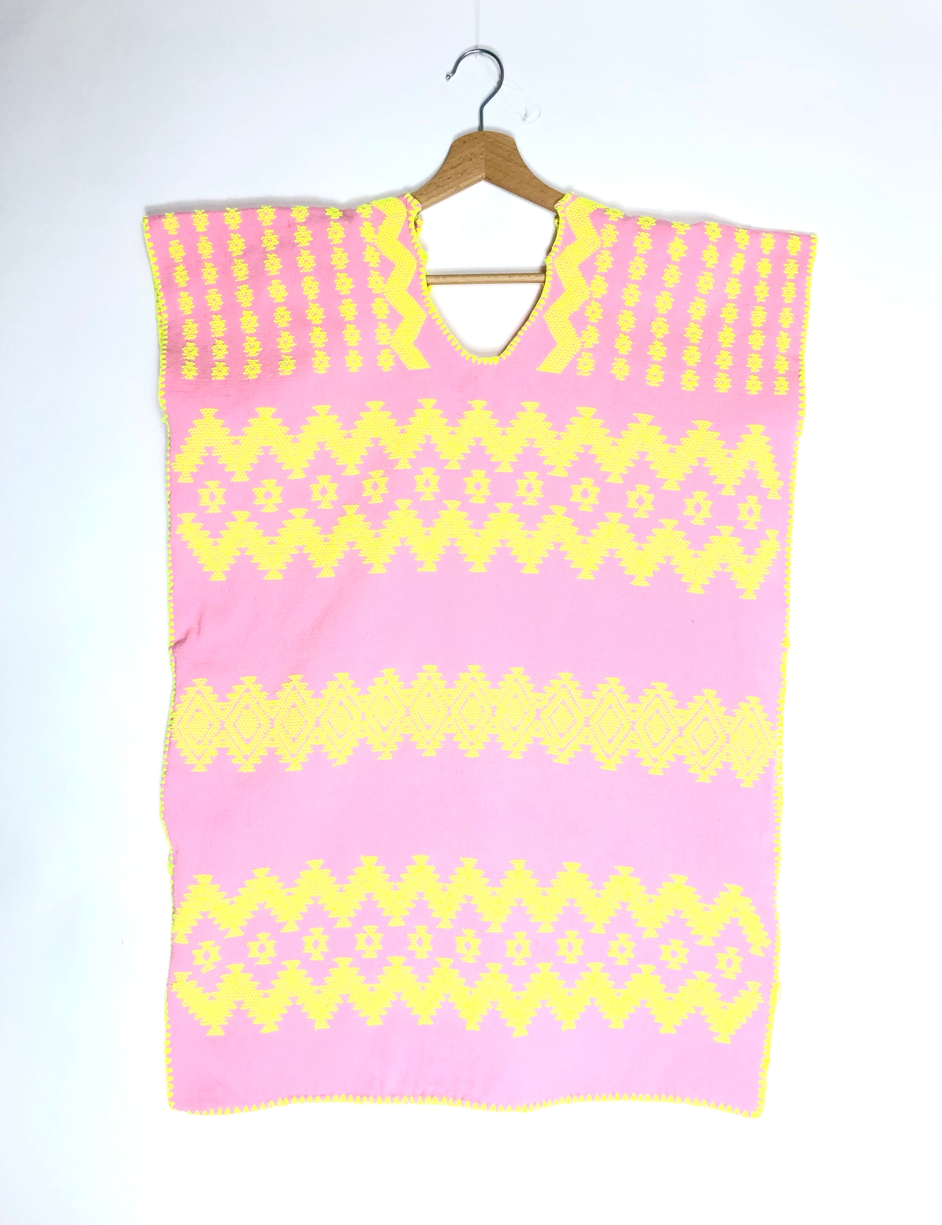 Pastel Pink and Neon Yellow Single Panel No. 373 Mini Kaftan / PIPPA HOLT - One Size