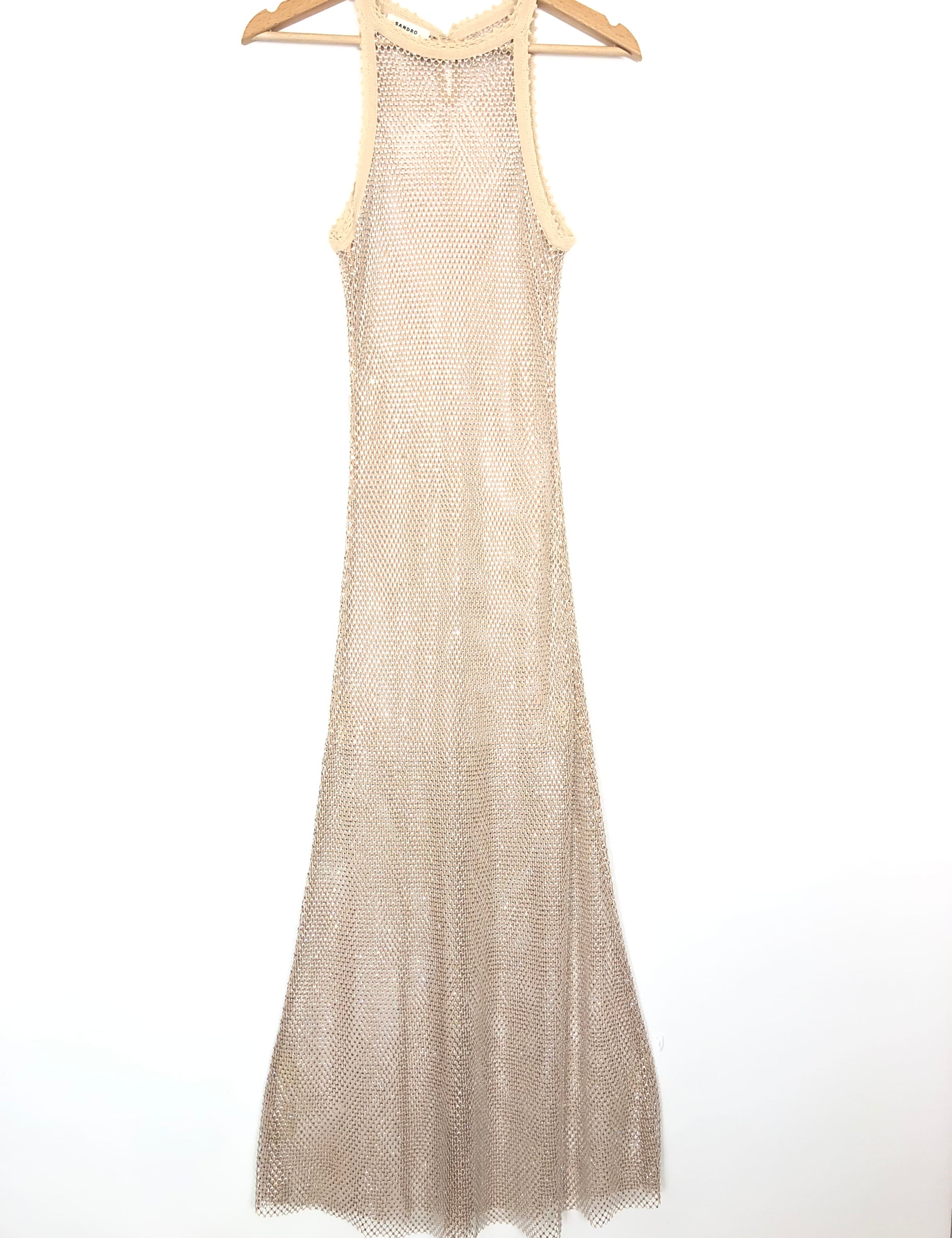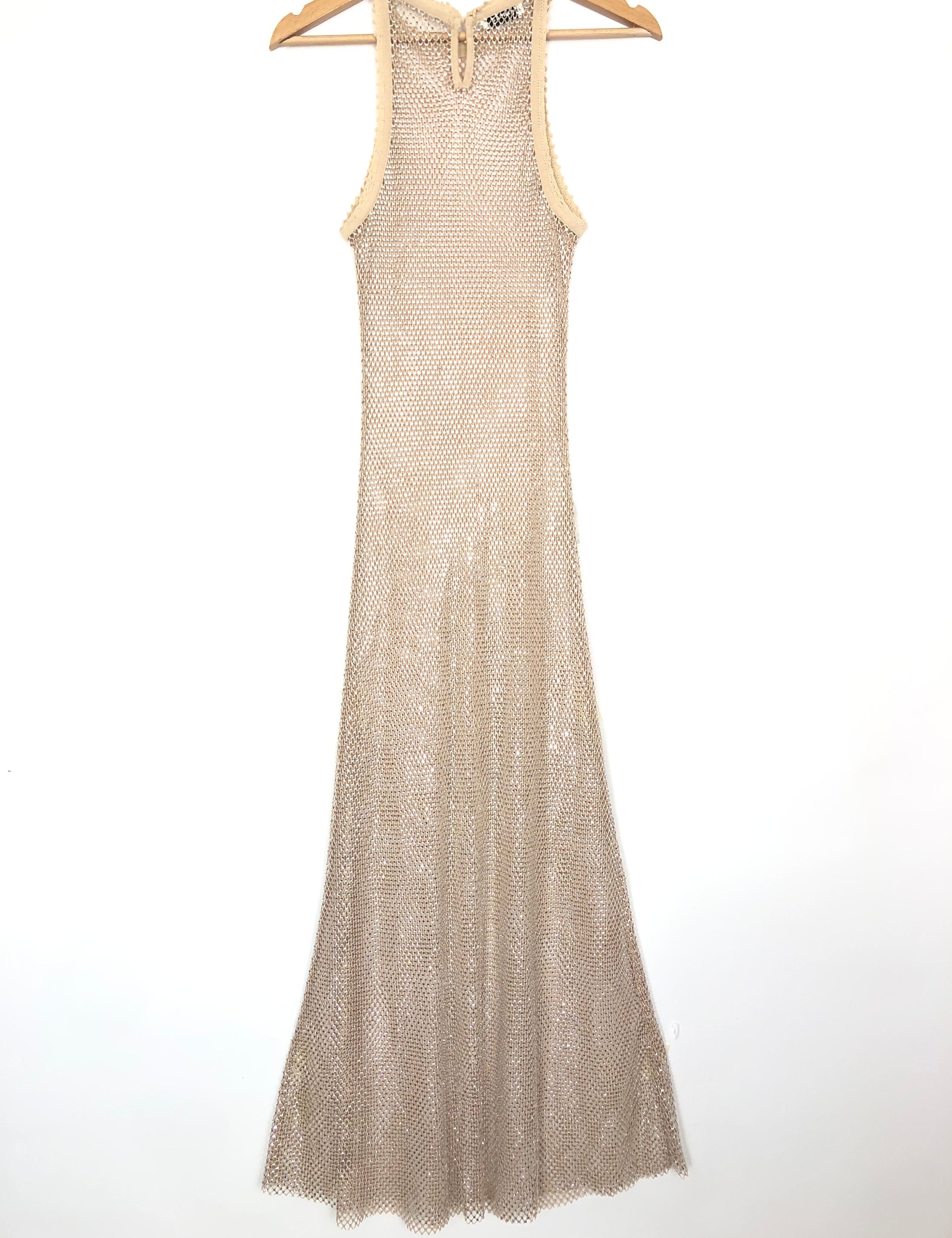 Beige Crystal Embellished HOLLYWOOD Mesh Midi Dress / SANDRO