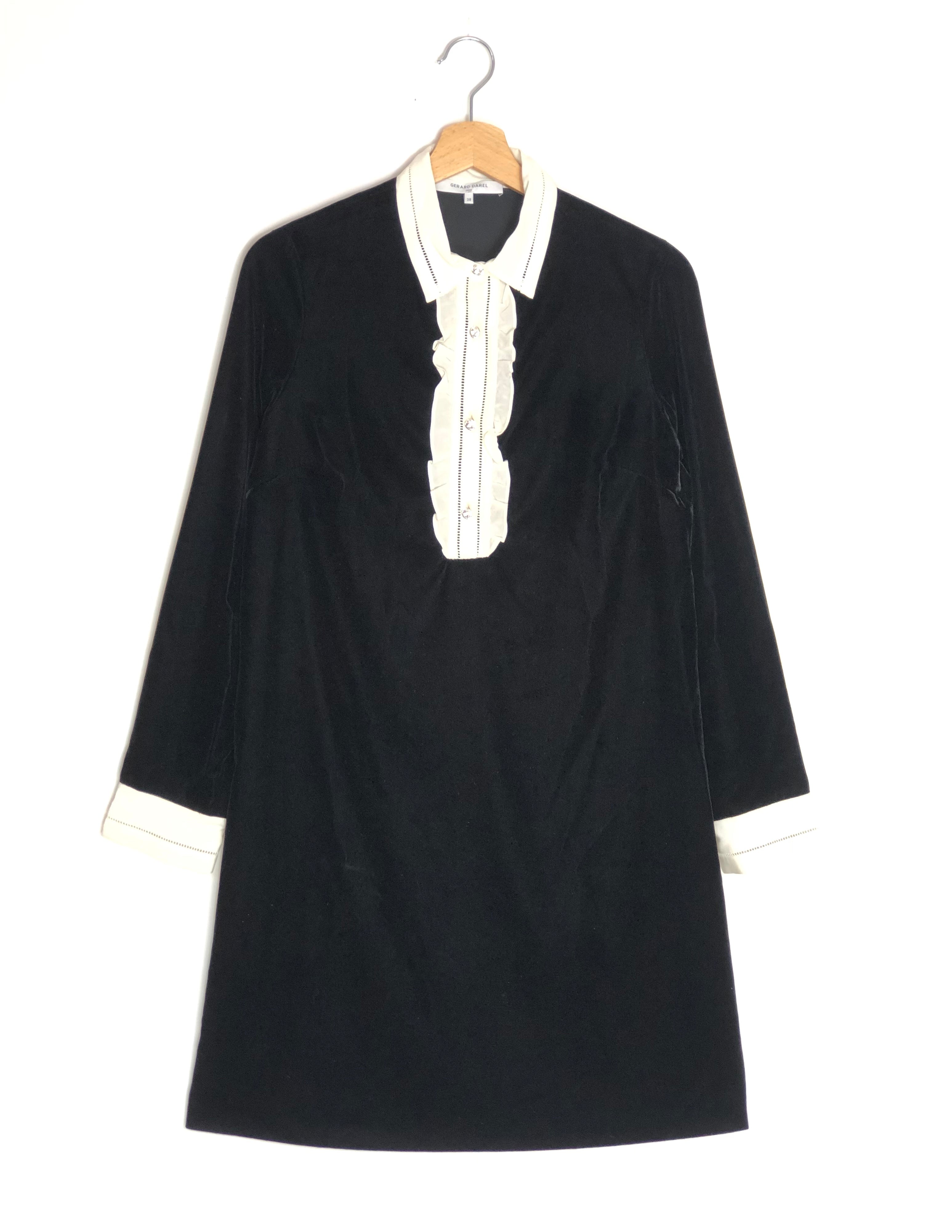 Black Collared Velvet Mini Dress / GERARD DAREL - Size 38
