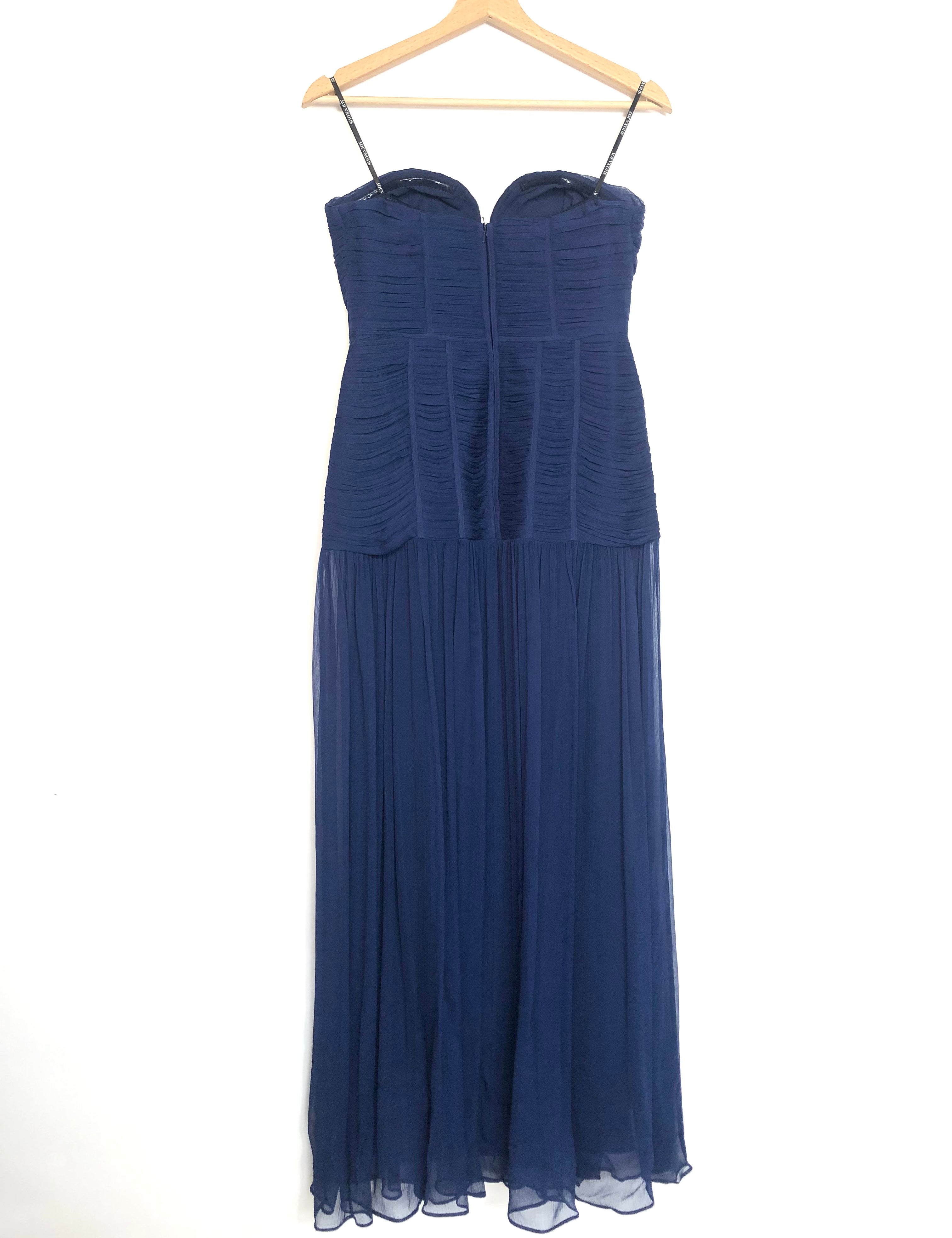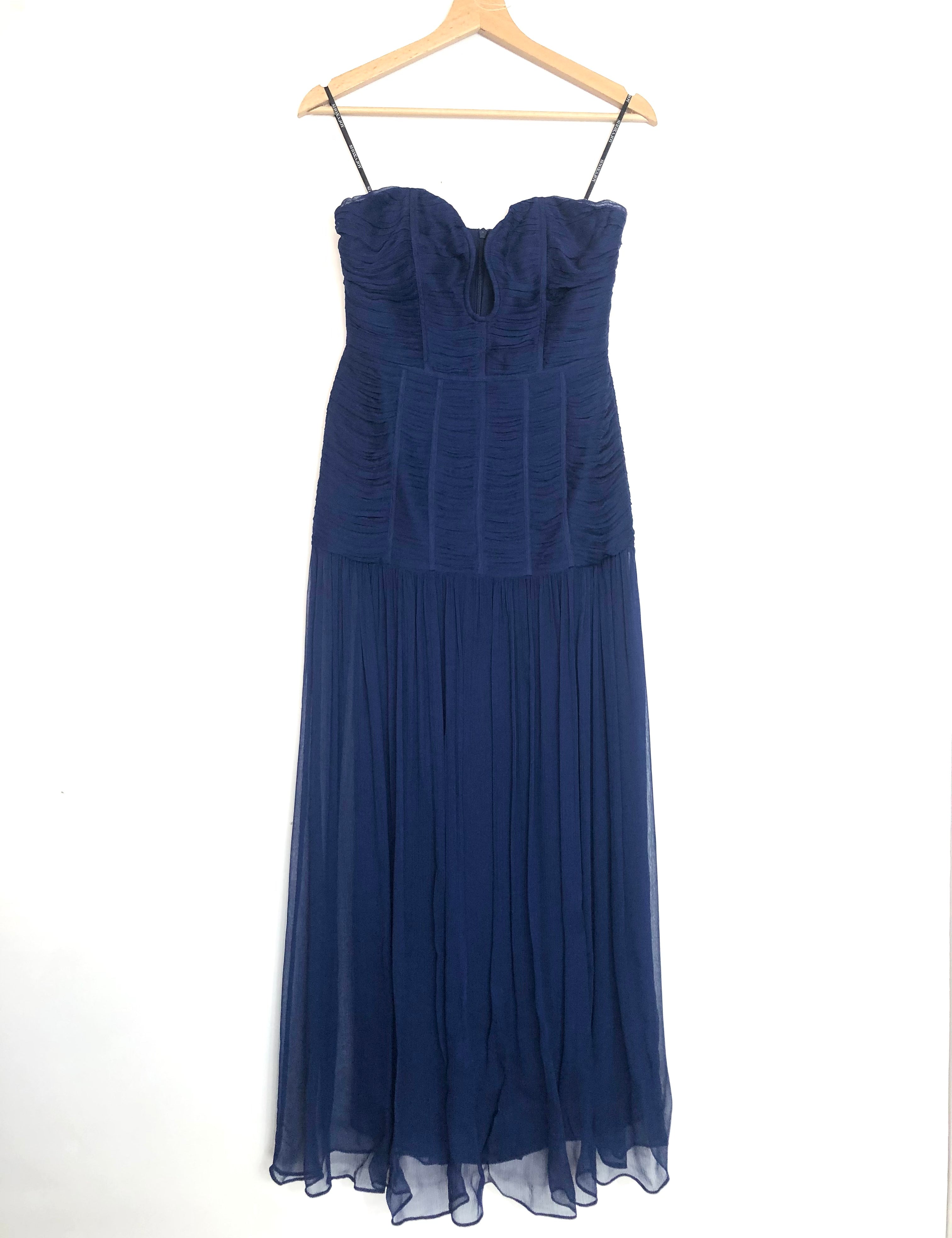 Blue ISOLA Strapless Chiffon Ruched Midi Dress / SHONA JOY - Size 36