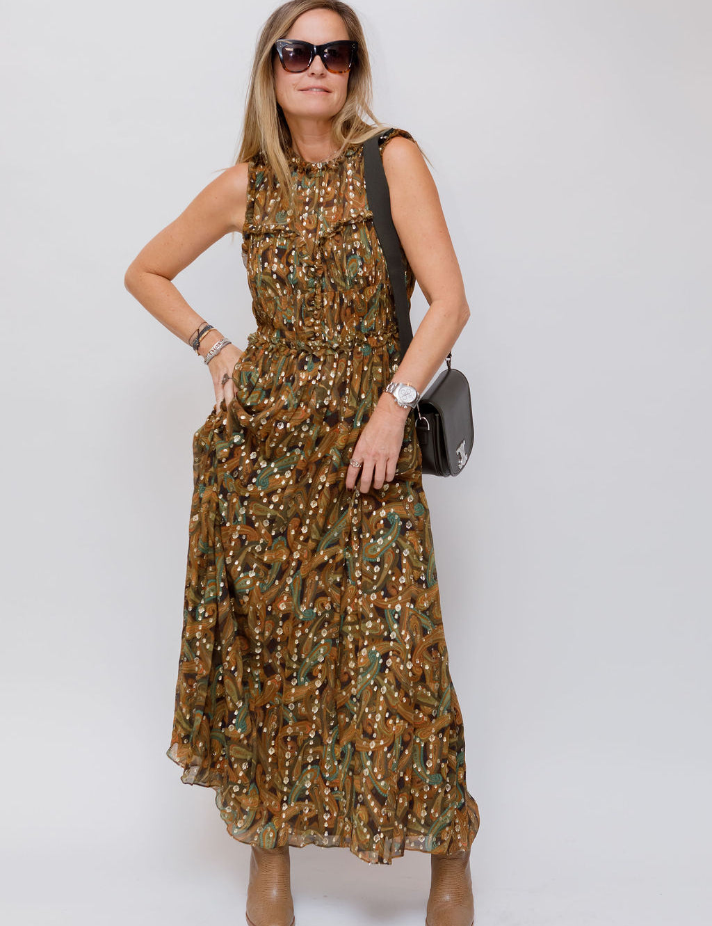 Brown/Khaki KASIA Paisley Silk-blend Sleeveless Midi Dress / ULLA JOHNSON - Size US 4