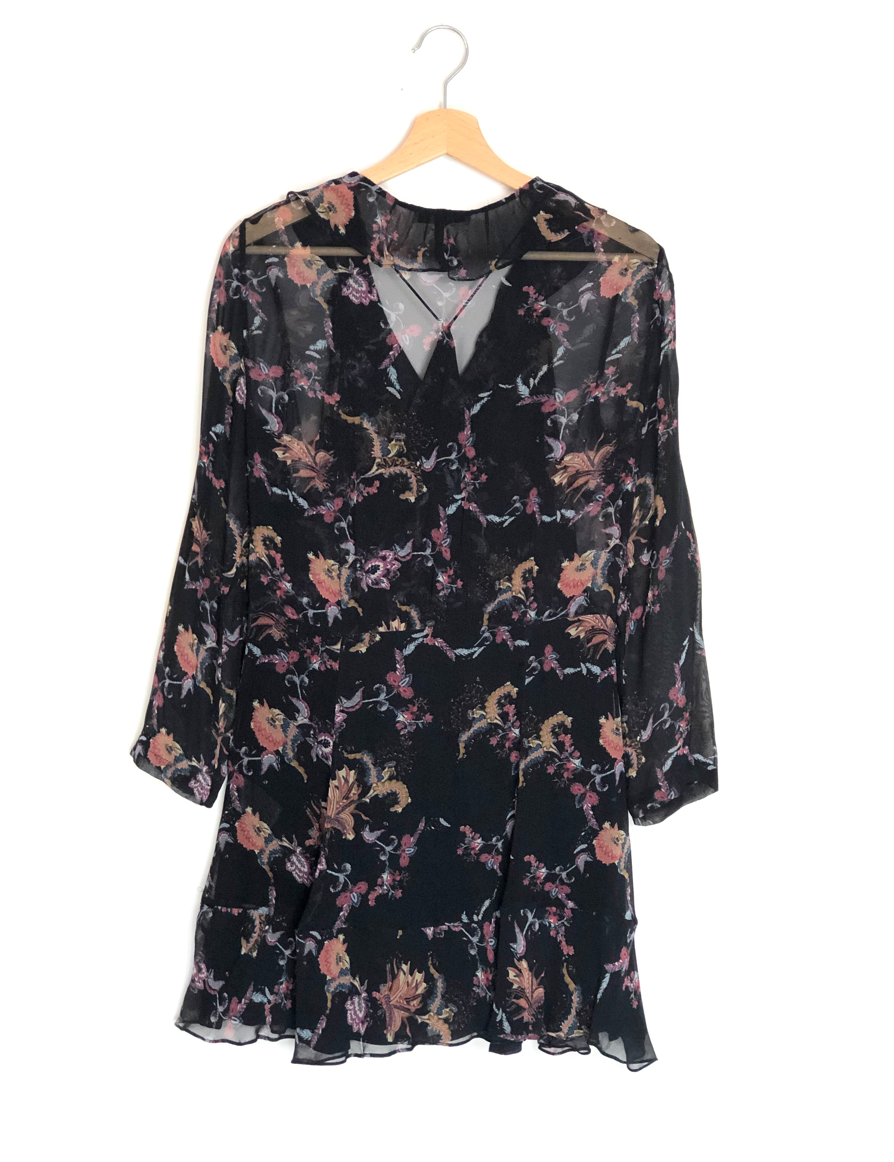 Dark Blue and Pink LUCINE Floral-print Sheer Mini Dress / IRO - Size 36