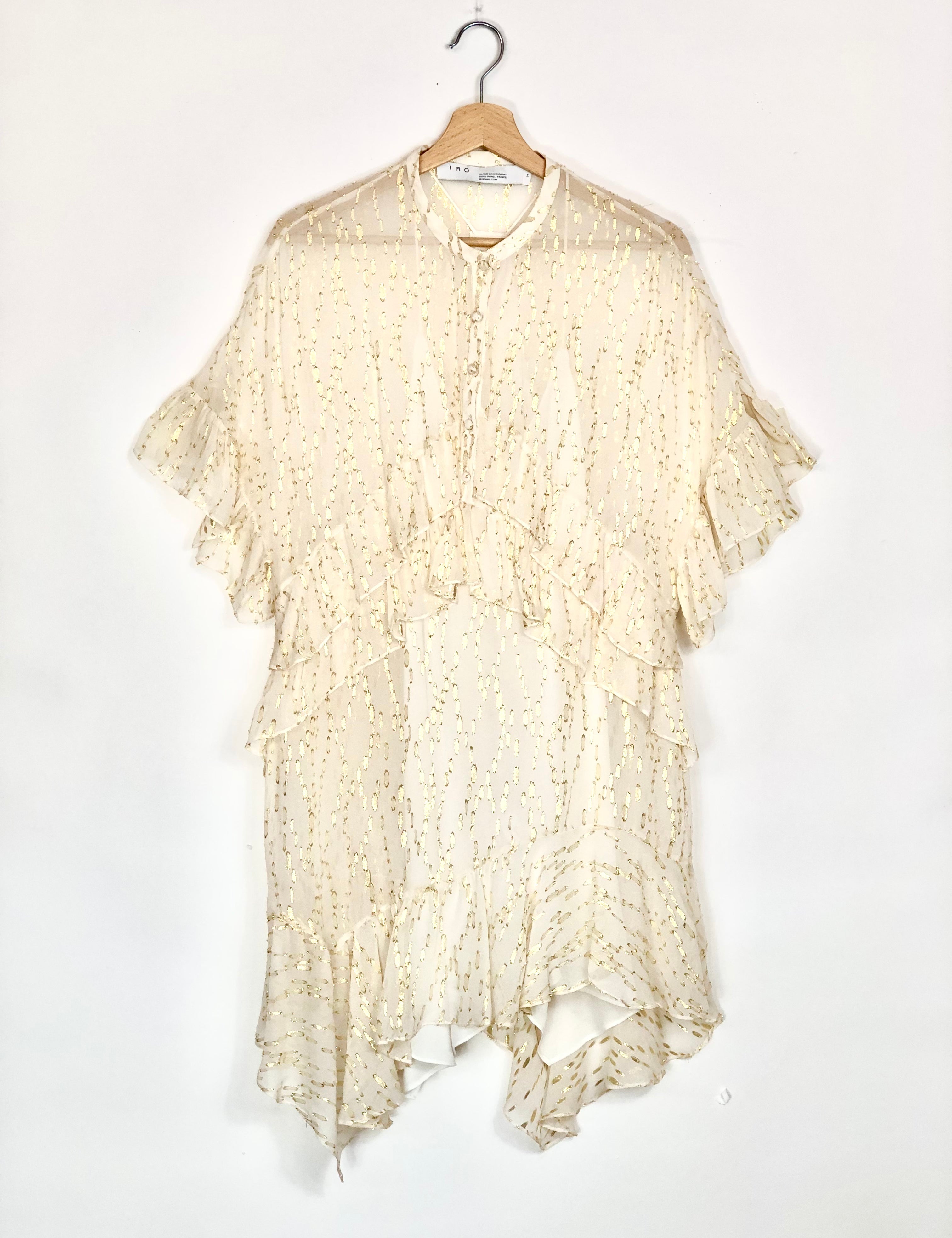 Ecru Metallic Fil Coupe Silk Blend REVOLVE Dress / IRO - Size 34